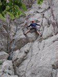 I very very nearly treated the free day on offer as an actual free day. The thought of lounging around for the day, catching up on the little chores in life one seems to accumulate while sipping on cold beer was an extremely attractive prospect. But, I couldn’t do it. As far as my ageing memory can remember I have never turned down optional activities if they were on offer in order to spend the day relaxing, no matter how much a relaxing day is desired. This day offered the chance to go rock climbing in Paklencia National Park, on our doorstep which, is famous for climbing. It therefore seemed a tad mental for me not to go, and so I did! I attempted a lot of climbing and abseiling during my time at Scouts but back then I was afraid of pretty much everything and so it was never something I felt comfortable with. However, I appear to have gone through a bit of a renaissance over the past few years, where I found myself falling in love with ice climbing followed by a fantastic spot of rock climbing in Morocco not so long ago. I and five other not so professional climbers jumped in a landcover and headed into the park just after lunch with rain clouds threatening overhead. Luckily the rain stayed at bay and we geared up ready for our first climb. Even though our first climb was only twenty meters or so it was still rather intimidating as we were climbing around the visitors centre where there were plenty of people about although, they were probably more interested in watching the guys scaling the higher climbs to our left, our right, and behind us. Indeed, there were climbers everywhere! What I have learnt about climbing is that you must trust the rope, yourself and, your shoes. The shoes particularly stand out. If you feel like one of the ugly sisters trying on Cinderella’s lost glass slipper then you are most likely wearing the correct shoe for climbing. Basically your toes are squished into the end of the shoe up to the point of all blood supply being cut off from them. I’m not sure if this is exactly the correct fit but I feel it is more or less so. The upside of this is that by wearing the shoes and trusting them, you feel like you can scale any sized vertical rock thrown in your way. It’s is quite incredible what your toes and fingers can cling onto when the only other option is to fall to your death. Throughout the afternoon our climbs got higher and more difficult yet, as has always been the case with this group, everyone kept giving it a go and everyone continued to reach the top. For me, I got more nervous with every climb. I was loving every moment and the adrenaline was flying around my system as I got higher but as my confidence grew so did the thought that at one point I would get too confident and then fall. As with most things in life, I can do them to some degree but usually my technique is bloody awful and I assumed it was no different with my climbing. As it turned out my instructor said I had a talent for rock climbing and I should definitely continue it! I nearly laughed in his face partly because I have never been told I have a talent for anything and partly because he said I was very good at thinking and planing a route up the cliff face. In my head, quite simply, I thought it was stubbornness and pig ignorance that was getting me up the mountain! Either way it must have been a damn good afternoon for all concerned because it was gone 7pm when we returned to the apartment, thanks to our guides spending a good hour longer with us then originally planned.