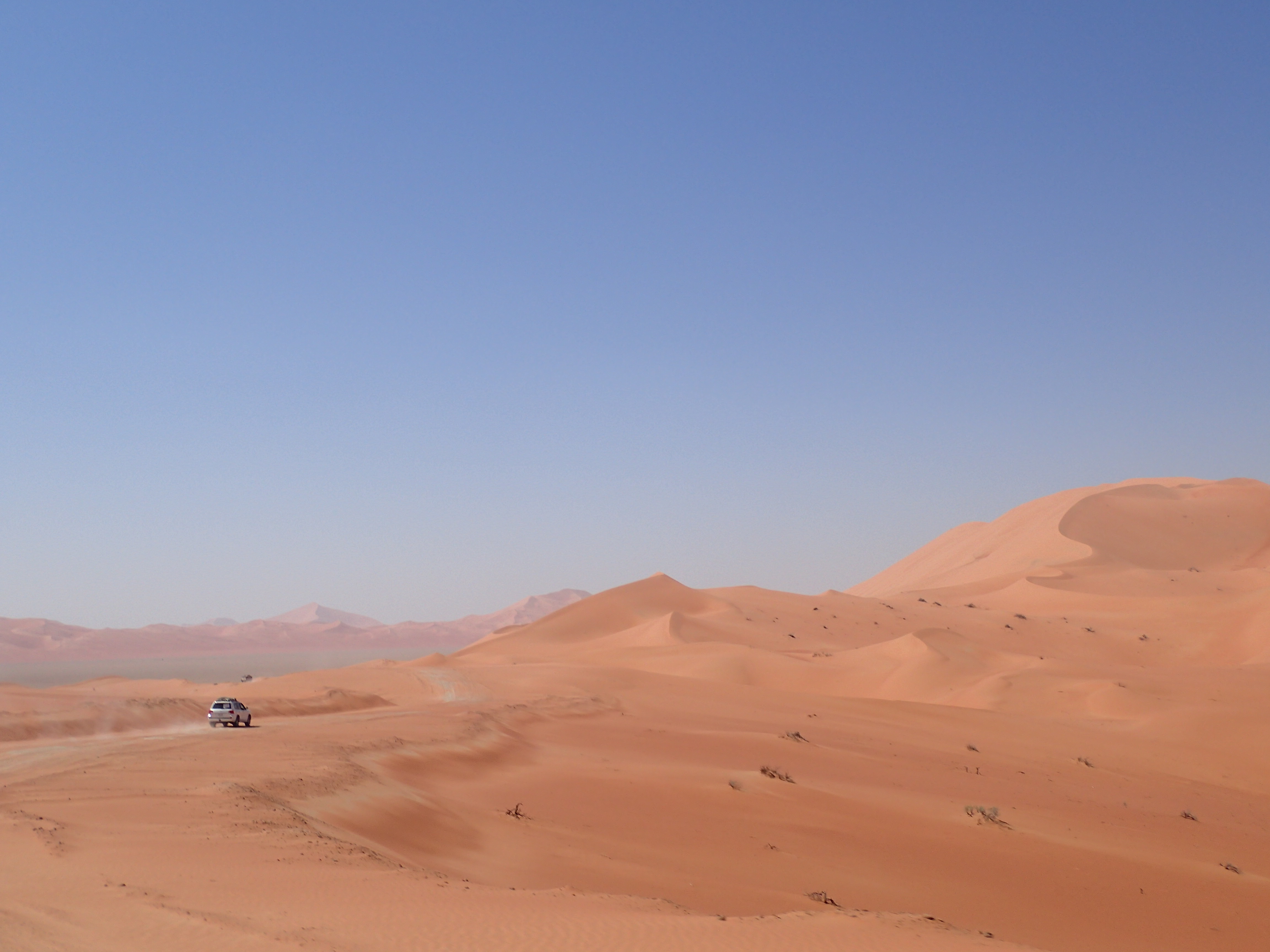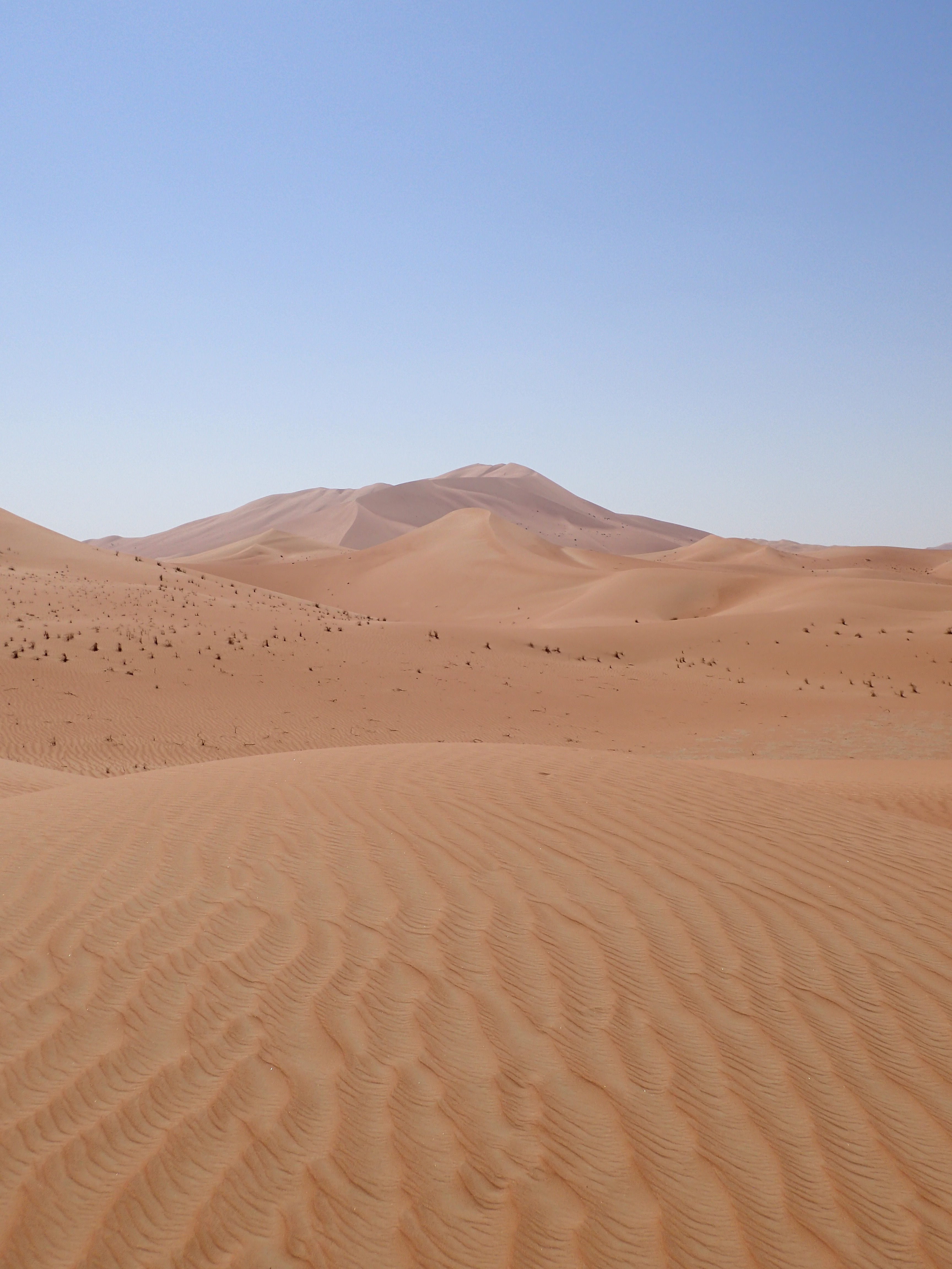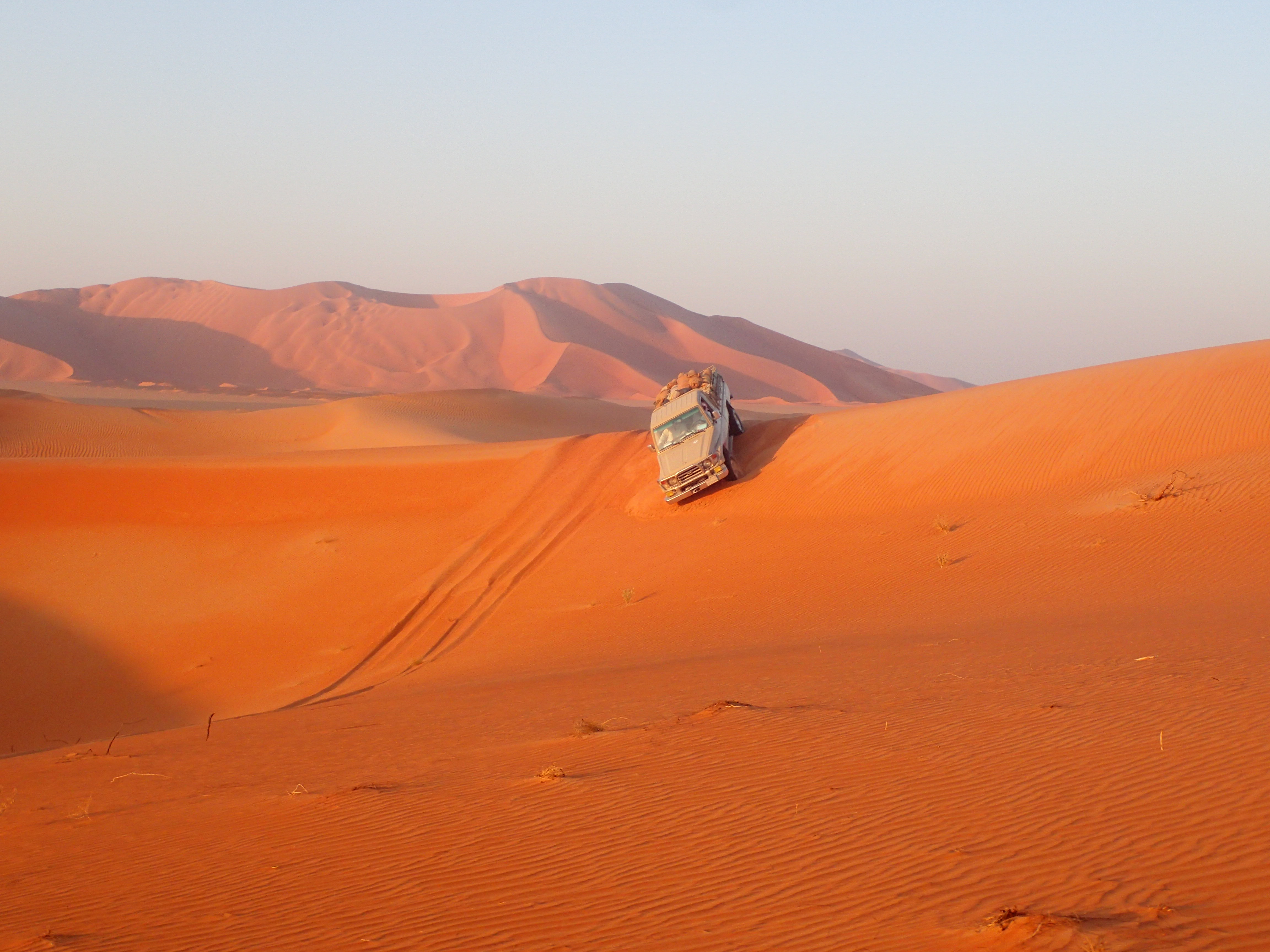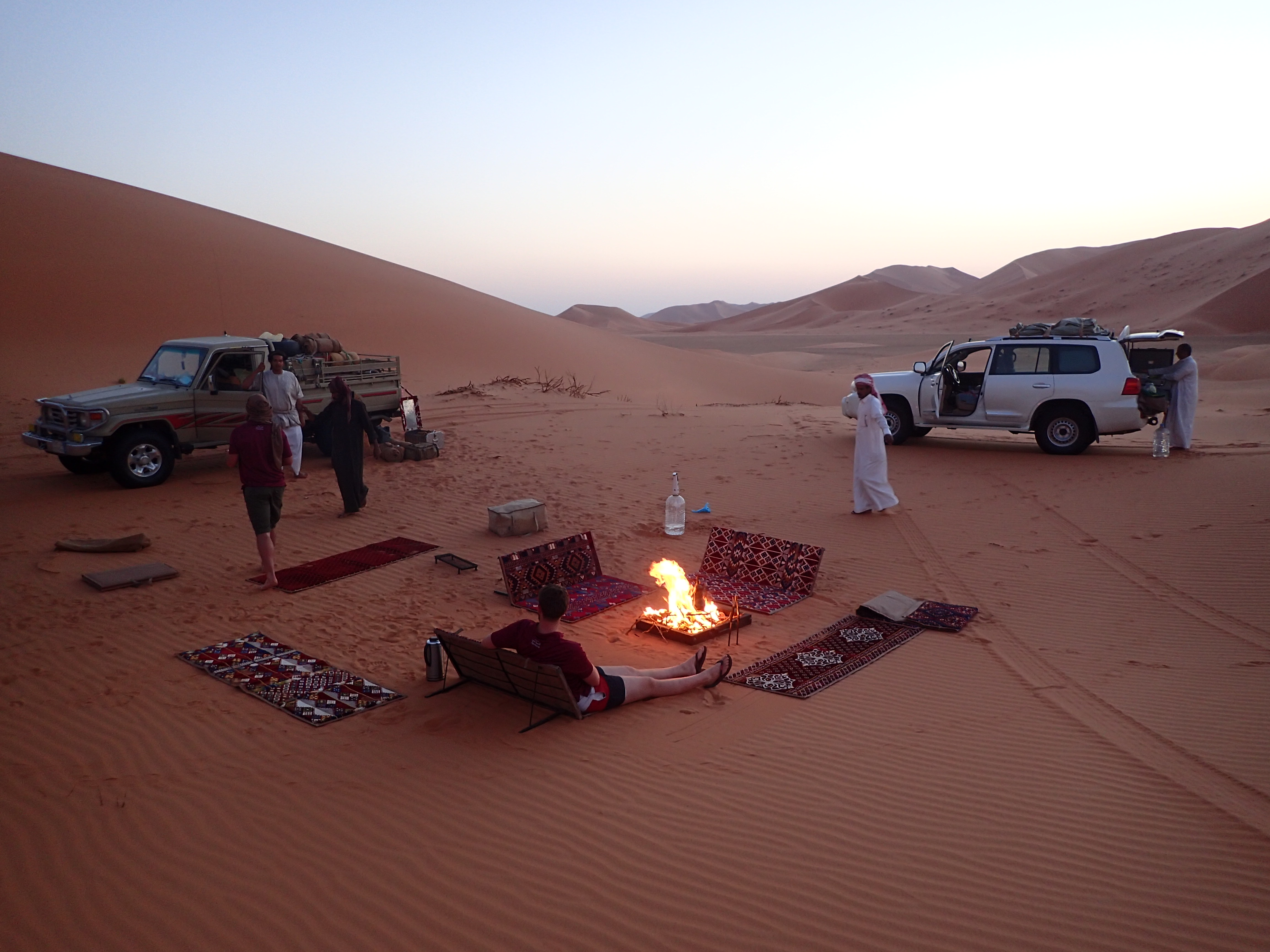It was almost impossible to get any sense of scale of the desert, especially during the heat of the day when the sun bleached every view. However, as the sun set, the dunes appeared to come alive with every ripple making itself known to the eye. Usually we rocked up to strike camp around 4.30pm where we would jump out of the cars and immediately hike up the highest dune that was possible and kick back to enjoy the inevitable stunning sunset in absolute silence. It wasn’t until I returned to work and I woke in the morning to the sound of birds when I realised what I had been missing, yet at the time sat on those dunes listening to nothing was simply awesome. Some may say its haunting but I thought it was beautiful. It’s hard to describe hearing nothing and in fact it’s quite impossible to hear nothing for an environment as quiet as the Empty Quarter enables one to hear someone else from what feels like miles away. Distance was incredibly hard to judge yet the distant sound of the camp kitchen could sometimes be heard as though it was right behind you. Sat on those dunes, watching the sunset must surely be one of the best detoxes the mind can get. With the sun gone, the sky immediately started to fill with the stars and we would settle in for the night drinking tea and coffee around the fire while munching on dates followed by chicken, rice and veggies. Conversation inevitably turned to world domination yet by 9pm we would all be drifting off to our own little patch of desert to once again fall asleep under the stars.