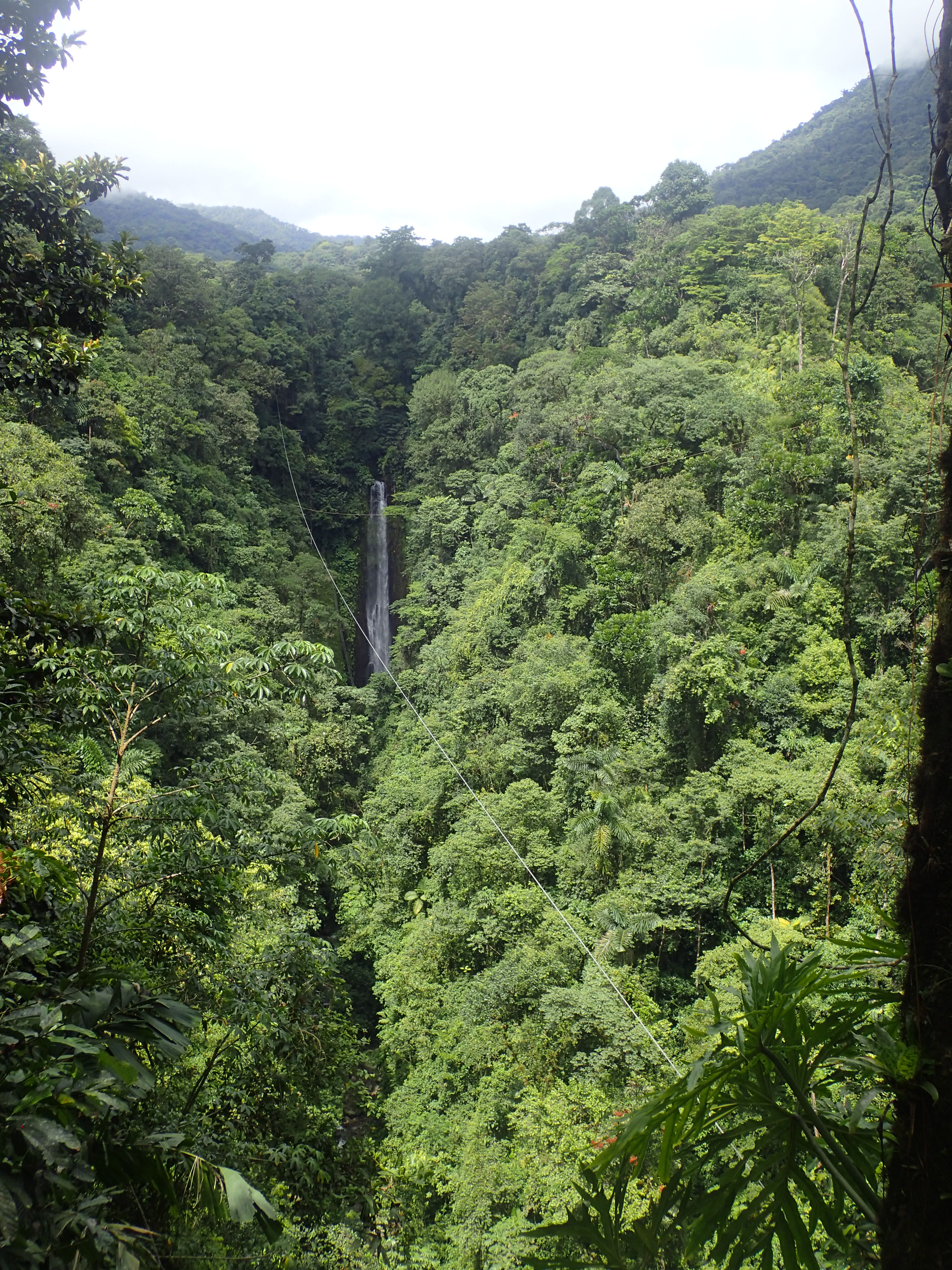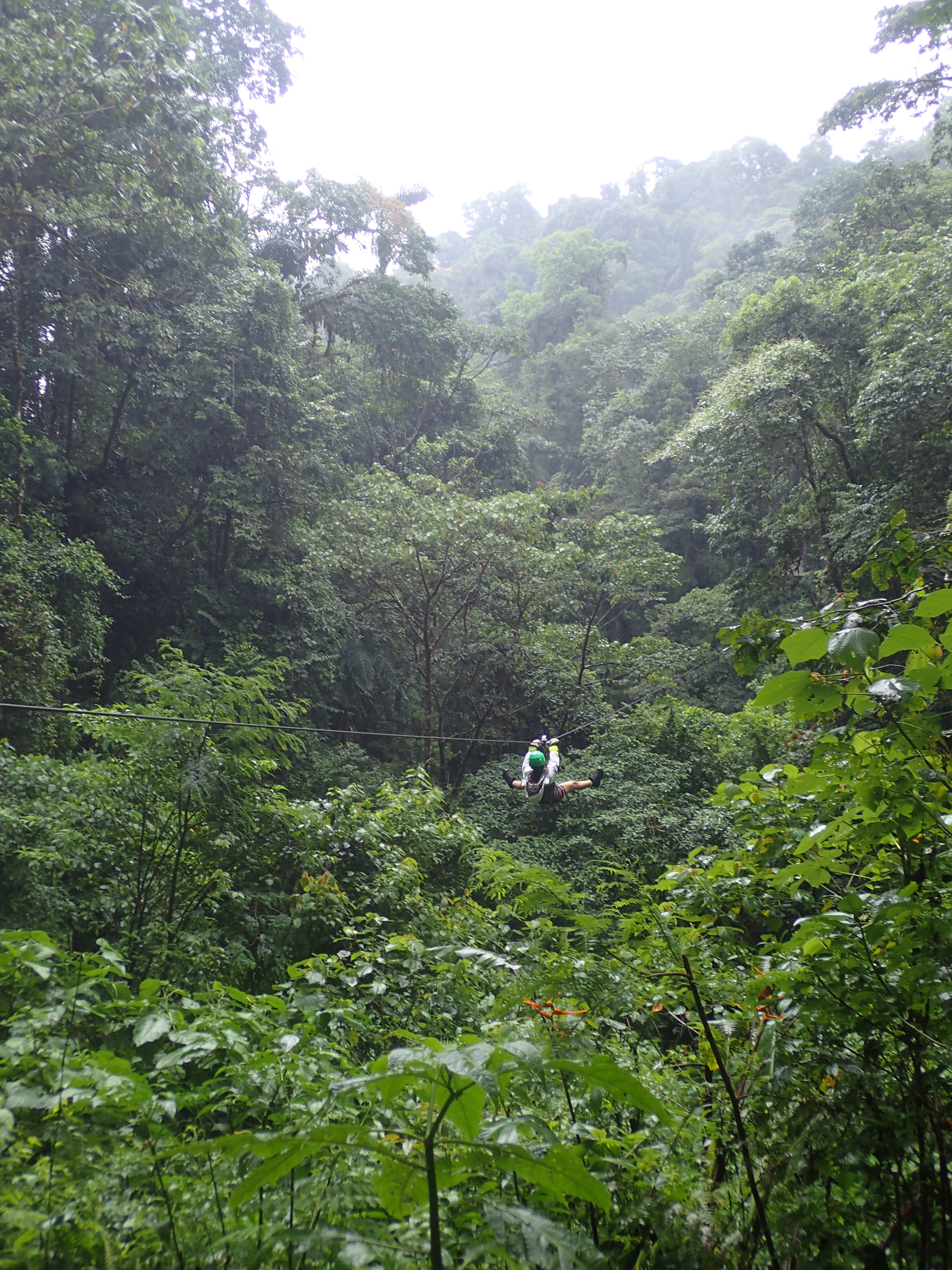 PCR testing gets in the way of everything but such is life and with our morning and $300 gone we simply had to hope that the weather would hold for our afternoon activity. It did. We had booked onto a multiple adventure thing that involved getting into a harness and making our way through the forest on a series of zip lines, rope bridges, ladders and ropes of varying degrees of excitement. We had hit the jackpot with this activity as the weather had become wet and moody but the heavy rain, thunder and lightening stayed away. This provided some wonderful scenery with the low cloud hugging the tree tops and we could watch each other fly down a zip-line and disappear into the clouds from time to time. We were also the only ones to be doing the activity and accompanied with two jolly instructors, there was plenty of time for photos and no time hanging around waiting for others. The Tarzan swing was particularly good fun, jumping off a platform on top of a small waterfall and then you would find yourself swinging over a much higher, second waterfall, one that we would be rappelling down once the swing was over. There were no speed or free-fall records to be had here but there was just the right amount of adrenaline for a Sunday afternoon where one could have great fun without going through the terror that usually accompanies a huge adrenaline rush.