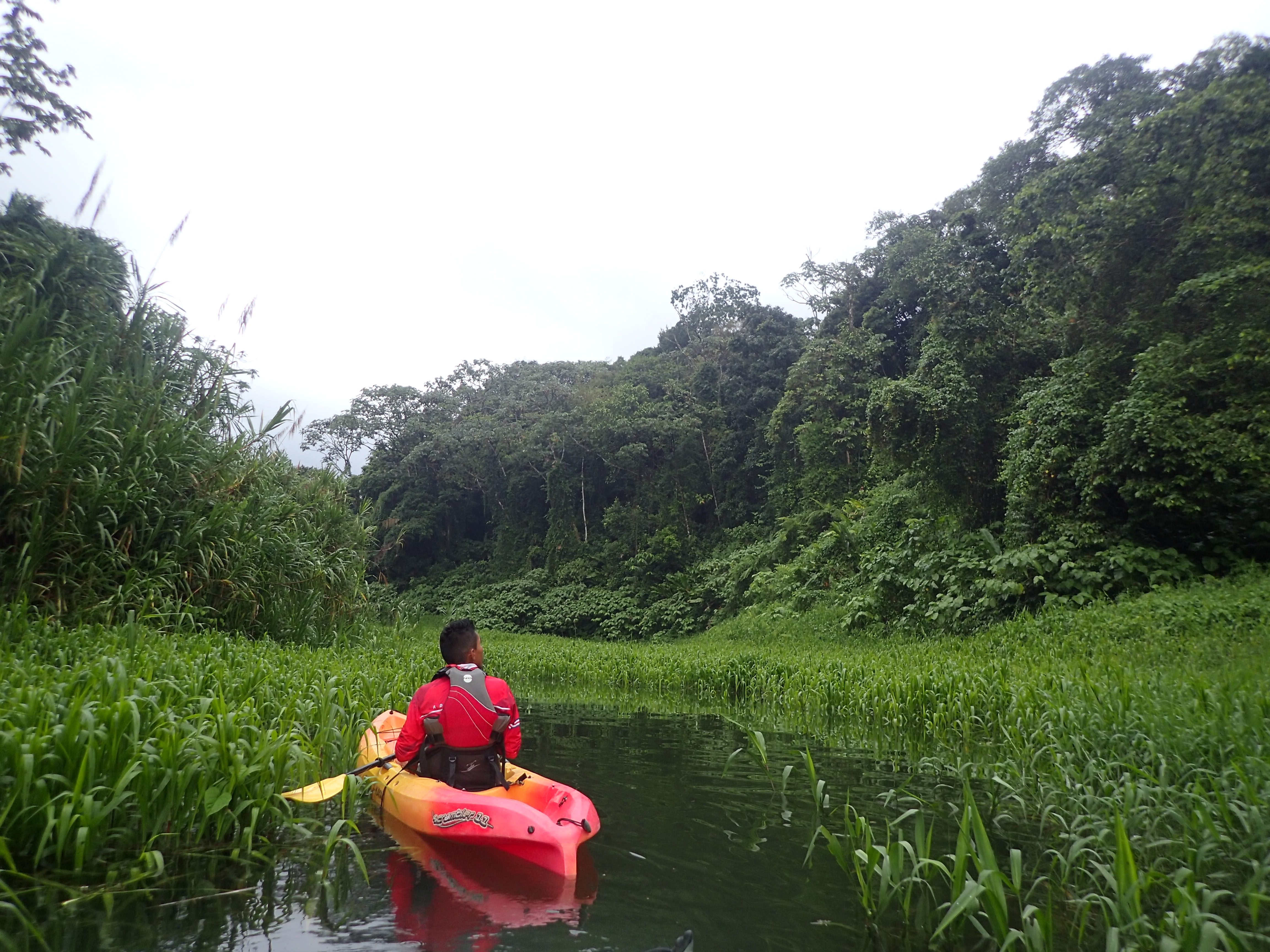 Disappointingly, my first night in La Fortuna was a disaster as the Imodium left my body and my guts awoke to a plate of fries sitting inside it. The response was quite cruel, feeling pain I haven’t felt since my appendix exploded however, I woke the following morning feeling the best I’d felt all week; a little like the end of a good movie when the bad guy goes out in spectacular style. Think The Eye of Sauron at the end of Lord of the Rings. It was time to get active again and the following day we headed off horse riding where we sat upon horses that were pre-programmed to take us up the hill, wait for us to go for a walk, and then return us back to the stables. All we had to do was sit and from time to time bounce depending on how fast they wanted to get from A to B, no steering was required which made the whole experience a little dull. The horse riding that is, the surroundings were as beautiful as ever and the aforementioned walk took us to the base of one of Costa Rica’s most famous waterfalls, the 70 metre high, La Fortuna waterfall. The falls are worth a look and if we had paid attention we would have packed swimwear and swam at the base of the falls with everyone else but to be fair, we thought we had paid for three hours of horse riding, not a donkey ride and a swim. Nonetheless, it was great to be out and doing something. By 1.20pm, after a quick lunch, we were heading out to the lake for a three hour guided kayak in the gaze of Arenal. Now, we knew this would be risky because every afternoon the skies would come alive with energetic thunderstorms and endless rain. Of course the day before when we had nothing planned, it stayed sunny and dry until 5pm but not this day. After a cloudy and damp hour out on the lake, happily exploring river channels, the afternoon storm arrived to cut our time on the water in half. In fact it rained so much, we had to wait for 20 minutes on our way back to the hotel for a flooded road to become passable and once that obstacle had been passed we had to wait 30 minutes longer for an accident to be cleared a little further on. The rain continued late into the afternoon and so we did what anyone else would do; grab some cold beers and jump into the hot tub in the back garden.