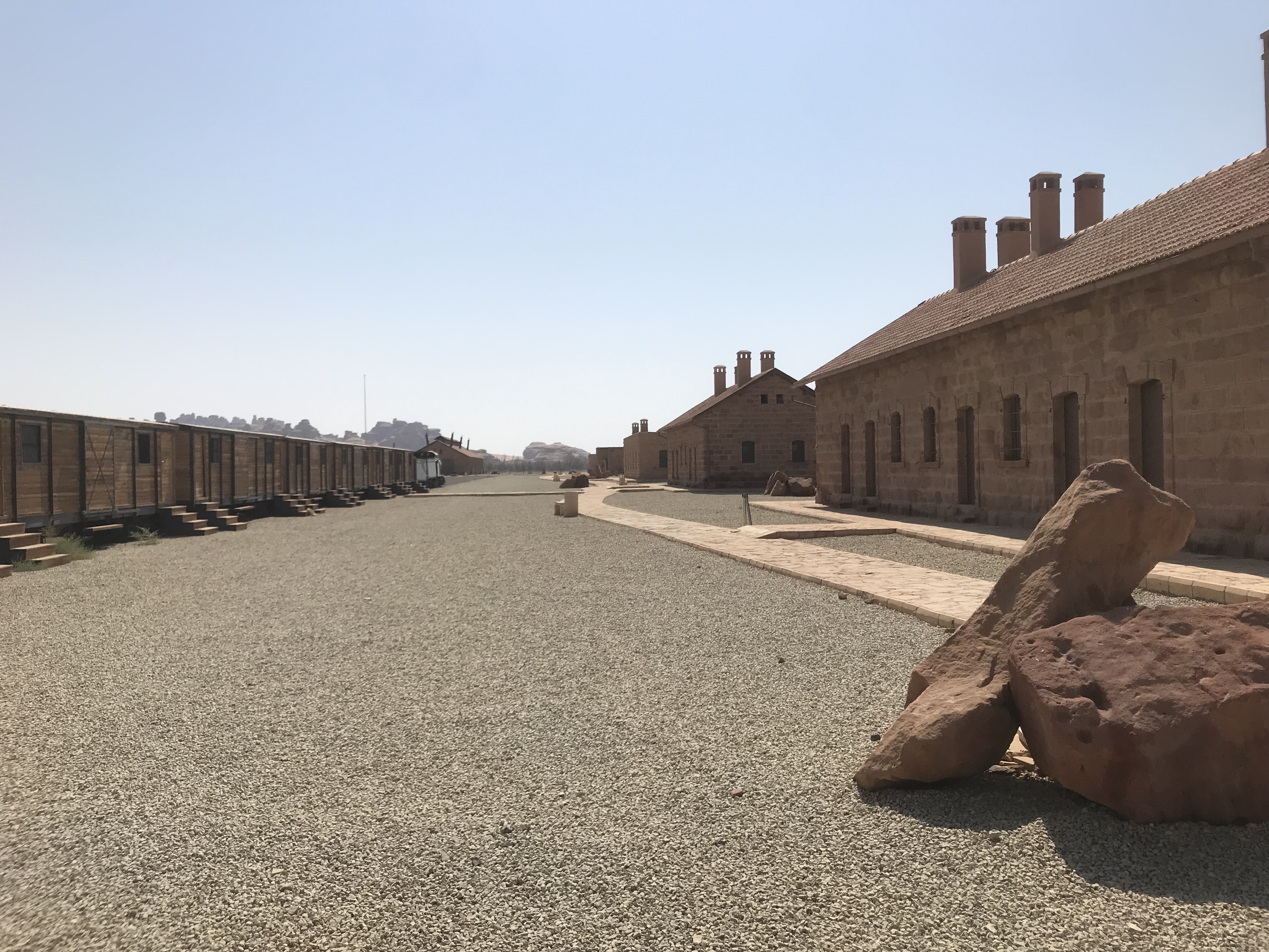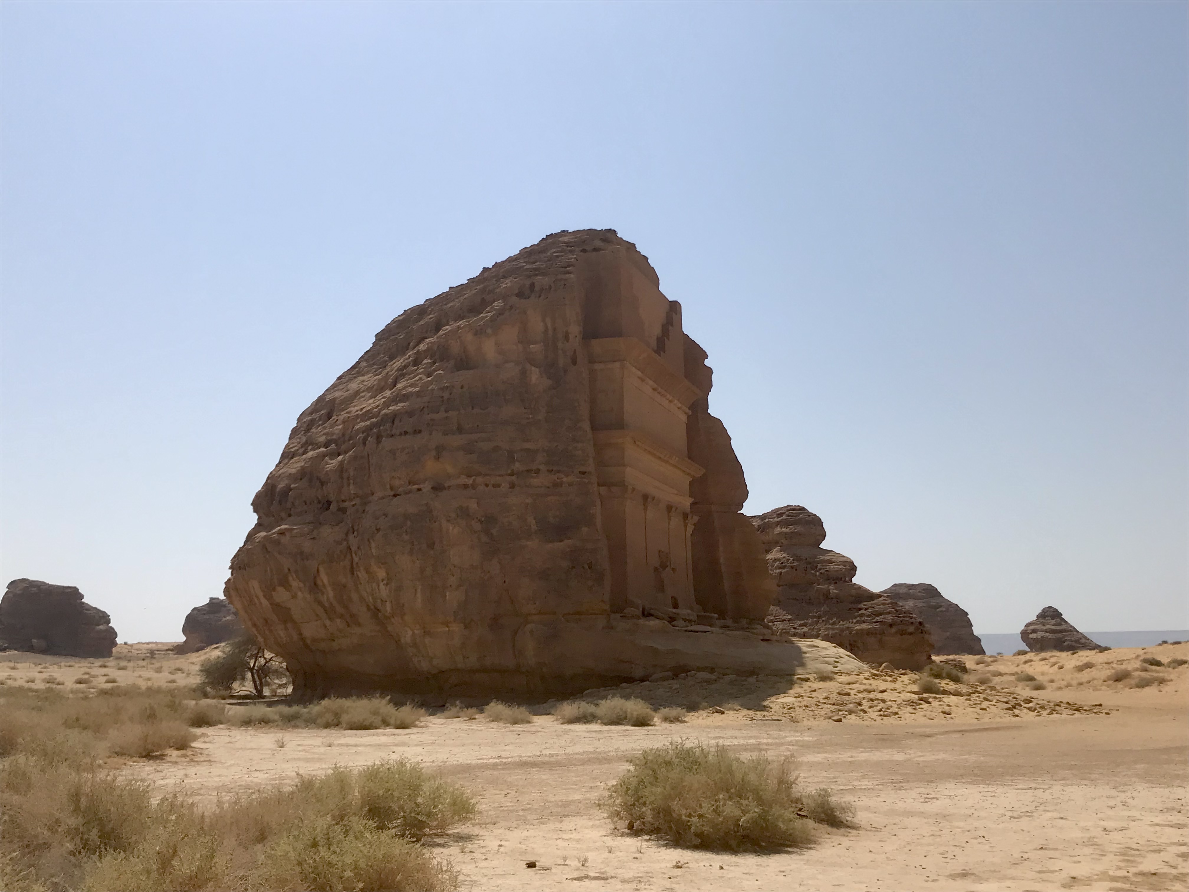 I did finally make it to the country’s centrepiece though. Hegra aka Al-Hijr aka Mada’in Salih was Saudi Arabia’s first UNESCO World Heritage site, up there as a national symbol alongside Big Ben, The Eiffel Towel and Sydney Opera House, Hegra is an unmistakable icon. Containing over 100 tombs that were carved into the sandstone rock that rises up all over the place, these were created by the very same civilisation that created Petra in Jordan, just a little further up the road. The area also sat on a major trading route and the Turks even built a railway from Damascus to Mecca that passed right on by the ancient tombs, although it was never completed. Tourism is very much in it’s infancy but what is in place ticks all the boxes. The arrival centre is simple but smart and traditional Arabic coffee, bottles of cold water, dates and other yummy treats await your arrival. After a brief introduction in Arabic and English, a coach complete with commentary will deliver you to three or four of the main sites where a guide will add further info to the group when outside ogling at the intricate carvings. How this will work in July and August I have no idea for the middle of October was scorching even though it was a good 10oC lower than the summer. Nonetheless, I was bloody happy, and for anyone who wanted to step up the experience, there was a fleet of vintage Land Rover Defenders kitted out with comfy seats in the back should one wish not to be on a bus full of common folk. Of course I was visiting at a time when a world wide pandemic is keeping tourist numbers in check and the country is still reaching out to the wider tourist industry, and so of course Hegra is set to be much much busier. However, being in the middle of a huge desert affords plenty of space and no matter if you are in a group of 20 or 100, there will always be one dickhead that gets in the way of everyones photo opportunity.