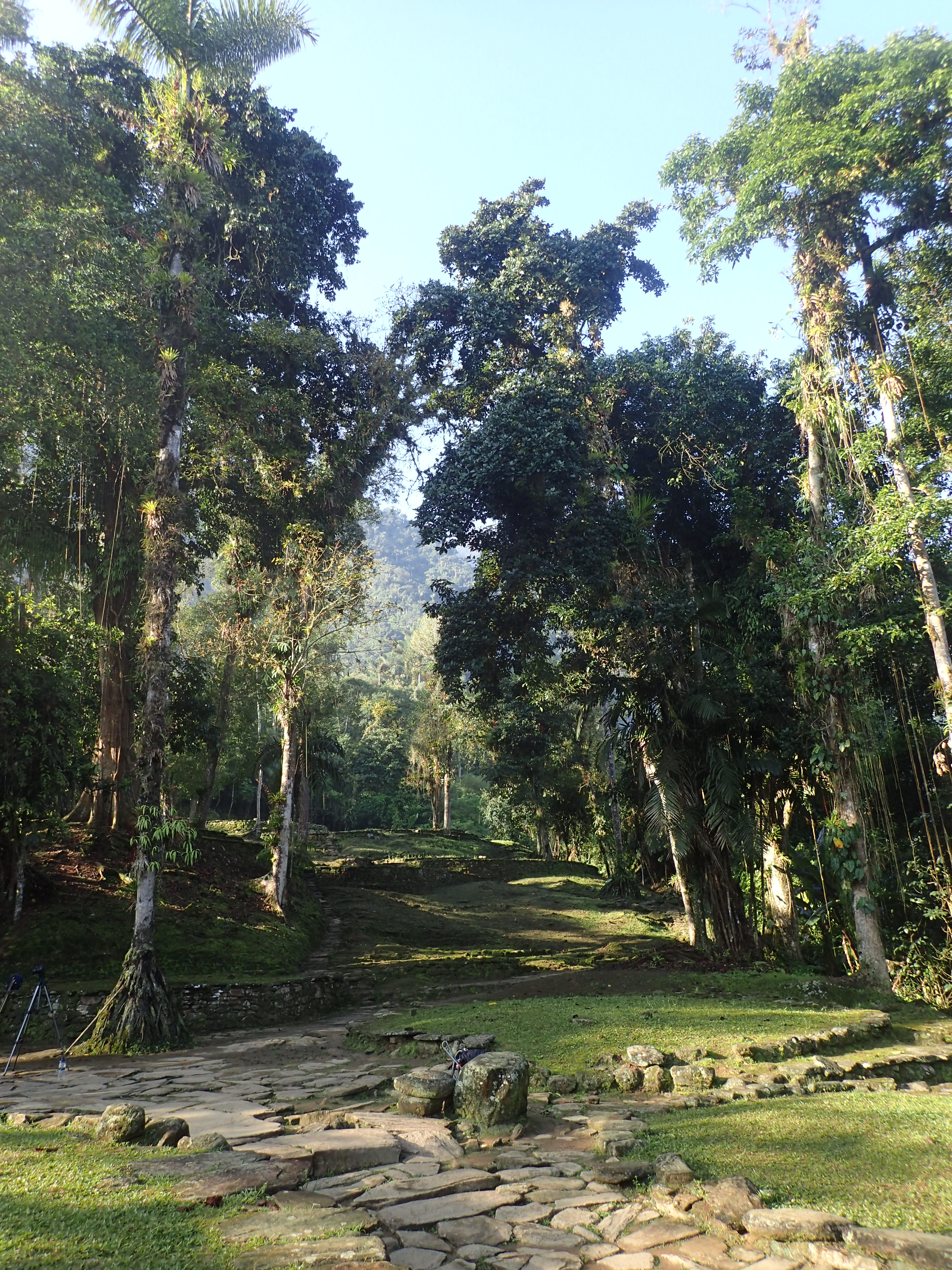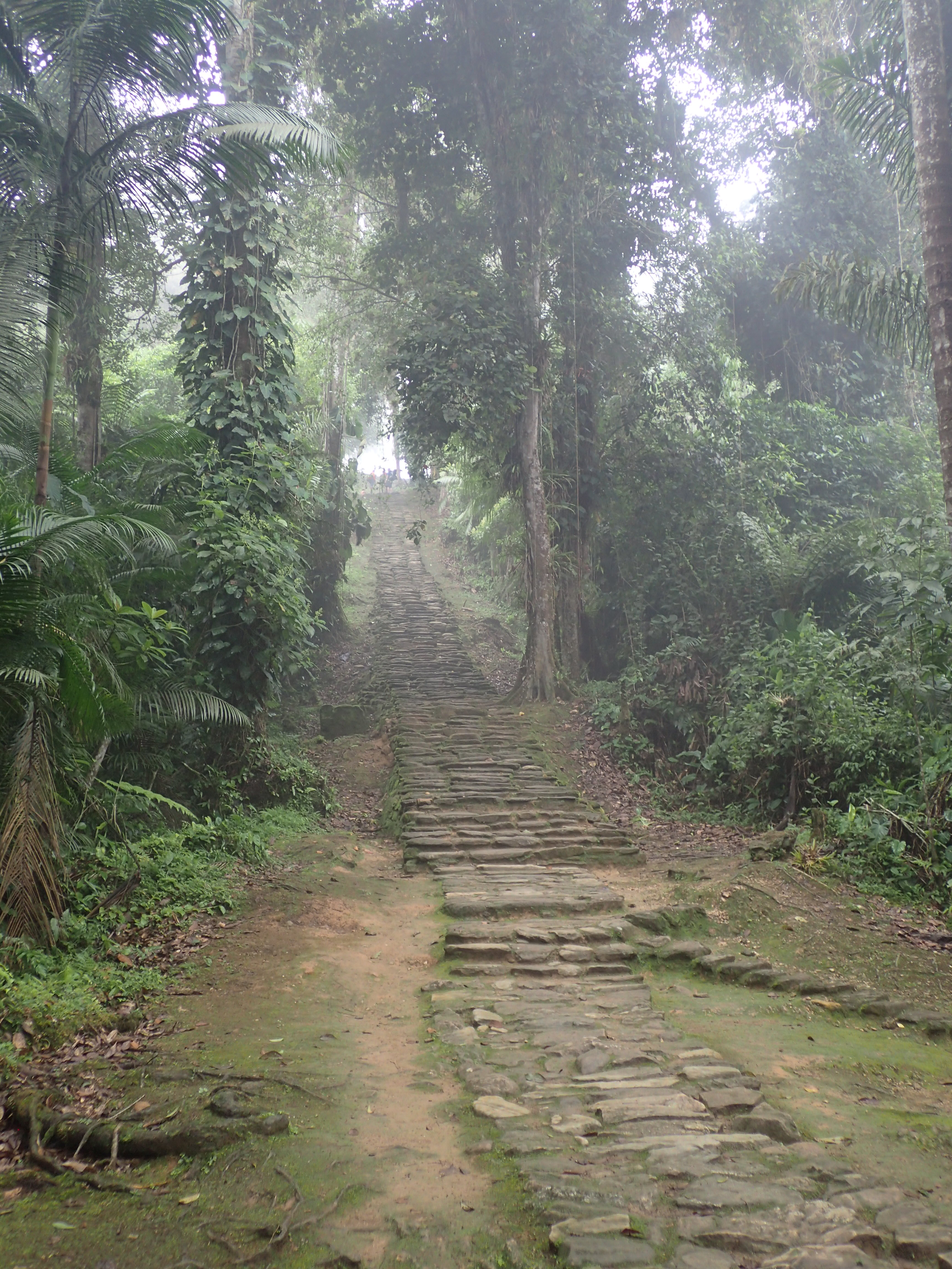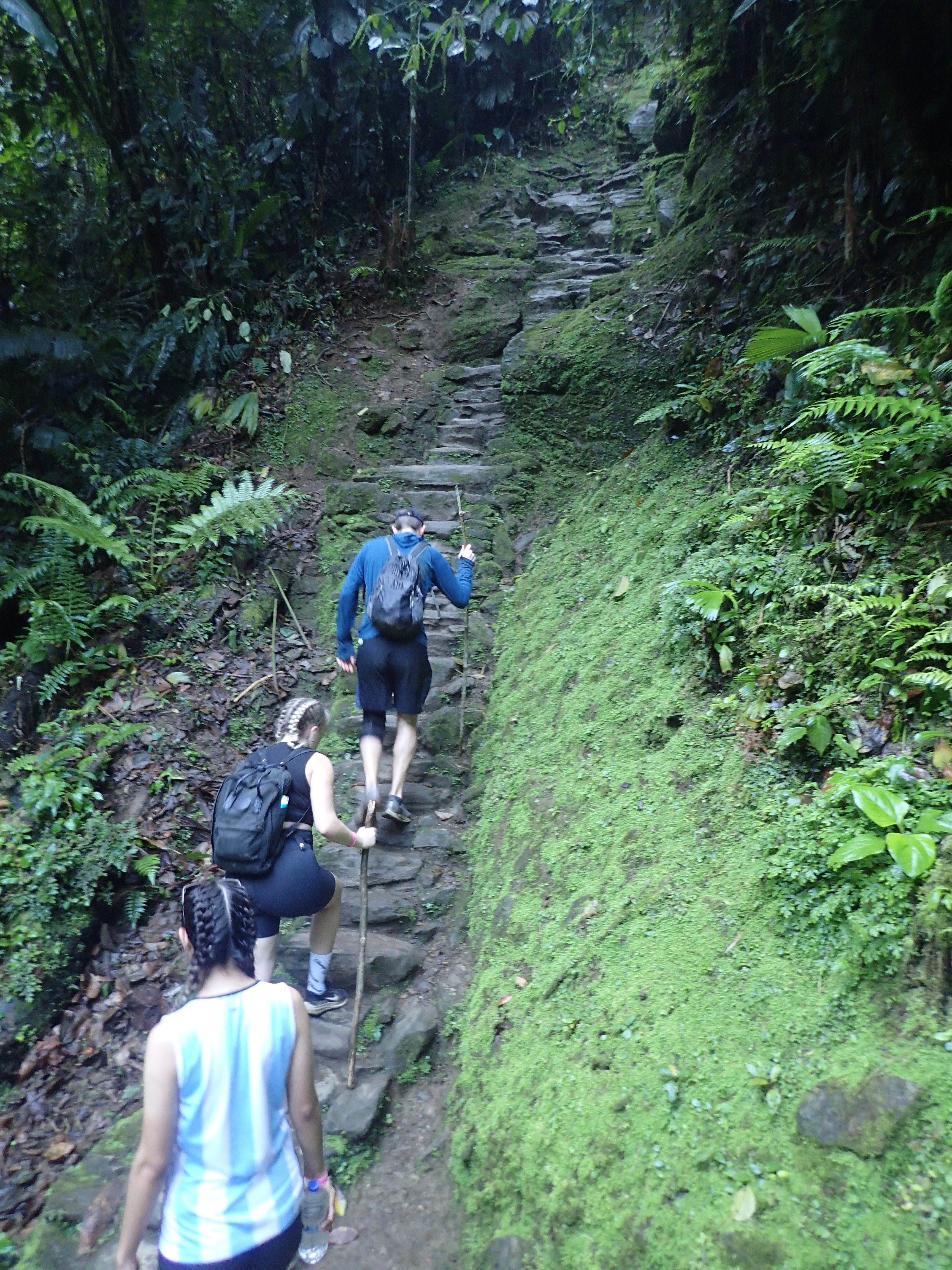 After a wonderfully deep sleep to a backing track of the river racing below, day 3 began with the usual routine before commencing a 1,200 step climb up to the Lost City. With steps straight out of Mordor, some barely big enough to support my clown-sized feet, I was more worried about the return journey down than the one up. Finally we entered the ruins of the Lost City where one would be forgiven for believing it’s still lost. Never have I been to such a significant site to be treated to so few tourists and zero curio sellers, it was magnificent. There is no other way to the Lost City, no trains, cars, motorbikes, cable cars; only by foot. I have always claimed that this is the way things should be and I applaud Colombia for keeping tourism here under control. Maybe it has something to do with the pandemic, but I see no reason why the Lost City hasn’t always managed to hold onto some authentic atmosphere without the hustle and bustle of mass tourism. The ruins themselves are vast. I wasn’t expecting much and was led to believe that the hike is the best part but I disagree. Both the hike and the ruins were epic, largely because of how peaceful everything was. The Lost City sits on top of a mountain, surrounded by jungle covered peaks and little remains of the city apart from the stone terraces that it was built upon. There’s not even any information signs to describe the various parts that do remain or to give any indication what it used to look like, but that’s fine by me. I was just happy to have made it and to have been able to keep up with my younger companions! No cotton wool required here!