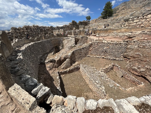 Nafplio was a warning shot across the bow. A beautiful little town sat on the coast with an incredible fort commanding the skyline I was taken aback by the contempt shown by some of the locals. Contempt is too strong a word but the grumpy and lazy waiters in the restaurants was quite the surprise and our trip to an amphitheatre to watch a traditional Greek play was cancelled at late notice due to the actors going on strike. Luckily, we had a wine tasting booked! But even that was a bit of a let-down as we all took chairs in a classroom environment and the assistant poured miniscule portions of wine. The wine sensei was excellent and incredibly interesting to listen to, it would just have been much better if the event had been slightly more social and less formal as with all other wine tasting sessions I’ve been on. However, I must admit that my knowledge of wine is even worse than my knowledge of ancient history and so my lack of interest should be placed on me rather than others! Not to be outdone, Nafplio had its own ancient site to visit, Mycenae, dating back 3,500 years. More rocks arranged in various squares and circles, more incredible views, and another museum full of pots although the air conditioning was much appreciated. From Nafplio we caught an overnight ferry from Athens to Chania in Crete. More of a cruise ship than a ferry, we found plenty of places to eat and hit the jackpot with a plate full of gyros and a pint of beer for only €8, I couldn’t have been happier and celebrated with a couple of more beers before the ship finally set sail around 10pm. By 7.30am we were sat in a restaurant in Chania on a cloudy Sunday morning with almost no one on the streets. Breakfast was disappointing up until the point we received a complimentary shot of raki and a sweet dish, a custom that would follow us throughout our time on Greece. Our spirits lifted we went on to explore what in my opinion is quite a rubbish place and we ended up dozing and reading on a stony bit of beach under a tree on the edge of town. In need of food, we headed back into town by which time the place had exploded with tourists and restaurants overflowing with customers. Why all these people were here I have no idea. Yes, Chania has some pretty little streets and an alright harbour but from what I could tell there was little else. In a state of shock, we hit the emergency ‘go further’ button (work in progress), pushing through the crowds on the waterfront and up into the streets of the old town until we fell upon a picturesque little restaurant out on a narrow street and shaded by vines. The price of a Greek salad and house wine was excellent and so with little else to do we settled in for the afternoon, which I suppose is one good reason for visiting Chania. Greece has been an incredible country to travel up to this point although leaving more rural areas and heading to tourist centres naturally loses charm, but as we crossed to the south of Crete, there was one more surprise, the final calm before the storm that we all knew was coming.