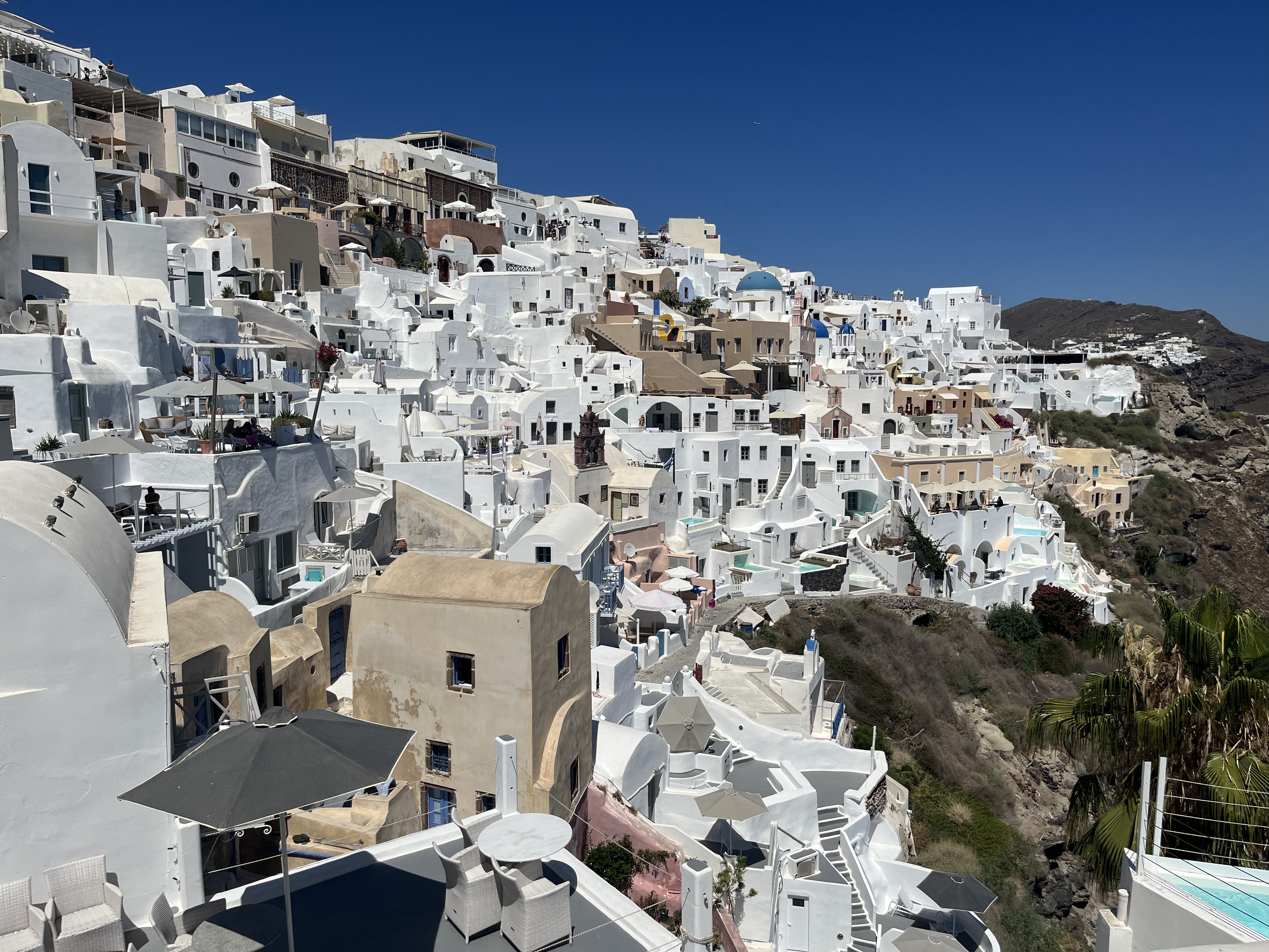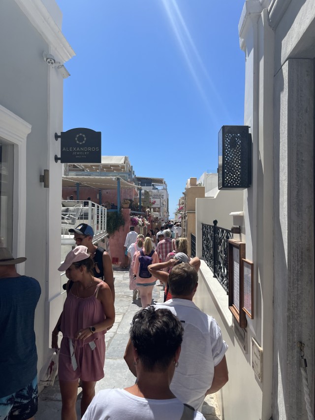 I’ll cut straight to it, Oia in Santorini is undoubtedly picturesque; any idiot can point a camera in any direction and get a good shot, but it has to be one of the most overrated and soulless places on the planet. A glorified shopping mall selling glorified tourist crap including jewellery and dresses no one will wear again at glorified prices with a glorious view. All the while the whitewashed walls radiate heat and cook anyone who dares walk through the crammed streets as girls pose with their boyfriends furiously shooting an iPhone 13 plus. One guy even proposed among the mass of onlookers, even crazier, she said yes. Never has there been a less original proposal. The chic hotels and guest houses that cling to the side of the cliff, with their private swimming pools and stunning views are epic in their own right but they are not alone, forming just a single hole in a giant honeycomb of misery. Maybe people like having no privacy and are happy to pay for it, but call me old fashioned, I’d rather pay to get away from my neighbour and have a private pool which I could lounge around in naked with no idiot, such as myself, walking by in search of a good picture. There is a sweet spot between the main tourist strip and the guesthouses, a mid-layer of backstreets that should you dare explore will provide the opportunity for excellent photos without the crowds but ultimately, you’re taking pictures of a holiday resort with the added disappointment that there is less to do than even at Butlins. The island itself, blown apart and taking the Minoans with it is its only point of interest, otherwise it’s a heap of volcanic rock, windswept where nothing grows, even the water is undrinkable. The hurricane force gusts will carry away all you hold dear on the beach; it will fill your dinner with dust and grit if you’re really unlucky and scare your girlfriend as it howls throughout the night. There is no point to any of it. A day at most is all that’s needed, it quickly becomes boring, prices double as soon as you enter the whitewashed streets, roads creek under the pressure of coaches, Africans haul the luggage of tourists up and down the steep steps. A visit in July exaggerates everything, with the shoulders of the season I’m sure offering an altogether more pleasant experience but ultimately nothing changes, both Fira and Oia are simply overpriced, overrated and sold-out.