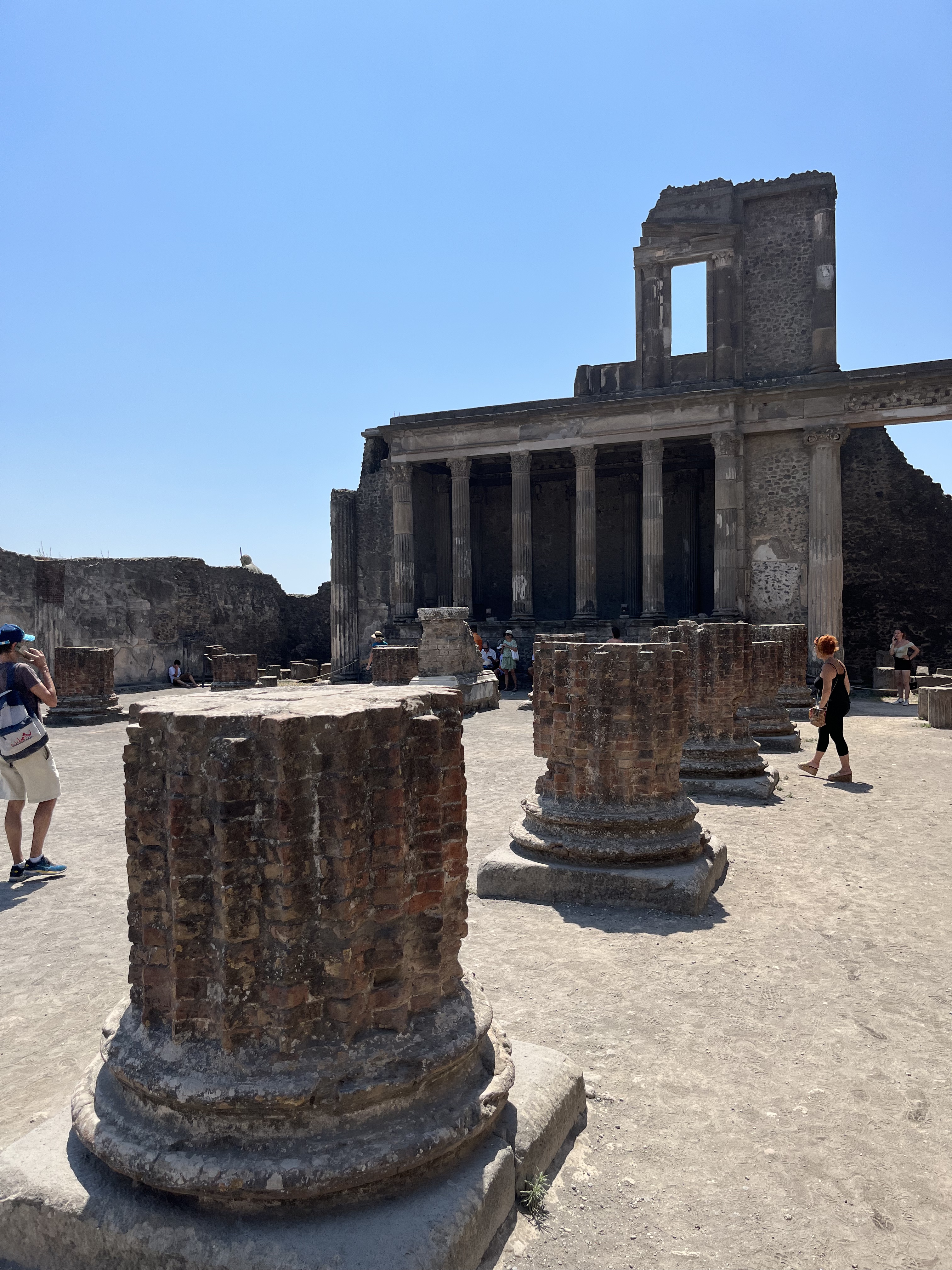 On the outskirts of one of the world’s great tourist attractions you take your chances when it comes to a bite to eat and although it will always be overpriced and barely edible, I have come to learn to just embrace it all. This at least would normally be the case yet being Italy I was once again forced to walk out of a restaurant. We had picked somewhere to eat and had been kindly seated before being politely asked to move to another table so they could create more space for a family. Not a problem. 15 minutes later, the whole menu memorised, we still hadn’t seen a waiter return and if they can’t be arsed with me than I can’t be arsed to demand they take money off me. With the clock ticking before we had to enter Pompei, we headed off around the corner to a place that had food in front of us within ten minutes. Never has eating in Europe been such a hit and miss affair. Pompei itself was an emotional rollercoaster. To begin with, we could hire a smart phone which was preloaded with an interactive map and endless recordings which told stories of what felt like every building ever built in Italy. For only €8 it was fantastic value for money considering it would take at least a day to make a dent in everything it had to offer. One of the problems was that many of the fancy houses that were described by the audio guide were in fact closed off to visitors for whatever balmy reason, although I suspect a relic of the pandemic. It also became confusing as to what was genuine and what had been replaced by a replica, for many stories told of how the original piece was now sitting in the museum in Naples. Also, being a grim member of society, I wanted to see the plaster casts of all the victims. I had grown up with pictures in school textbooks of people hiding from their imminent death and I was led to believe this was one of the things that made Pompei so Pompei. Admittedly this is down to a lack of research on my part and as I still haven’t tracked them down, I’d advise you to investigate should it be something you want to see. Pompei is impressively huge, so much so that the Allies accidentally bombed it during the Second World War, but this does make it fun to explore and especially if you stick to the tried and tested rule of walking that bit further than a standard tourist. My problem was that it was the beginning of August at 2pm and the heat was ruinous, not that I enjoy hearing complaints of people being hot in hot countries, but it does make getting enthusiastic about ancient ruins a little more difficult. However, even for a halfwit like myself it doesn’t take much to imagine how incredible the town would have been 2,000 years ago and the sheer number of buildings, their construction, and the way it is all laid out has to be admired. The amphitheatre is particularly impressive. Three hours of exploration was never going to be enough although I was more excited to be getting up into the surrounding mountains of the Amalfi coast and onto some hiking trails. With the cities behind us I foolishly thought our remaining week in Italy would be borderline delightful and where at times it was actually sublime, many more horrors awaited us.