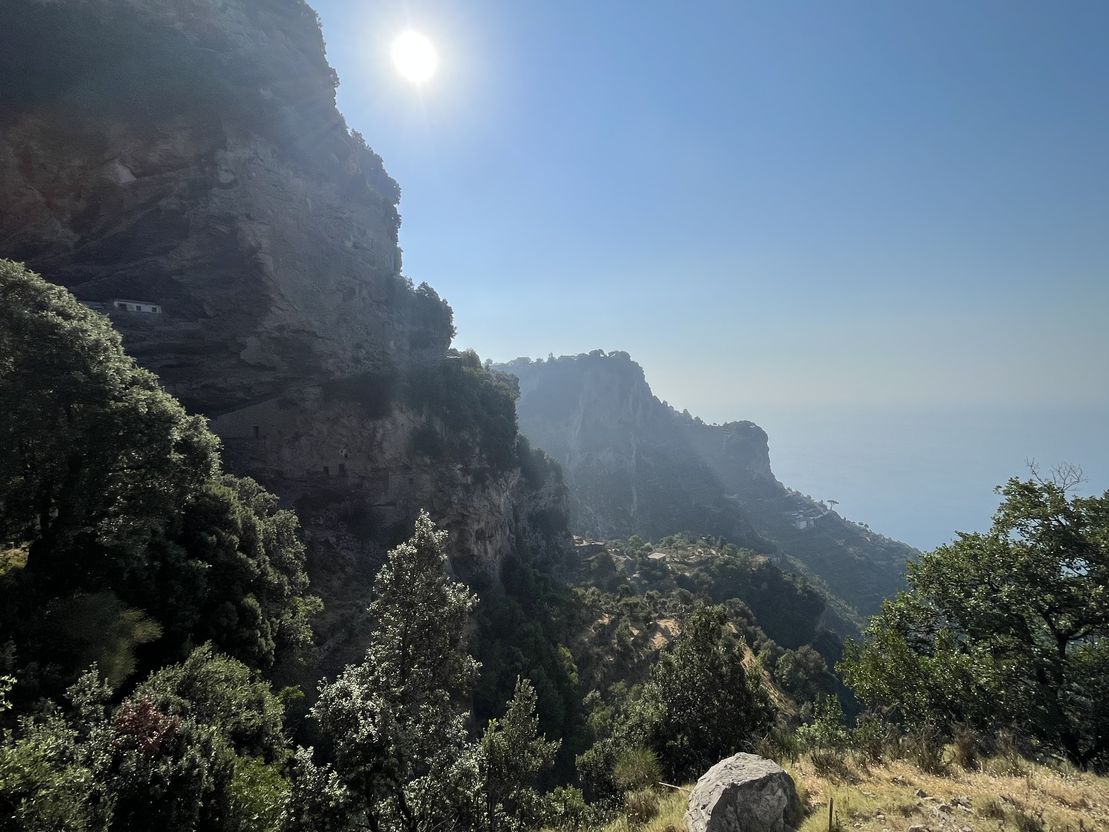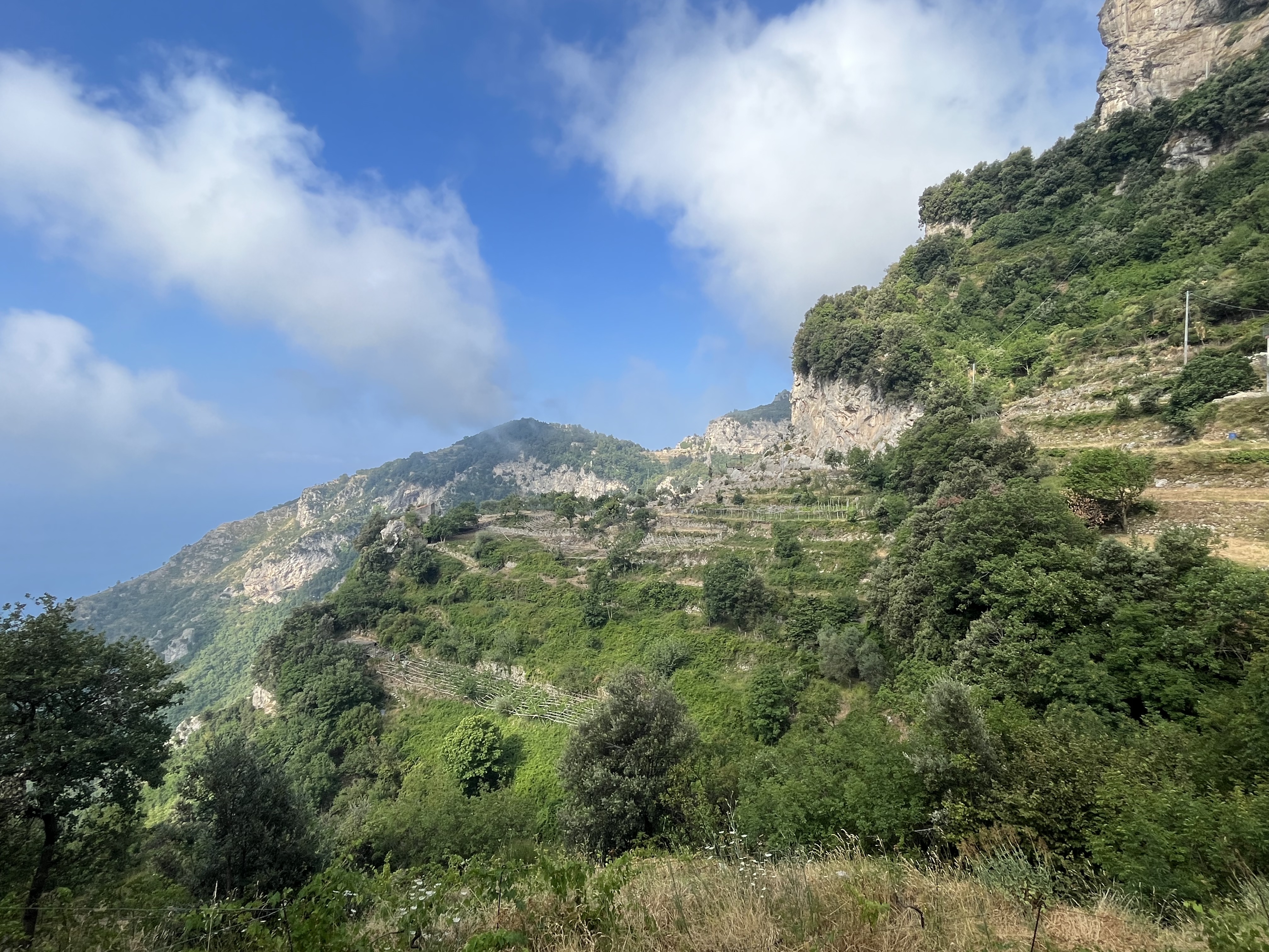 Agerola, a village up in the mountains of the Amalfi coast is a paradise away from the heat and tourists that clog up the local area. No one comes here except for the odd few such as ourselves that would like to hike the coastal path that is a relatively new addition after the locals realised they could get in on the tourism cash by renaming an old donkey path used by farmers to the ‘Path of the Gods’, but more on that in a moment. For now, Agerola is blessed with a sprinkling of restaurants, one place that does limoncello tasting, a particularly wonderful family run hotel, acres of home gardens packed full of tomatoes and corn, and one disgruntled laundrette owner. For our whole time in Italy no hotel has offered a laundry service which must be the first country on the planet where I have failed to find such. Agerola did have a laundrette and with two days in town we believed we had plenty of time to get our festering clothes washed but no, the short plump old lady who owned the place said it wasn’t possible. Even a friendly local attempted to convince the old dear that it was indeed possible, but she was having none of it regardless of the many huge washing machines lying idol behind her. All happiness associated with being up in this beautiful part of Italy began to drain away as it would seem nowhere is immune to terrible Italian service. Our hotel on the other hand was run by super friendly locals and offered a home cooked dinner with plenty of wine out on the terrace which was a sure-fire way to rescue the evening and prevent being treated like crap by some waiter at a restaurant back in the village. It was a wise a decision and one of those rare occasions where I actually felt like I was welcome in the country. What’s more, it was the first night in over a month where I felt a chill and I went to bed excited to have the air conditioning off and the balcony doors open. However, Italy determined as ever to make me miserable was having none of it and as night progressed, the sleepy village came alive with barking dogs, the random but constant beeping from some machine reversing, and the sporadic eruption of a donkey’s eeyore (bray apparently) for good measure.