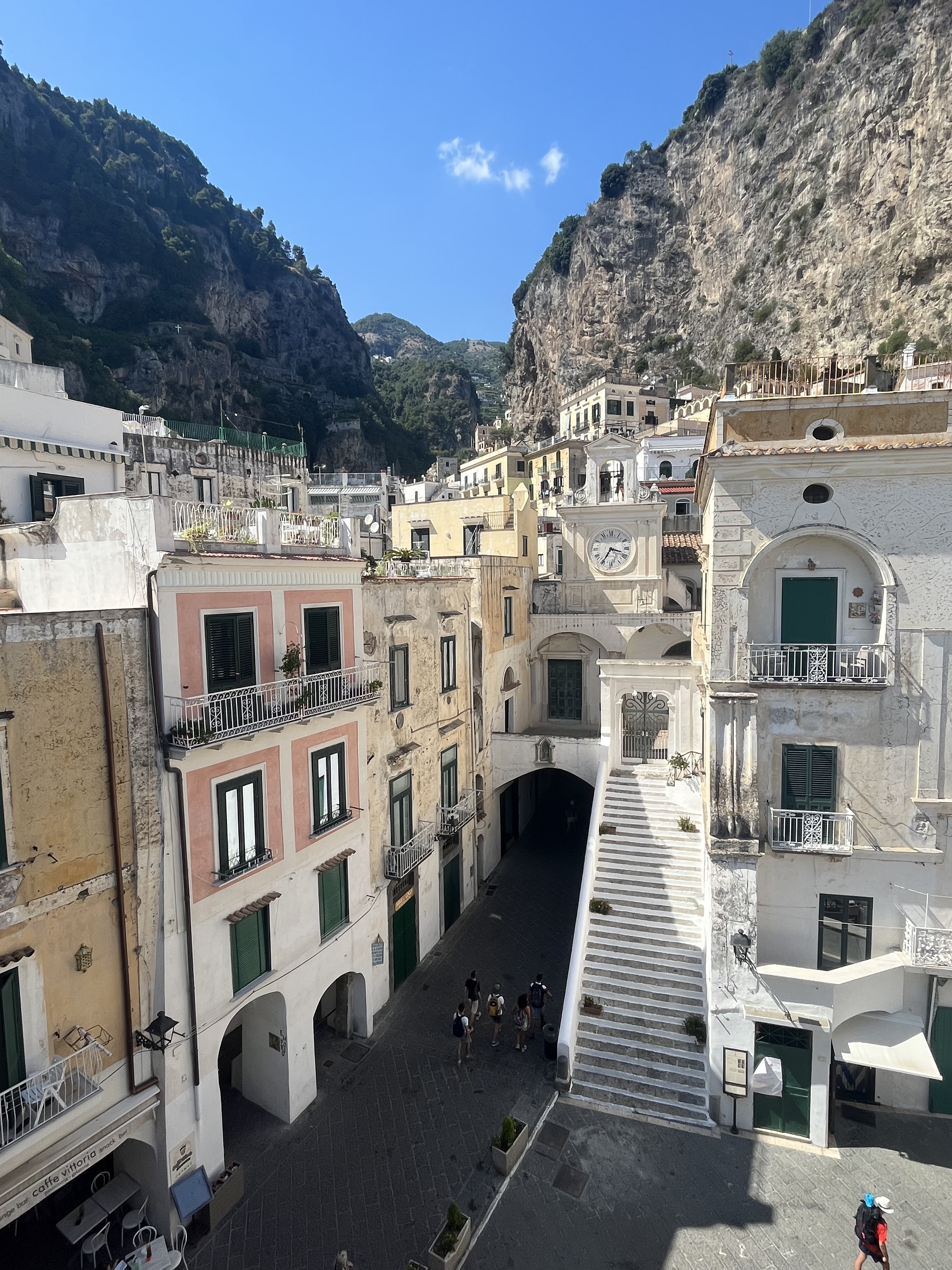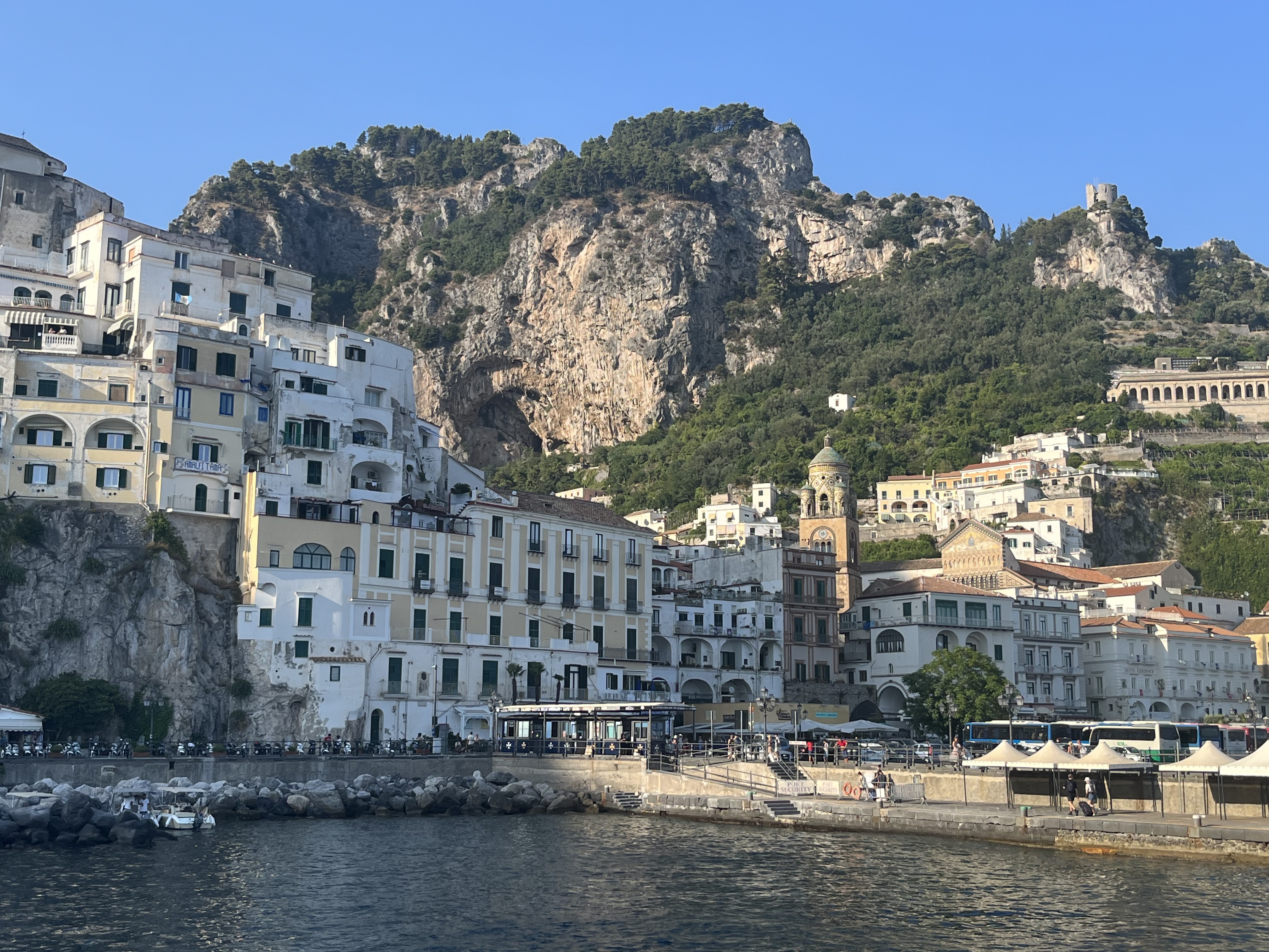 Starting the next morning shattered we headed to the hiking trails and although the clouds refused to lift it did provide a respite from the sun and we could relax into some beautiful hiking that offered epic views of the mountains and coast. The ‘Path of the Gods’ followed the next day and although it indeed attracted a few more hikers it proved to be a stunning hike with insane views of the Amalfi coast. The village of Positano was our end destination and from afar it looked delightful although in hindsight the sheer number of boats out on the sea was a strong sign of what to expect. This village was no Agerola as we struggled to get through the crowds of tourists clogging up the streets. Restaurants overflowed with people and plates half full of food lay discarded on the tables. The beach was heaving and swimming in the sea felt like swimming in a carpark with the sheer volume of boats leaving little room for anything else. The image of lemons appeared everywhere. I longed for the slopes of the hiking trail, the one place all tourists are terrified of, but we had a boat to catch that would deliver us to the village of Amalfi that would be our base for the rest of the week. There is only one way to catch a boat on the Amalfi coast and that is to accept you are a cow and be happy to be herded like one, there is no order, no respect, no concept of humility.