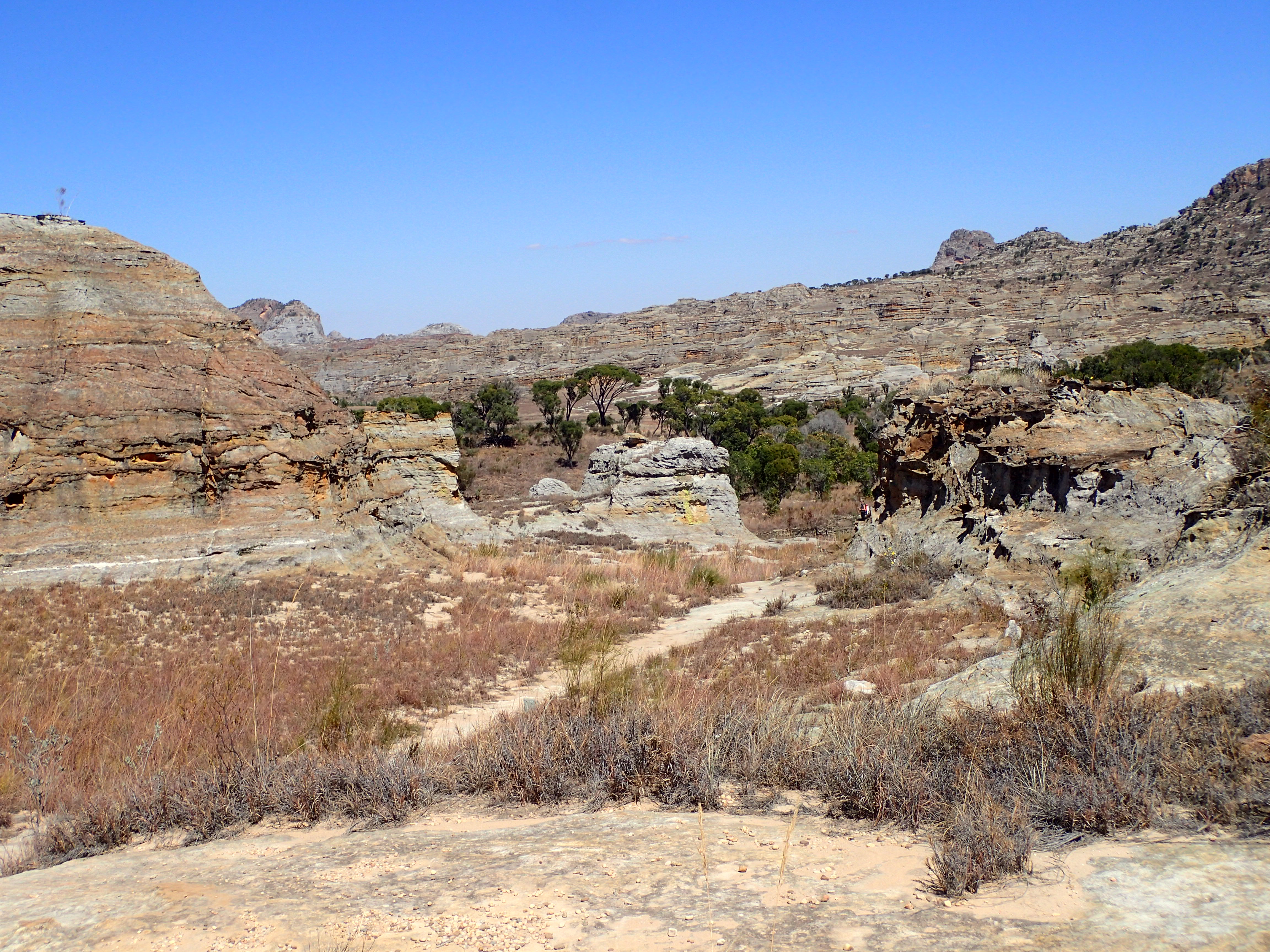 Isalo National Park sits in the centre of the southern part of Madagascar and is worth a shout simply because of its uniqueness. Once again created for the benefit of the local population as much as for the protection of the environment and wildlife, Isalo is a huge rocky landscape crafted not from the granite that we were used to seeing in the central highlands but sandstone. Within the sandstone cliffs were caves that were used for burial rituals by the local people. This and the fact that it was useless for anything else such as farming made it easy to protect as a national park. The climate had also changed to what we were accustomed to in the east. Suddenly we were in an area where it hadn’t rained for months and the days were hot and the sky cloudless. The park was a semi-arid wilderness with scorpions hiding under rocks and little bushes that resembled miniature baobab trees. A small river had carved a valley down into the sandstone that treated us to a little oasis of bloody cold water that we could take a dip in. Lunch was had at a little campsite as lemurs looked on in anticipation awaiting a chance to steal anything edible that lay unguarded. This was my kind of hike, almost void of people, vast, hot, scenery forever changing, beautiful natural pools to cool off in, a bit of wildlife, it was all quite stunning. What’s more, once we thought the sun had set and finished for the day, the sky suddenly filled with a fierce blend of purple, orange and red that lasted for maybe an hour after the sun had disappeared. This was only then replaced with the stunning Milky Way overhead. Before arriving at Isalo, we had driven through a vast plain that was largely grassland but also exhibited signs of largescale agriculture with huge fields of corn stubble awaiting to be reseeded. This was also a land where zebu cattle ruled and that the local people were dependent on. There were no three-story mud brick houses here, just small single story mud huts. Where water came from, I have no idea. Leaving Isalo and heading further south west we were met with even harsher conditions as the grasslands gave away to nothing but scrubland for as far as the eye could see. How anyone could live there was a mystery to me, but small settlements were everywhere. It was here that we began to see a few baobabs. How many used to be here I dare not think of and baobabs have a unique ability to raise empathy within an onlooker thanks to their haunting and often lonely appearance within the landscape. They look like trees from another time, a time that no longer exists, yet they stubbornly hang on because after all, why shouldn’t they? With only 20% of Madagascar’s natural environment remaining, it is the sight of a baobab that perfectly encapsulates the country’s plight.