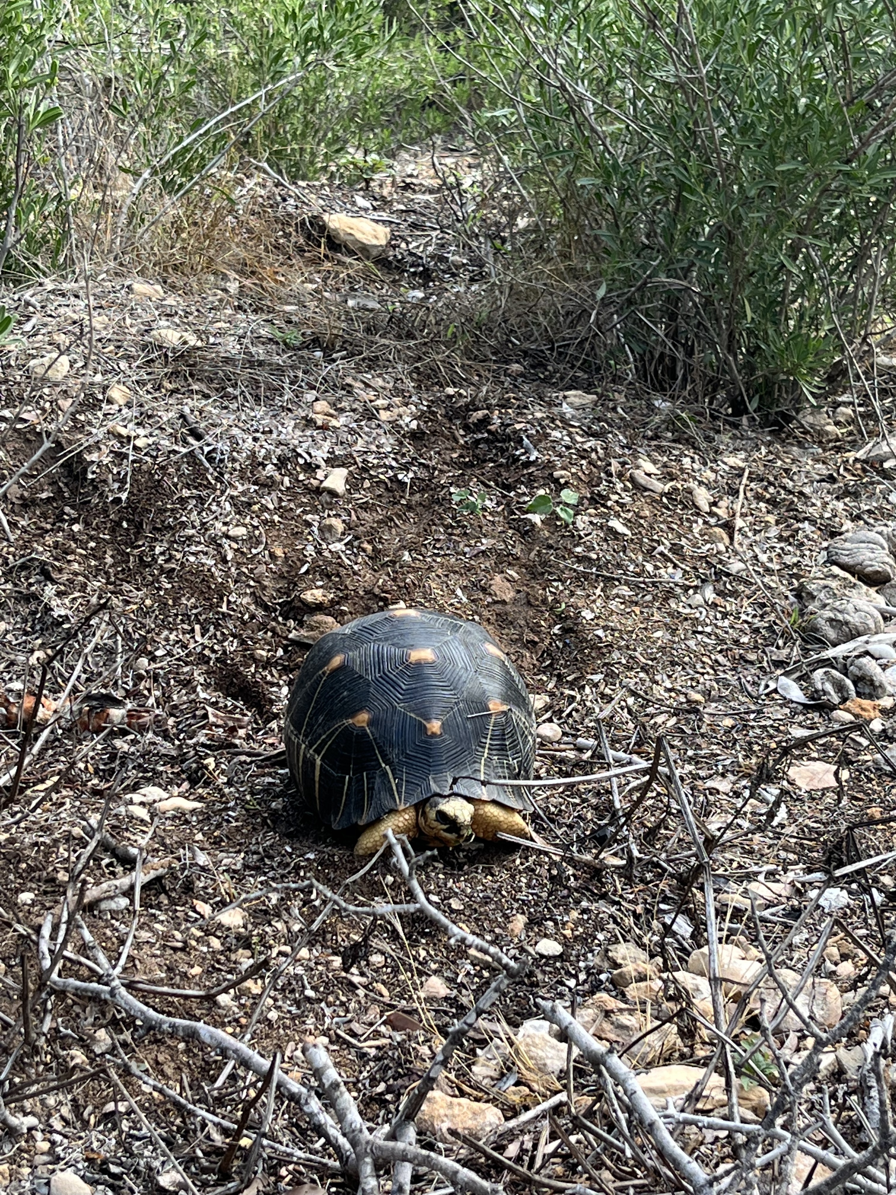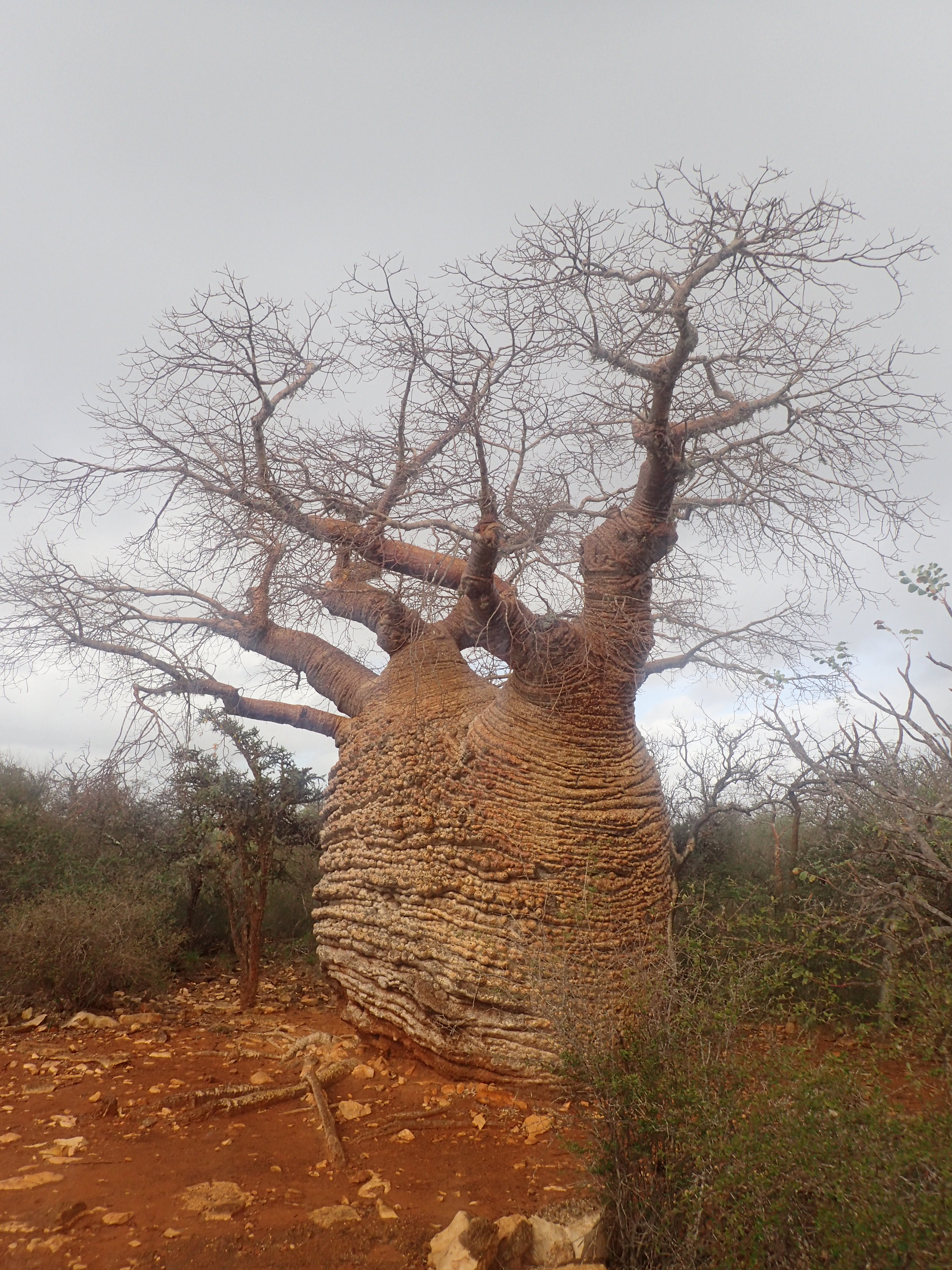 The original plan for the following day had been to go whale watching and snorkelling on a nearby island but as that became increasingly less likely we had opted last minute to hire 4×4’s and head off to a national park. It became apparent as we met our drivers that we had been extremely lucky in securing the last two 4×4’s in the area, one an old Land Cruiser and one an old Hilux with two young chaps sat in the back. Lucky may turn out not to be the word depending on your perspective of life but as we set off along the sandy track road we were in high spirits and happy to be heading out for the day. It turned out that the two chaps in the back of the Hilux were there as a makeshift starter motor, there to jump start the car whenever the driver was unable to park on a slope. We soon found out that the car had not a single electron flowing around it and a carefully choreographed routine by the human starter motors and the driver continued throughout the day to keep the 4×4 going as though it was quite normal. After a few hours of driving, we pulled up by the sea, the boys repaired a flat tyre on the Land Cruiser, and we tucked into an incredible fish lunch with some of the finest beach views anyone is ever likely to see. We then headed over to Tsimanampetsotsa National Park where it took a short while to figure out the guiding requirements and where we ended up departing with a French-speaking guide who was full of life and an English-speaking guide who was less inclined to talk which wasn’t so helpful considering only one of us understood French. A quick note on Malagasy place names, they are impossible to say, and I don’t know why I’m bothering including them in the text other than for my own amusement. The park’s main attraction was a salt lake that extends to 20km long, home to flamingos, and enchants visitors with its turquoise colours. Unfortunately for us the expat had been right and we were greeted with a stiff breeze, grey skies and the odd downpour, although flamingos were available and there were glimpses of beauty out on the lake when the sun attempted to break through. We also saw tortoises, blind fish, and a 3,000-year-old baobab that may only be 1,500 years old depending on the safari guide that you encounter. Our guide in the park clearly stated 3,000 years but this was rigorously disputed by another chap we bumped into at a small nature reserve a few days later. The entire park appeared a harsh environment with its salty lake, limestone rocks and escarpment, nasty looking bushes, depressed baobabs, and salty grasslands, but this has been a strong feature of this trip with every national park we have visited offering something beautiful and unique.
