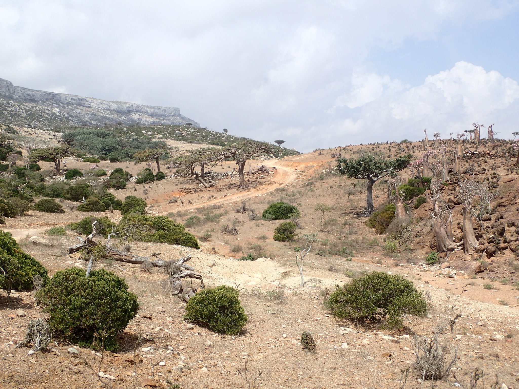Socotra is a heap of rock, albeit spectacular rock, around 1 fifth the size of Wales lying 380 kilometres from the Arabian Peninsula and 240 kilometres from the African continent. I’ve heard a population figure from anywhere between 15,000 to 100,000 people, one source quoted 60,000 which I would say is reasonable. An airport was built in 2001 and even now only two chartered civilian flights arrive weekly which drops to fortnightly during the monsoon season in the summer. At this time the island is battered by gale force winds and the island is pretty much cut off from the outside world, relying on stocks built up before the season begins. Why a local population resides on the island is a complete mystery to me. The only thing to do is fish. There is no soil and so no grass or crops, although goats roam every square foot of the island and appear to do well on the copious amounts of litter in the streets or the less than lush bushes that grow out in the rocky uplands. Goats can be found in skips, wheelbarrows, and standing on top of motorbikes. They are completely conscious of the traffic, and I am convinced they would patiently stop and look for passing cars before crossing a road. In fact, there are cows and camels roaming the island which look in surprisingly good shape. The local population are therefore quite poor, hence the litter, which I assume blows away or gets washed out to sea during the monsoon season. Our guide said they didn’t get much rain yet all the canyons and riverbeds we visited suggested the contrary. One dried up riverbed that fell over the top of a mountain, at a distance it could be clearly seen where it had carved itself an impressively wide waterfall that must be even more spectacular when in flow. So why visit? The same reason I always get selfishly excited about these kinds of places; few tourists, no tourist infrastructure, and locals who are bemused at the fact to why anyone would want to visit.