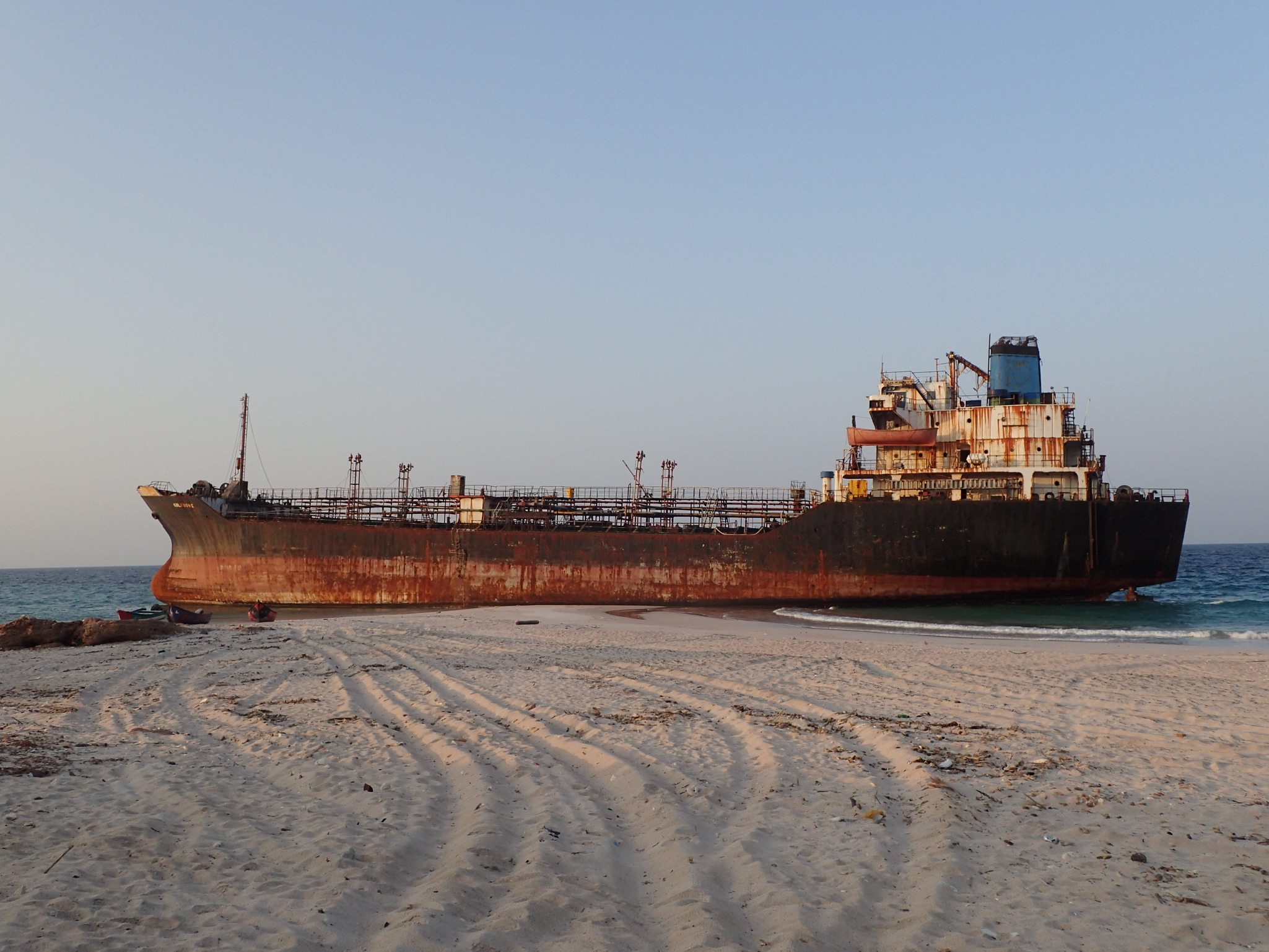 As usual I had no idea what to expect which in this instance was excellent because apparently we never stuck to the itinerary. The ‘capital’ Hadiboh, is a collection of rubble, shops, rubbish, and mosques, with the mountains rising up behind the town and the crystal waters of the Arabian Sea ahead. The town is empty during the day, partly due to the heat but mostly because of Ramadan. As soon as fast is broken at sunset the whole town bursts into life, workshops and stores spill out onto the streets, cars queue from the one petrol station, volleyball matches spring up in the middle of the road. Yes volleyball, they love it here and is played by all age’s day and night. I don’t think I saw a football kicked. Along the coastal road, huge sand dunes can be seen sweeping up the side of the mountains, and stunning beaches, most deserted, are nearly as common as goats on the island. As with many Arabic countries, elaborate walls have been built in the middle of nowhere that neither enclose nor protect anything in particular and have already begun falling into disrepair. Driving up into the mountains delivers you on top of a large plateau that stretches out for as far as the eye can see. A few villages, trees, bushes, and goats can be found here, but otherwise it’s a land of rock. This is strange because Socotra is renowned for its flora and fauna with 37% of it found nowhere else on earth. Great ravines are carved out of the plateau that lead down to the coast offering breath-taking views, incredible hiking, and blissful escape. It’s hot, blistering hot, higher up but especially so on the coast where all I wanted to do was enjoy the ocean and the beach, but all the sun wanted to do was turn me into a melanoma awareness campaign. We visited a coral reef and went snorkelling where we could see all the usual bobbins associated with such places and I was lucky enough to see a turtle. I was smart, keeping my t-shirt on knowing my back would burn to a crisp otherwise. The very next day I jumped in for a leisurely splash around, top off, too lazy to put sun cream on my chest which became barbequed within 10 minutes. Not far from the main port there is a grounded gas tanker which has started to decay in the tropical waters, a sure warning of what will become of me if I don’t start taking the sun here a little more seriously. Yet more so, the ship symbolises an island that has been forgotten and left behind by the rest of the world, and like all great hidden gems only recently noticed for strategic importance or a source of income by outsiders. The scrap between modernisation and protection is only just beginning for this incredible island.