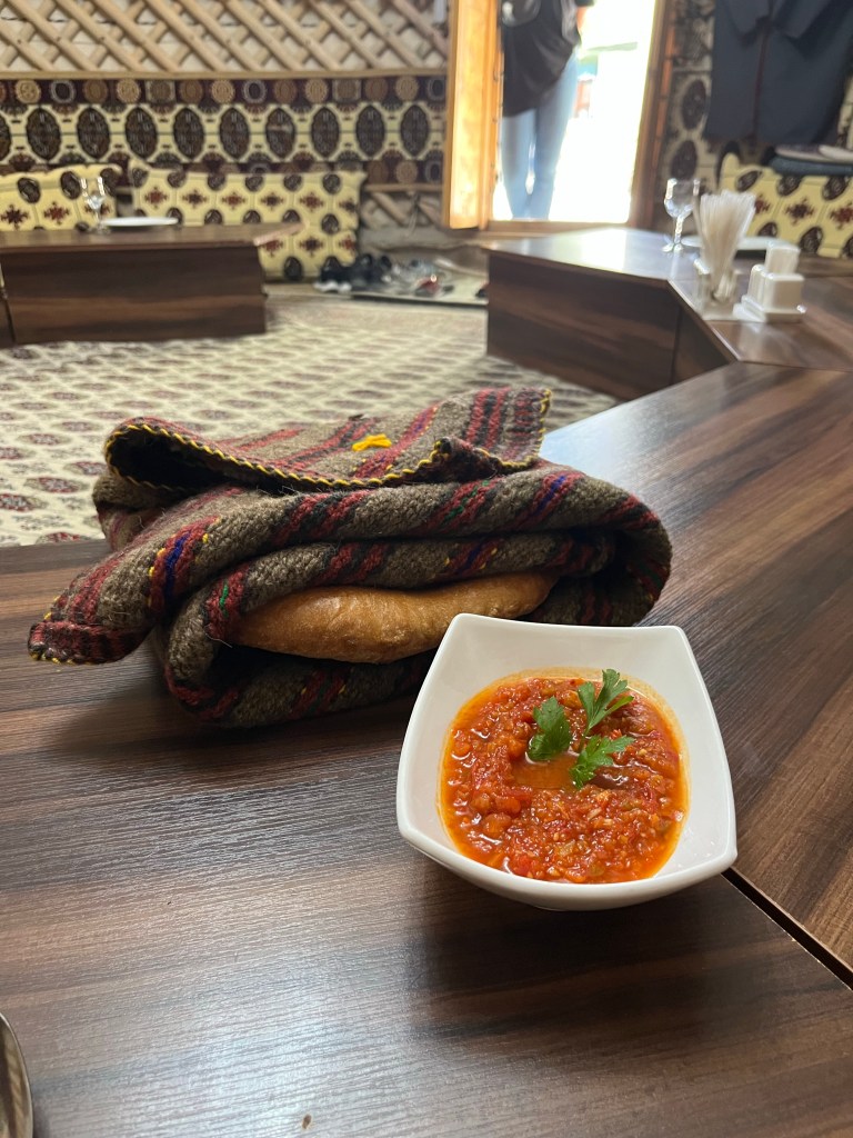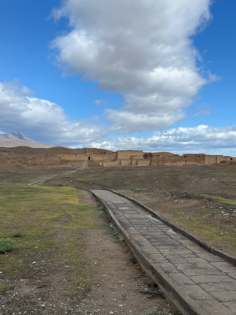 The following day turned out to be jolly wonderful. It started at the earthquake and Second World War memorial which appeared to be miles out of town but in a spectacular location in the shadow of the mountain range that separates Turkmenistan from Iran, just 90 minutes’ drive away. It was huge, made of polished marble, and empty except for the two ceremonial guards, a soldier ensuring we didn’t take photos of them, and a solitary man on his mobile phone quite literally standing in the shadows at a distance. A small group of school children came and left but otherwise we were alone to explore the vast memorial complex. The next stop, Nisa, was a pleasant surprise. A UNESCO World Heritage site believed to have been founded over 2,000 years ago, the town and its surrounding walls are little more than ruins but fascinating nonetheless and made a change from the modern-day grandeur. It was of course empty apart from a man on the gate and another man on his phone. We had to pay to take photos at a ticket office further back down the road but from what I could tell there was no way of telling who had paid, who hadn’t, and how they would check.