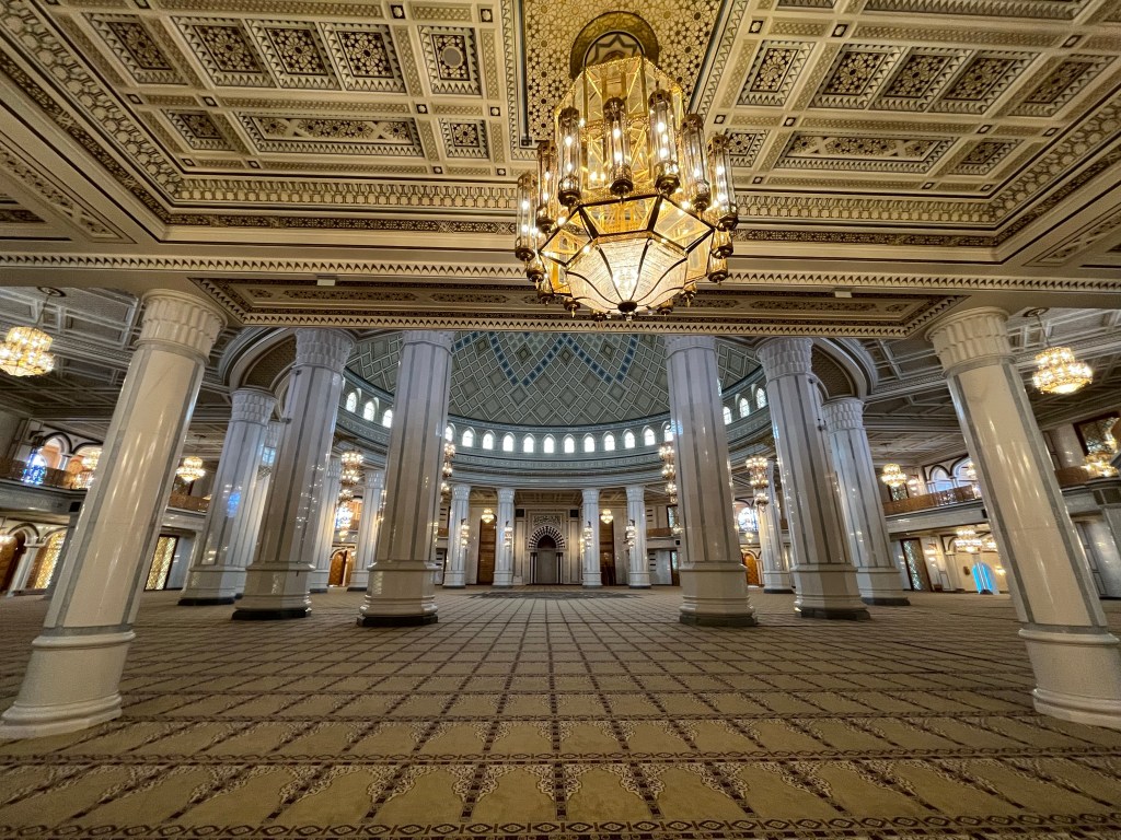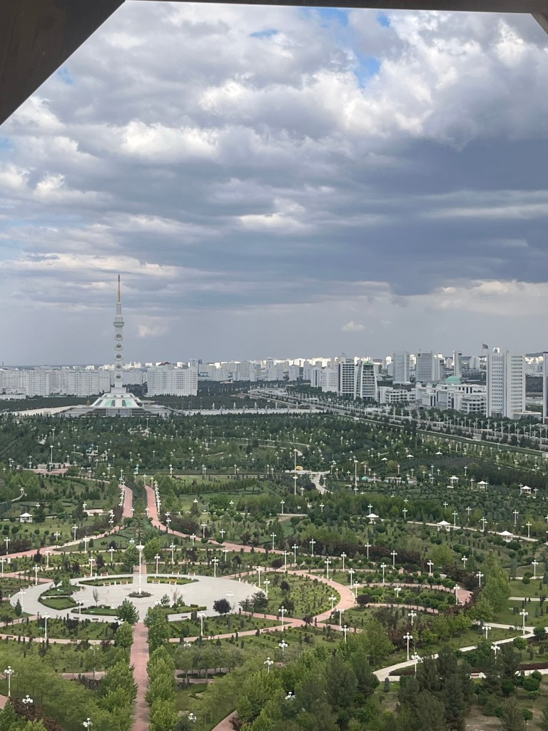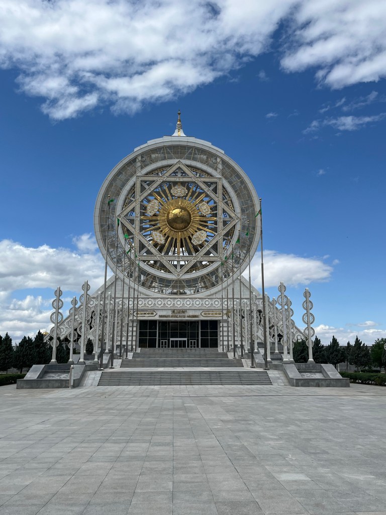 The day continued on to one of the biggest mosques in the world with a capacity for 10,000 worshippers, built at a cost believed to be around one billion US dollars, built by the French, and done so in name of the first president after independence. It was built in his village several miles out of the city and as a result it was empty except for one man on his telephone (no joke, although on this occasion I genuinely believe he was there to protect the mosque from any misdemeanours). Next to the mosque was the president’s mausoleum, made of gold and solid marble. There he lay along with his mother, father and two brothers. It is obviously unnecessary but if it helps, his story was a little sad. His father died in WW2 and a few years later his brothers and mother were killed in the earthquake. The president-to-be married well to a Russian which led him to power as the first president of an independent Turkmenistan. A few colossal monuments marking the country’s neutrality and its independence took us up to lunch. The sun had replaced the morning rain and despite all the oddities we had seen or made up in our heads we sat down content with the morning’s activities. There was one final place I was keen to see, one place I had randomly heard on NZ radio years ago, the largest indoor Ferris wheel in the world. What does that even look like? I imagined a huge Ferris wheel in a huge shopping centre, but I couldn’t have been more wrong. Once again, a drive to nowhere delivered us to our destination and revealed a Ferris wheel as expected, but one that was simply in a case. It made no sense whatsoever, like building a conservatory and then lining it with a brick wall. It made no difference to me, the strange feeling of excitement bubbled within and I marched inside to grab my ticket and join the queue. It was empty, the Ferris wheel turned off. It didn’t matter, a lone cleaner sent us through the arcades and towards another solitary person who directed us into a lift, the doors closing as we realised our tour leader had stayed behind and looked back at us with a suspicious glint in her eye. We were committed, this was it, jail, or a ride on a Ferris wheel. Unsurprisingly it was the latter, we hopped aboard and the nice wee chappy fired up the world’s largest, most pointless, underused Ferris wheel, and boy was it good fun. I think the definition of ‘indoor’ has been a little stretched on this occasion but in between all the garb that gave it such a title there was actually a half decent view to be had. It was a delightful whacky end to a delightful wacky day.