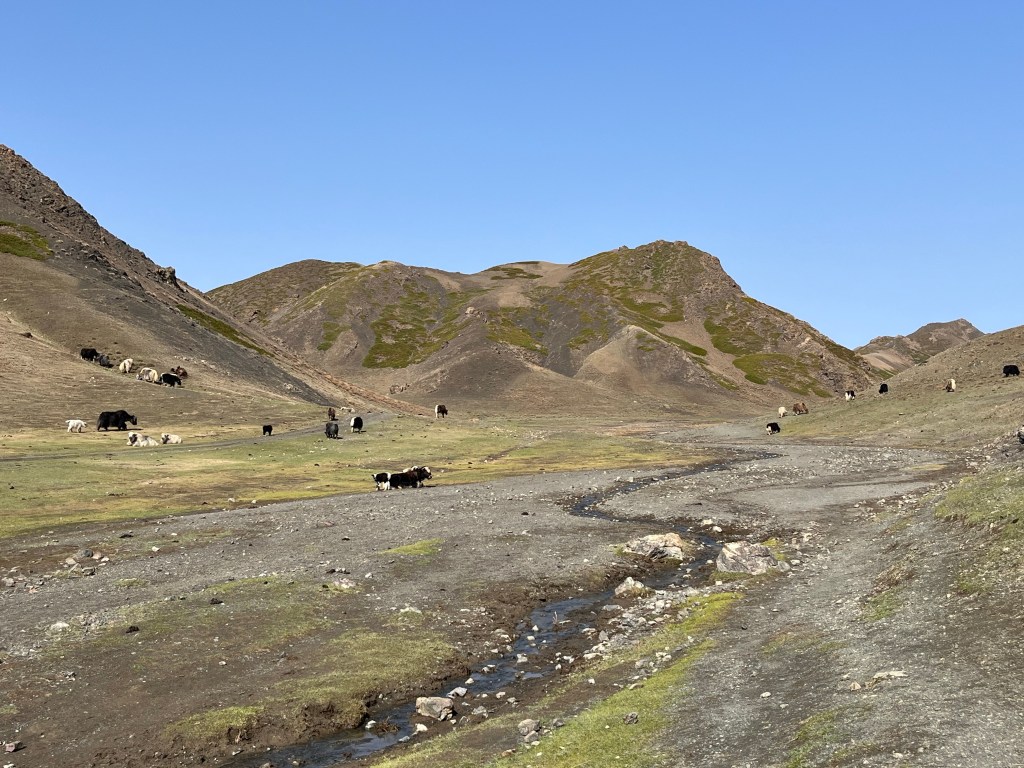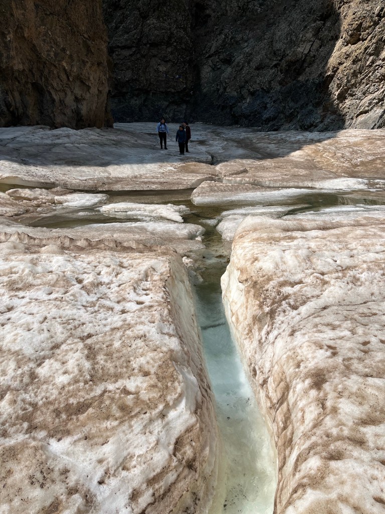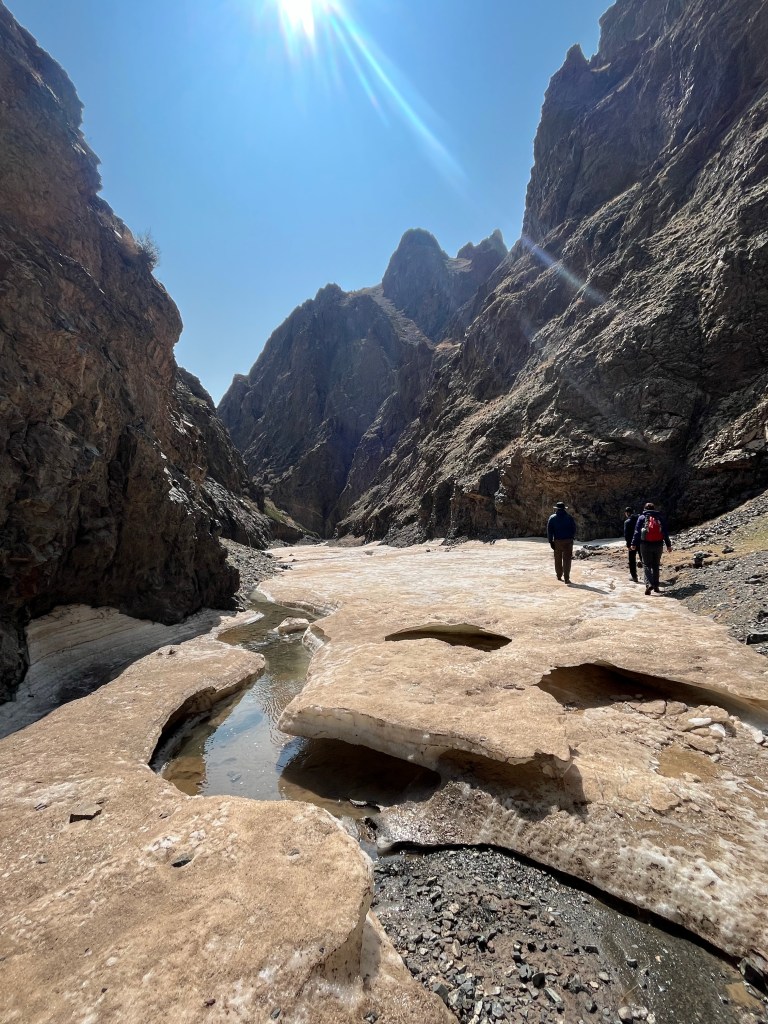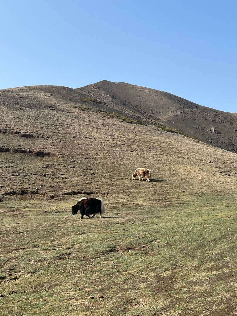 The Gobi is difficult to describe. It was flat, but before long we had driven into the feet of the Gurvan Saikan Mountains and found ourselves camping up on a windy bit of rock that overlooked a large dry riverbed that ran down into the expanse of nothingness below. If we hadn’t have just driven through it, one would be forgiven that the view below looked more like that of a calm ocean than a baren desert. The mountain range didn’t break the 3,000-metre barrier yet that was no excuse not to experience another little surprise, ice. We set out on a hike through the Yolyn Am gorge under clear blue skies that finally revealed themselves after a few cloudy and wet days and inspired a fightback against the niggling cold that hadn’t finished bothering me yet. The very start of the walk was most exciting as we stumbled upon a herd of yaks, the first we had seen. They are simply cows with long fluffy coats but having never seen them before I found it quite novel and dare I say, a scene I expected to see in Mongolia. In the valley grass had begun to grow and the yaks were giving birth; it was all very springlike until we delved deeper and deeper into the gorge. We were warned to expect a little ice, but I hadn’t really prepared mentally or physically for what could almost be called a glacier. It wasn’t, but when it comes to hiking, I see no difference in walking on a glacier, and walking on a frozen river running through a gorge. The river was barely a stream, but it cut its way over and under the ice creating magnificent formations like mini versions of the great lakes and rivers that are created in Greenland every year. We would sometimes slip or put a foot through a particularly weak piece of ice but ultimately we could always find a way to keep exploring further down the gorge. An hour later the stone walls began to open up again, yaks and grass reappeared, and the heat of the sun encouraged us to keep walking despite knowing we had to turn around at some point and scramble back up the frozen riverbed. Luckily when the time came, the sun had melted the ice at quite a terrifying rate that made hiking back much easier but a little more precarious. The icy water looked delicious and I took the opportunity to fill my water bottle as my travel companions looked at me inquisitively. They were worried I would die due to the copious amounts of animal crap lying at the top of the gorge where we first met our yak friends. I reassured them that my bottle had a filter and besides, the fast-flowing water at the lowest reaches was surely fresh ice melt from that day. Surely? The further up the gorge I progressed the more poo I saw by the side of the river and on the ice, I started to tremble, maybe I was already sick? I’d look a right dick if I started gushing from both ends now. This trail of thought continued for two days as I refused to tip the water away and drank the lot in the ultimate test as to whether my water bottle works. So far it would appear that I survived, and the bottle has once more passed with flying colours. Then again, the water probably was super fresh ice melt and cleaner than that from a London tap.