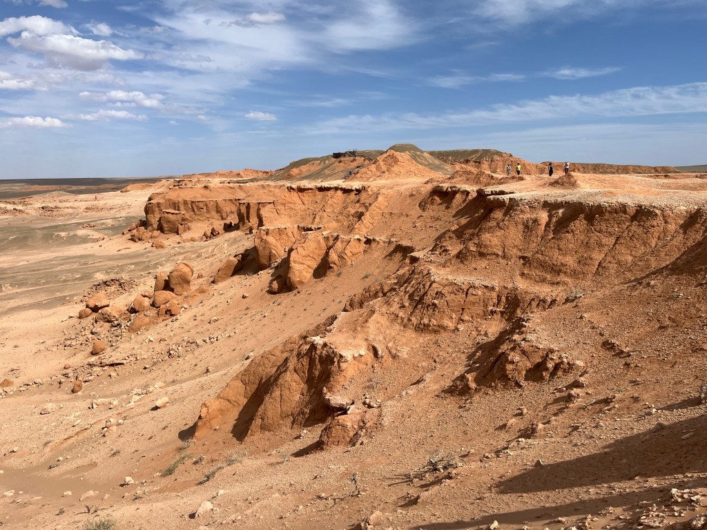 From the sand dunes we spent almost a day driving through a vast expanse of emptiness until we almost drove off the edge of a cliff. The cliff in question was part of the Flaming Cliffs, a beautiful bit of geology that appears to split a desert plain in two, separating them in altitude by several hundred metres. They are worthy of mention for that simple fact, however they are famous for being the first place in the world where dinosaur eggs were discovered during an archaeological dig in search for the origin of humans back in the 1920s. Turns out humans originated on a completely different continent, but as it was an American expedition and they discovered heaps of dinosaur eggs and fossils instead, we’ll let them off this time. We returned to the Flaming Cliffs for sunset to experience their namesake, but it wasn’t half as spectacular as watching a group Gen Zedders running around attempting to fill colourful plastic bags with air so that they could use them as somewhere comfy to sit and to provide a colourful picture. Apparently it’s a thing, and I admit I’m a little jealous I’m no longer travelling at their age. I therefore allowed myself to enjoy the daftness of it all instead of falling into the hideous trap of thinking they were complete idiots too lazy to stand and enjoy the beautiful environment I assumed they had come to see. Acceptance is a wonderful thing.
