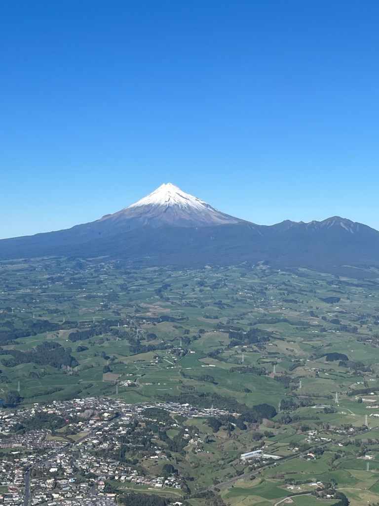 I had spent my first night in NZ in an airport hotel that served its purpose before having to catch an internal flight. It wasn’t until I was reminded a few days later that the very same hotel was used for quarantine during the pandemic where upon I became filled with sympathy for the poor bastards that had to spend 14 days in such cramped, plasticy rooms; I was ready to leave after nine hours. The flight from Auckland down to New Plymouth lasts for no longer than 40 minutes and is one of my favourite flights on the planet offering stunning views of the west coast of the north island. Sat in a little prop plane that seats maybe 50 people I realised I was getting anxious for some reason as the plane climbed up to cruising altitude. It then dawned on me that as often as not when I board prop planes, I usually end up jumping out of them, and my brain was mentally preparing me for such an occasion. Luckily a cookie and a glass of water shattered any such anxieties and before I knew it the plane was touching down with the beautiful Mount Taranaki out in full bloom and the season’s first snowfall capping the mighty volcano.