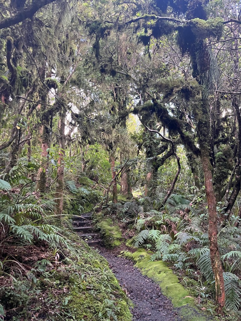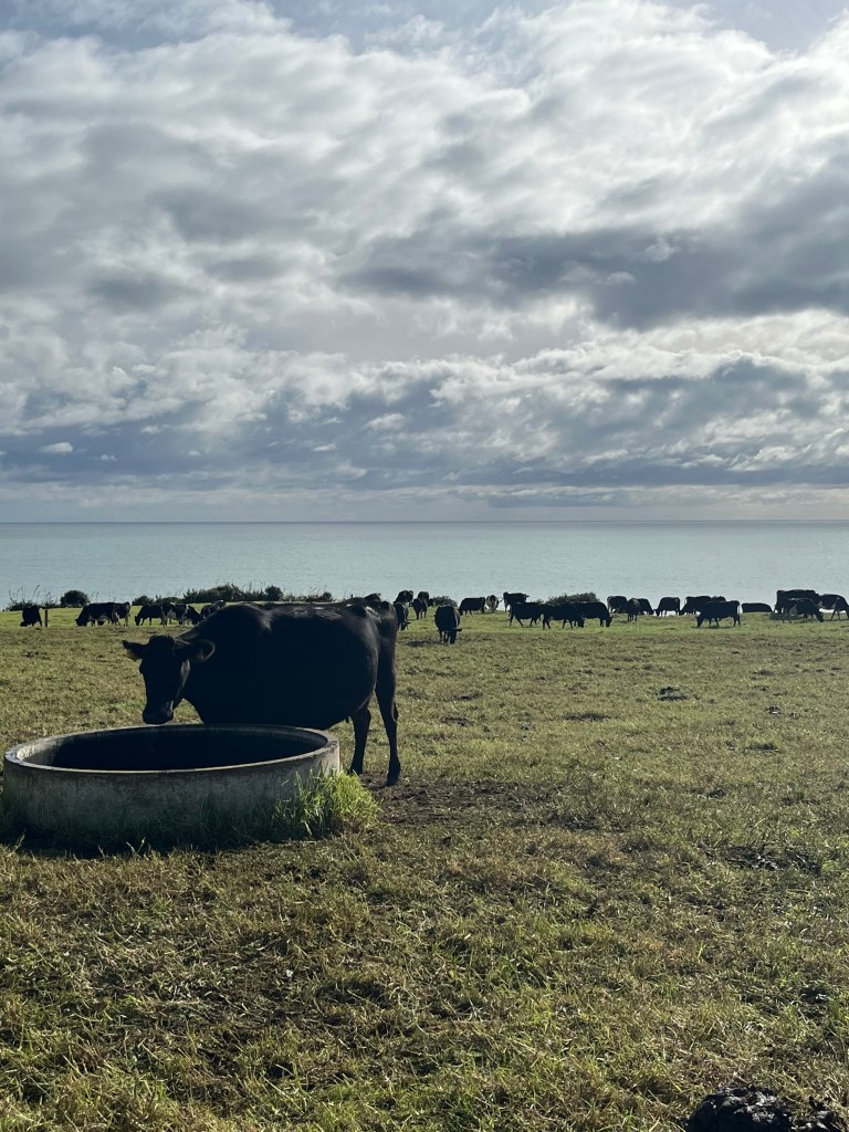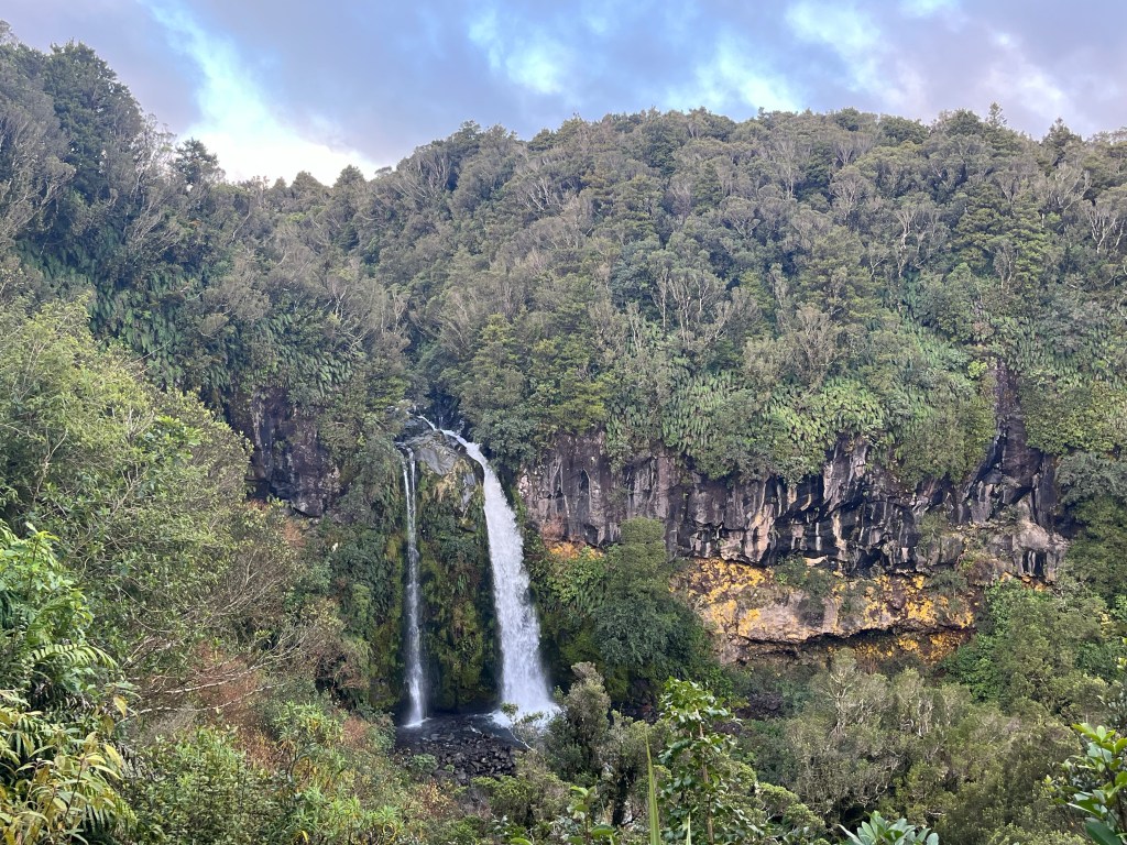 In between my tiny contributions to NZ dairy farming, I took myself off on a couple of local walks as strangely, despite living in Taranaki for nine months and visiting on numerous occasions I have actually explored rather little of the area. My first outing took me down to the local town of Opunake, famed for a bit of surfing, a lovely beach or two, fishing, and a delightful café called Sugar Juice. For a small country town it could easily have fallen into the abyss although it appears to be doing rather well for itself, so much so, that to prevent itself from becoming too cosmopolitan an international visitor like myself will find it impossible to part with any cash as the card machines and the one ATM in town all reject foreign cards. All but one. The pub and its bottle shop happily took anyone’s money. But I didn’t need money to take part in the town’s seven-kilometre circular walk and I set off in earnest taking in beautiful views of the coast before turning inland to walk behind the town through dairy pasture dominated by Mount Taranaki in the background. A pie, sausage roll, and a can of coke for lunch at the local dairy (corner shop) completed a jolly pleasant walk, one that could only have been improved if Sugar Juice wasn’t closed on Mondays. With time still left in the day, I drove on up the mountain to Dawson Falls. There may have been time, but fuel I had less of with the red light coming on earlier than expected and the predicted mileage plummeting as I climbed up the final few kilometres. I parked with only 20 kilometres of range left for a 25-kilometre trip home and decided to worry about it later. Assuming a good one hour walk, I instead had it knocked out in half the time although it was no less delightful. The waterfall itself is relatively standard but the park it resides in is a dense mesh of old-growth forest; damp, murky, moss-laden, dinosaur hiding, and unique in today’s world. The fact the park is surrounded by one of the highest concentrations of dairy farms in the world makes for an even greater contrast and surprise when driving to it. For me, the greatest surprise of all was finding the car’s range shoot upwards as I rolled back down the mountain and the car bravely delivering me back to the farm on what I like to imagine nothing more than fumes.