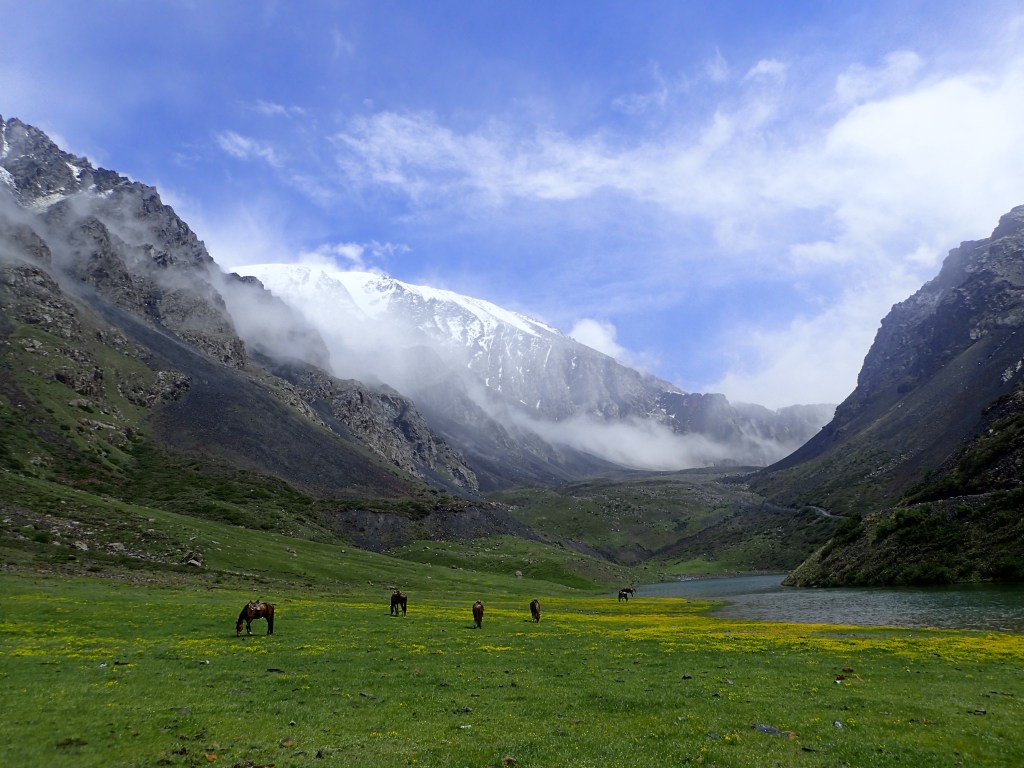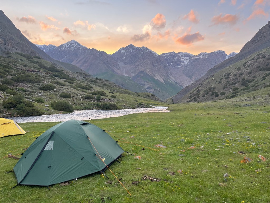 It’s 8.15pm at the end of day four of a six-day trek with 75 kilometres knocked out so far. I’ve just finished tidying up the latest photos and I’m thinking it’s time for bed. I grab my water bottle and head out of the tent to go fill it from the river a few metres away and then have a final pee for the day, but I immediately find myself back in my tent scurrying around looking for the camera. Outside, the sky has cleared to reveal an orange glow framing the mountain peaks, it’s simply stunning, but that’s not all. Our pack horses are making a fuss, I turn to my left to see a herd of maybe 100 horses being mustered along the track where they begin to cross the river immediately opposite our camp. I stand there filming and as the first horses reach our side of the river they accelerate to a gallop skirting the edge of camp and charge past so close I can feel the ground vibrate causing me to realise how close I actually am. Four horsemen followed on behind. I’m standing lost for words. The last time I felt so emotional was watching Top Gun 2 when Maverick is looking into the bar while Rooster bashes out Great Balls of Fire. Kyrgyzstan has been continually breath-taking and getting to experience such an unscripted event during a stunning sunset up in the Tian Shan mountains is one of those rare moments in travel that I will hold on to for the rest of my life. I watched the four horsemen in complete awe and respect. There was me about to head to bed in my tent before the sun had set, popping a couple of Ibuprofens for my sprained/broken ankle, all excited to whip out the sleeping bag liner for an extra bit of warmth, and these guys passed by with the few things they needed to survive in the mountains rolled up and tied to the back of their saddle. A tough life no doubt, but one I’m a little envious of. The whole episode was a far cry from the week before as I prepared to board my flight from Auckland to Bishkek, the capital of Kyrgyzstan.