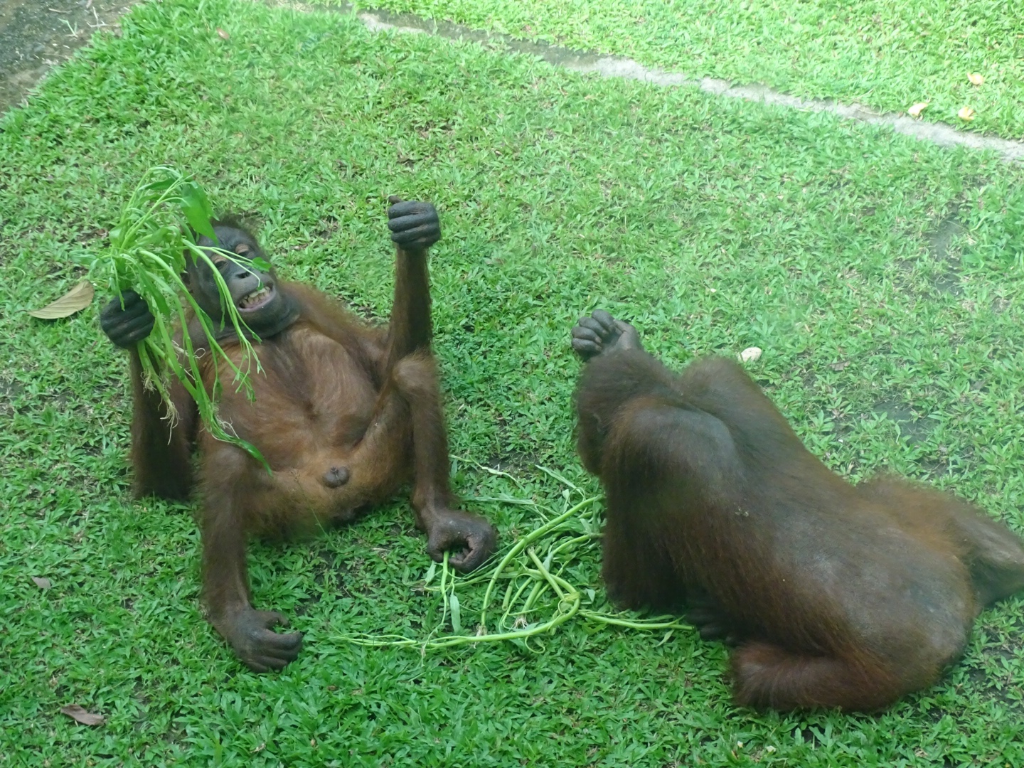 As if to reinforce my previous statement, the orangutan sanctuary we visited was a bit of a joke and the sun bear sanctuary next door even more so considering it was sponsored by one of the huge palm oil companies. I have little doubt that throwing a bit of money towards a sanctuary is far cheaper than being environmentally responsible and of course can be used as great publicity considering few care of the irony. The one benefit of the sun bear sanctuary is that I got to see some and by gum I loved every moment. They are the smallest available bear should you wish a bear for Christmas and tick every stereotypical cuddly bear image you can think of, complete with playful grin and innocent eyes. I could have watched them for hours. As for the orangutans, the sanctuary was largely open which allowed them to come and go which assists rehabilitation. We arrived for feeding time along with 200 other people only to see no orangutans. A few juveniles in the nursery made up for things a little although that was behind glass preventing even a decent picture. I think I just get angry about such places because we shouldn’t need them and we should be able to visit such animals freely in their natural habitat. Well, put me back in my box, because we saw just that the evening before leaving Borneo. We were off to see a flying squirrel which itself was more than impressive, one for the distance it can glide, and two for its impeccable timing at putting on a show, always around sunset as it heads out for the evening. On the way to this event we heard rustling in the trees next to a hotel and sure enough an orangutan and her youngster were rummaging around, lurching from one branch to another. More or less on an urban street, this was the last place we expected to see an orangutan but there they were, putting a smile on my face despite my best efforts to write off mankind.
