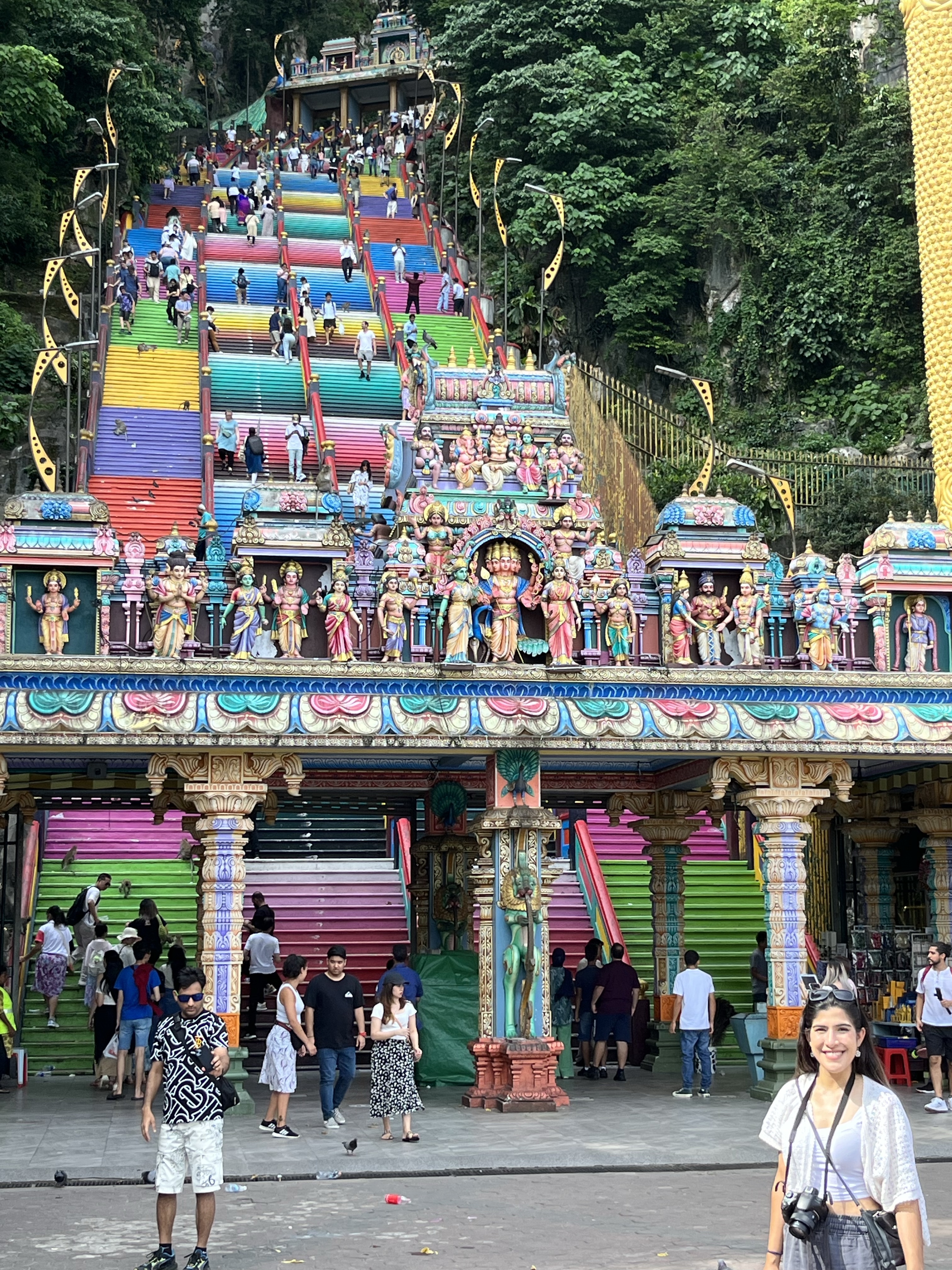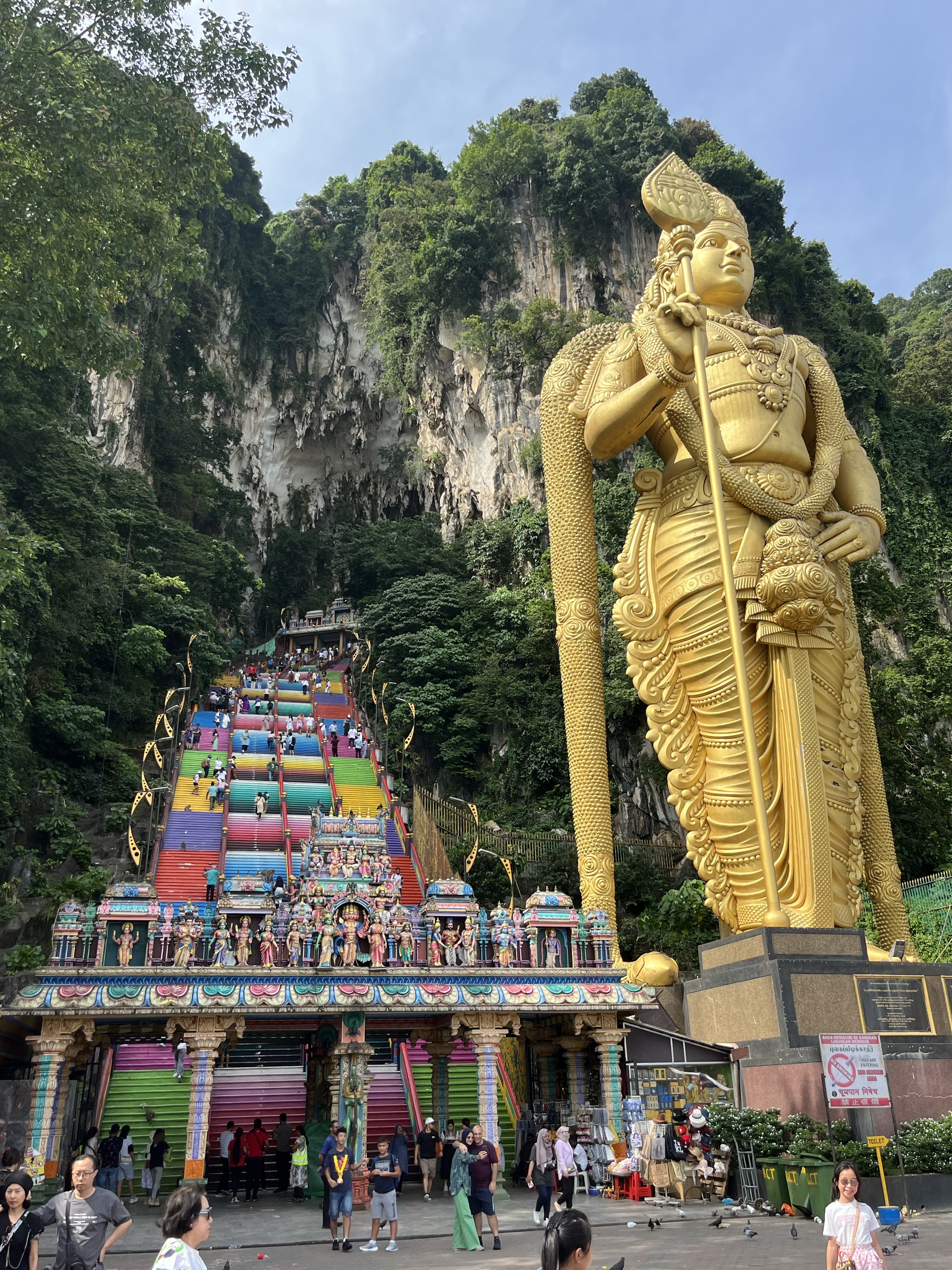 I don’t think we can be judged to harshly for our time spent in a major city and on the second day we made more of an effort despite having to catch a flight at 1.45am. We booked onto a private tour that took us to the houses of three great religions, Islam, Hinduism, and what I originally though was Buddhism. The latter was in fact a Chinese temple, rather beautiful, worth a visit, but worshipped Chinese Gods that looked remarkably like Buddha, in fact, I think it’s same same but different as one would expect from China. It also had great views of the world’s second tallest building. From here we headed down to the mosque, a place that made complete sense to me and a place of beauty as all mosques tend to be. There were also great views of the world’s second tallest building. From here we drove on to the Batu Caves complex full of Hindu shrines and a bloody great big gold statue of the Hindu god of war that guards a large and colourful staircase up to the caves. It’s one of the most popular Hindu shrines outside of India which explains why it was so like India. The temple and mosque beforehand were spotless, calm, and cared for. Batu Caves was a dump full of grime, trash, smells good and bad, and lots of bright colours to really throw the senses into complete meltdown as the brain tries to compute whether the scene is beautiful or wretched. There were monkeys everywhere much to the delight of visitors despite them eating plastic bottles and whatever rubbish was left lying around. I videoed a baby monkey eating a sweet wrapper to go into my archive of evidence in support of my pessimism towards humanity and when I finished and turned around to leave, I was met with a huge group of people all filming on their phones thinking it was simply an adorable scene. But I am no better. After a reasonably successful afternoon of sightseeing we headed back into the city for dinner and then to Kuala Lumper’s most famous landmark, the Petronas Towers. Once the tallest buildings in the world, now the tallest twin buildings in the world, they are a tenth the cost to go up than the Burj Khalifa in Dubai and therefore I just had to go. Never mind the fact the buildings are a shrine to the fossil fuel industry, surrounded by greenwashed advertising in the streets below, the upper decks boast what the company has done to help a small village in Africa, while a luxury shopping mall fills the lower floors. The whole experience felt filthy and not in a good way, as though I had propped up a malevolent regime with my £15 entrance fee, and so to cleanse myself we made our way to one of the bars in the luxury mall to have a pint of Guinness and a glass of French white wine sat next to a tank full of plump looking lobsters flown in from Australia. Unfortunately, all of this had served a purpose. It was finally 10pm and our taxi to the airport was waiting.