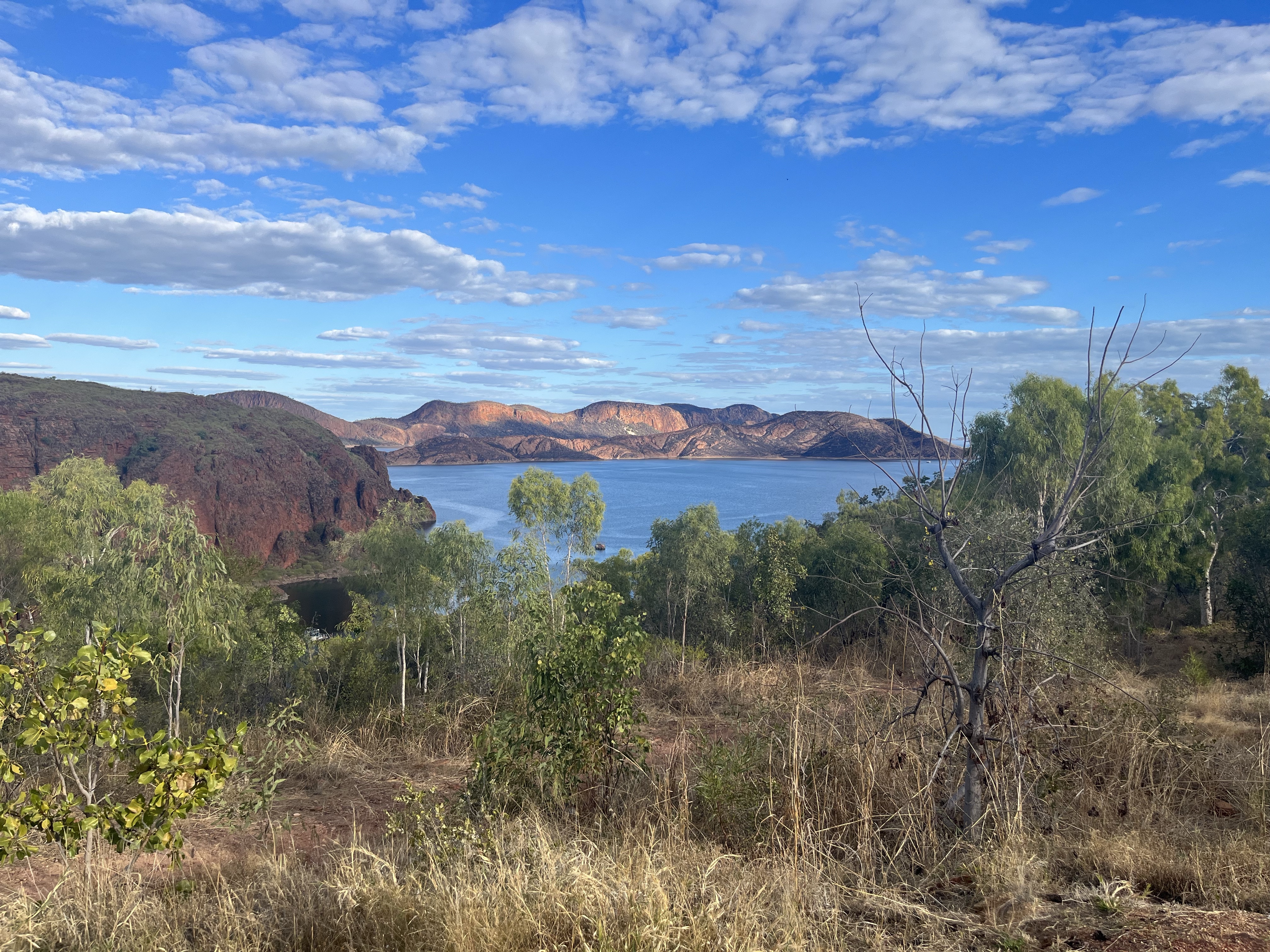 The wind moves in packs. It can be heard in the near distance yet the trees and bush in the immediate vicinity remain unmoved. Sometimes a gust bolts past near to one side of the tent but the opposing side remains eerily quiet. This was a feature throughout our time in the Kimberly and although I’m far from spiritual, I’m more than happy to concede that the wind here can conjure up such feelings. Lake Argyle however, here the wind was nothing less than brutal as both nights we camped there we endured terrifying winds that battered the tent for half the night. Everything sounds worse when inside a tent but the howling outside was enough to disrupt a good sleeper like myself. The lake is manmade, and wow do the locals like to make a song and dance about it. It’s the largest manmade lake in Australia (except for one other) with a volume of 11km3 and sits surrounded by beautiful red cliffs crawling with little rock wallabies and infested below with 20,000 crocodiles. It’s beautiful, but not as impressive as the homegrown tourists were making it out to be. The largest manmade lake in the world is in Zambia and holds a slightly greater 180km3 of water and 70,000 crocodiles. Lake Argyle was built to provide freshwater for agriculture and is currently massively underutilised servicing just 20,000 hectares as finding something that grows commercially in such a harsh environment has been a tad difficult. Nature 1 – Engineering 0. But don’t worry, the Chinese are moving in and intend to make use of the resource with cotton finally bred to survive against local pests and the possibility of producing green hydrogen. As for the humble tourist, well we went on a sunset cruise with a jolly wonderful chap bearing a striking resemblance to Uncle Albert from Only Fools and Horses, who kept us fully entertained for several hours before parking up and encouraging us to go for a swim as he threw cans of beer from the boat directly towards our faces as we worried about the risk of croc attacks.