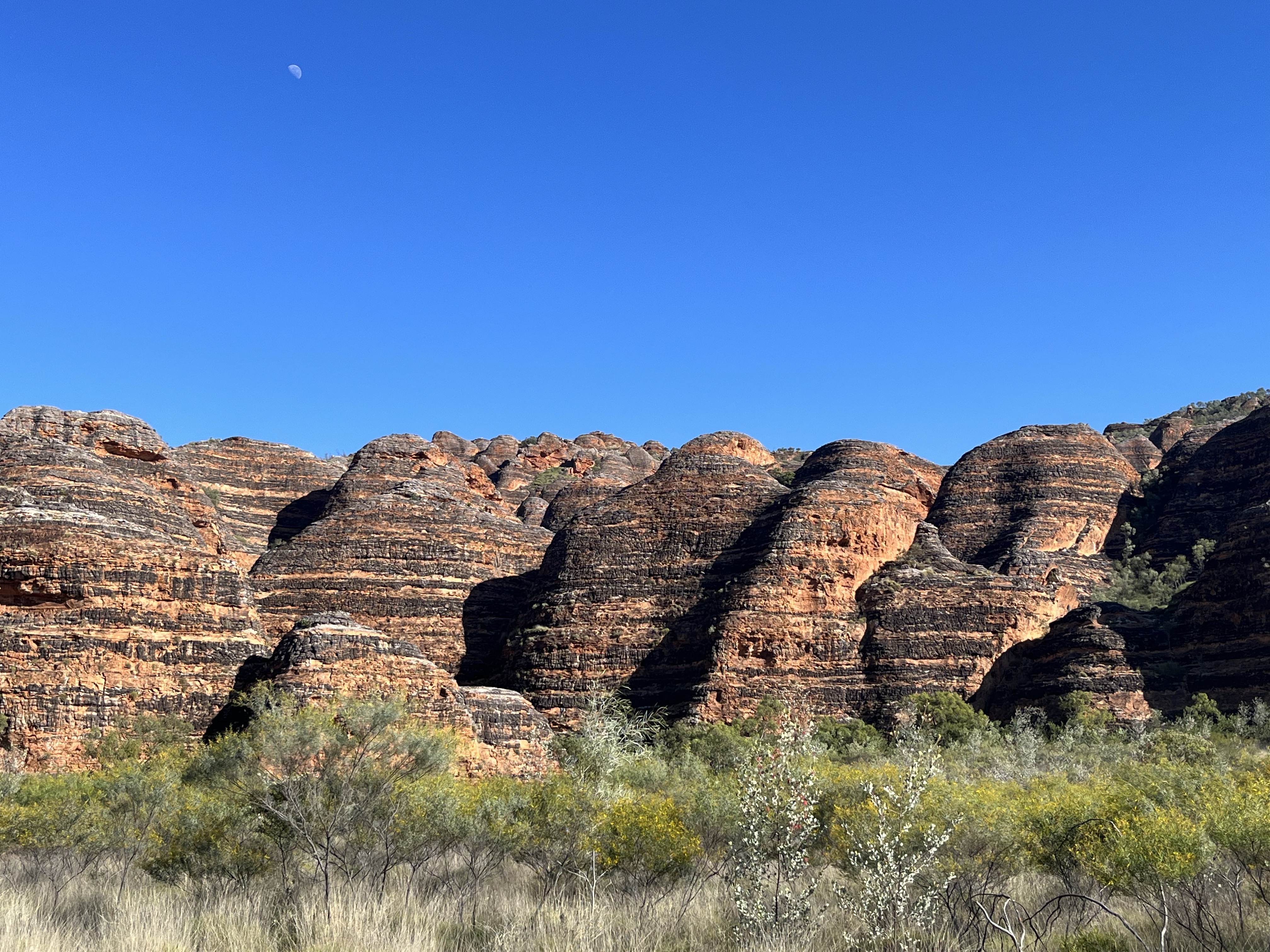 From Lake Argyle we made our way to the Bungle Bungles in Purnululu National Park. This is a region that had only been discovered in the 1980s and was immediately harnessed for its tourist potential. Obviously the locals, being the Aboriginals, had known the area for about 60,000 years but that’s beside the point. I usually try to steer away from such matters, but I found it interesting when our very ‘lefty’ guide kept referring to Aboriginals as ‘traditional landowners’. I can’t keep up, but from my studies over the past few years, the drive for more indigenous knowledge and thinking to be incorporated into areas such as climate change, land use, and biodiversity is centred around the concept of no one owning the land. Therefore, referring to aboriginals as landowners runs contrary to their traditional beliefs? In fairness, the official culture-washing line used by Qantas, Sydney Bridge Climb, and many other corporates use the word ‘custodians’ which, despite their intentions is a far more appropriate word I would argue. But less of me trying to sound like I have the answers, we need to move onto the cock fest. The drive into Purnululu National Park was on an atrocious non-paved road that eventually caused a front tyre on the truck to give up on life. This should have been a reasonably straight forward operation, especially considering the number of men (move aside ladies) queuing up to help. Annoyingly one nut appeared to be welded on and no amount of WD40 or bouncing on steel bars appeared to work. This of course caused a tsunami of speculation surrounding how we would get to the campsite, how we may survive such an ordeal, and an underlying feeling of passive-aggressive panic. It was another moment on this trip where I was more than happy to help but there was never going to be an opportunity to do so as a group of chaps had already taken control and claimed to know what they were doing, therefore better for me to grab a chair and enjoy the sunset as we had broken down in a particularly beautiful part of the Kimberly. Once the sun had lit the entire landscape a fiery orange, it set behind a ridge and almost immediately the sky began to fill with stars. The moon had been dominating every night at the start of the tour but as the nights wore on, the moon rose later thus giving more and more time to enjoy a glittering Milky Way overhead. Few sights in life are finer. Three hours after the tyre exploded the park ranger had found a steel bar sturdy enough to crack a stubborn nut, the tyre was changed, and we rocked up to what appeared to be a beautiful campsite that for once we had all to ourselves and not having to share with 1,000 caravans parked on top of each other. For somewhere so remote and sparsely populated every campsite was rammed with caravans and families and every swimmable hole had enough people to remove any sense of wilderness despite the millions of acres of apparent emptiness between everywhere.