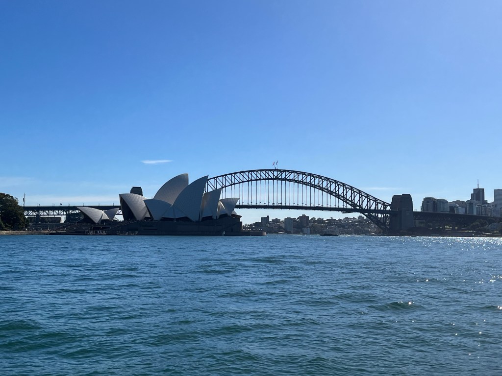 The view from the top of the Sydney Harbour Bridge is quite spectacular and so it should be after having to go through all the faff to get there. Breathalysers, the removal of everything except your pants, hankies and caps clipped to your overalls like a toddler, metal detectors, pat downs, training in how to go up and down steep steps, it feels like you are never going to get out onto the bridge. However, as soon as you do, even on the lower sections, it really is quite an exhilarating experience made even more enjoyable with an excellent guide full of fun and interesting stories, my favourite of which involved a flagpole. Australia is in the thick of trying to come to terms with the fact that there were people in the country long before the concept of Australia. One way of doing this has been to raise the Australian Aboriginal flag on the Sydney Harbour Bridge in place of the state flag and alongside the flag of Australia. The original plan was to have all three flags flying so that one didn’t have to be relegated but to erect a third flagpole on the top of the bridge was going to cost 25 million Australian dollars. The state flag was sacrificed.