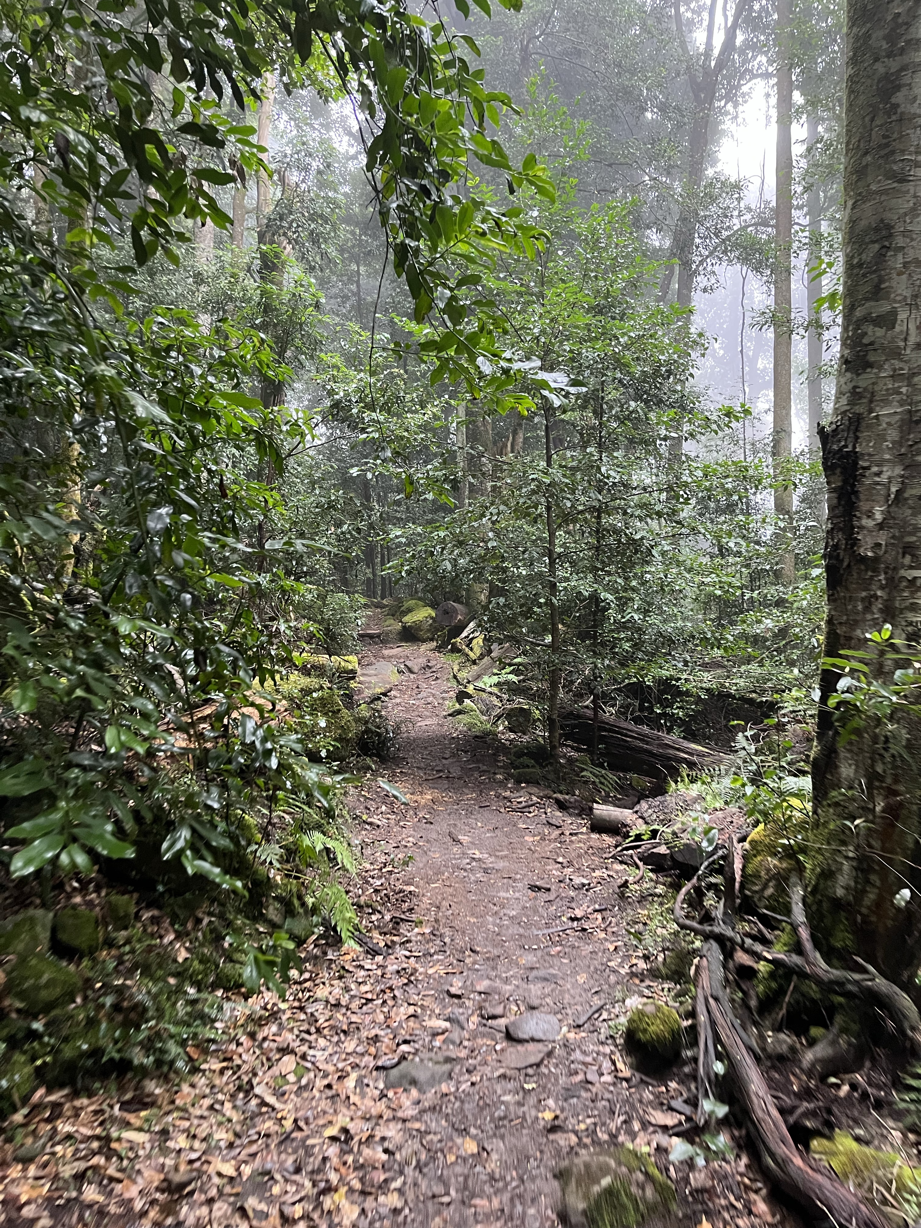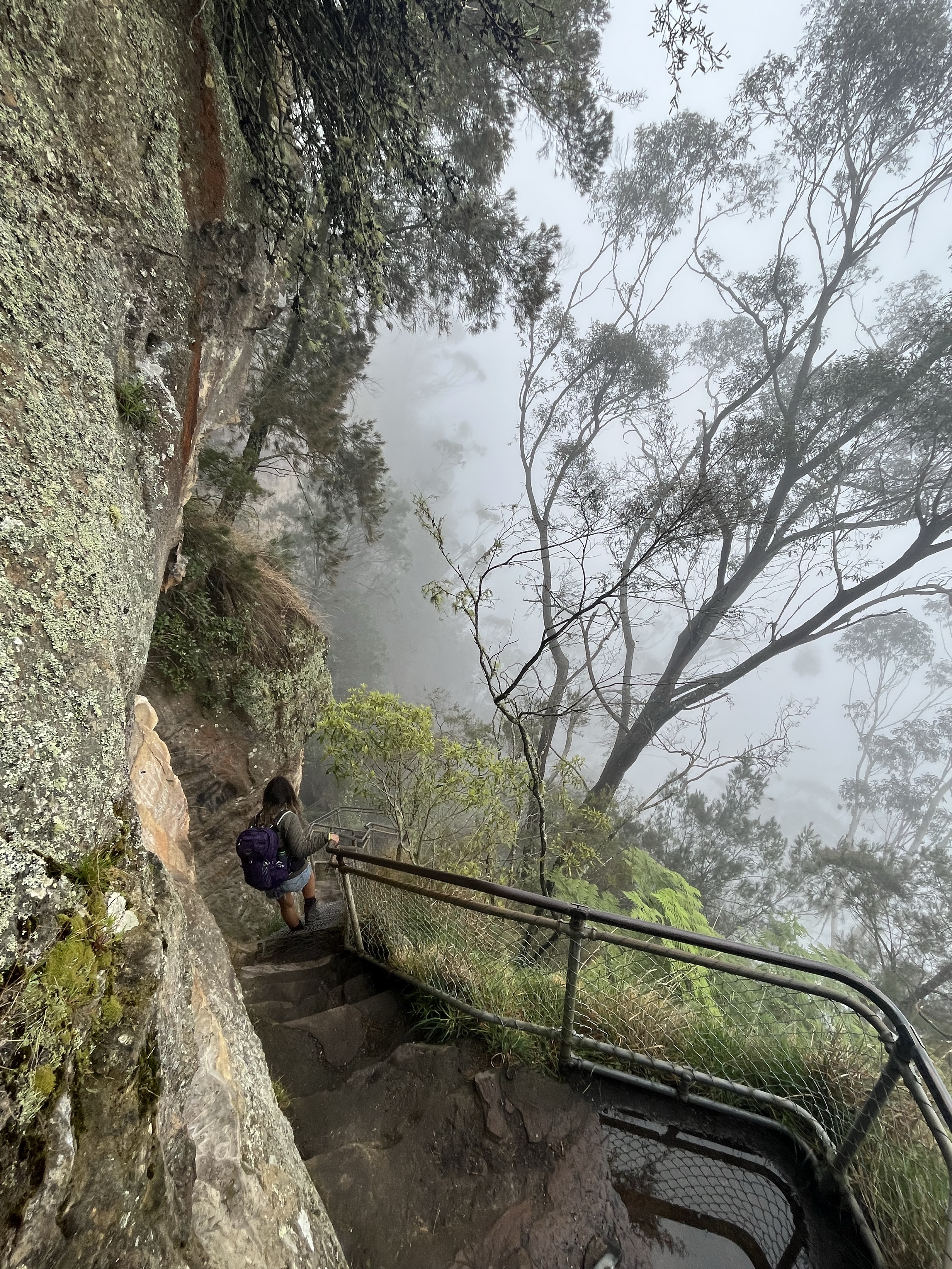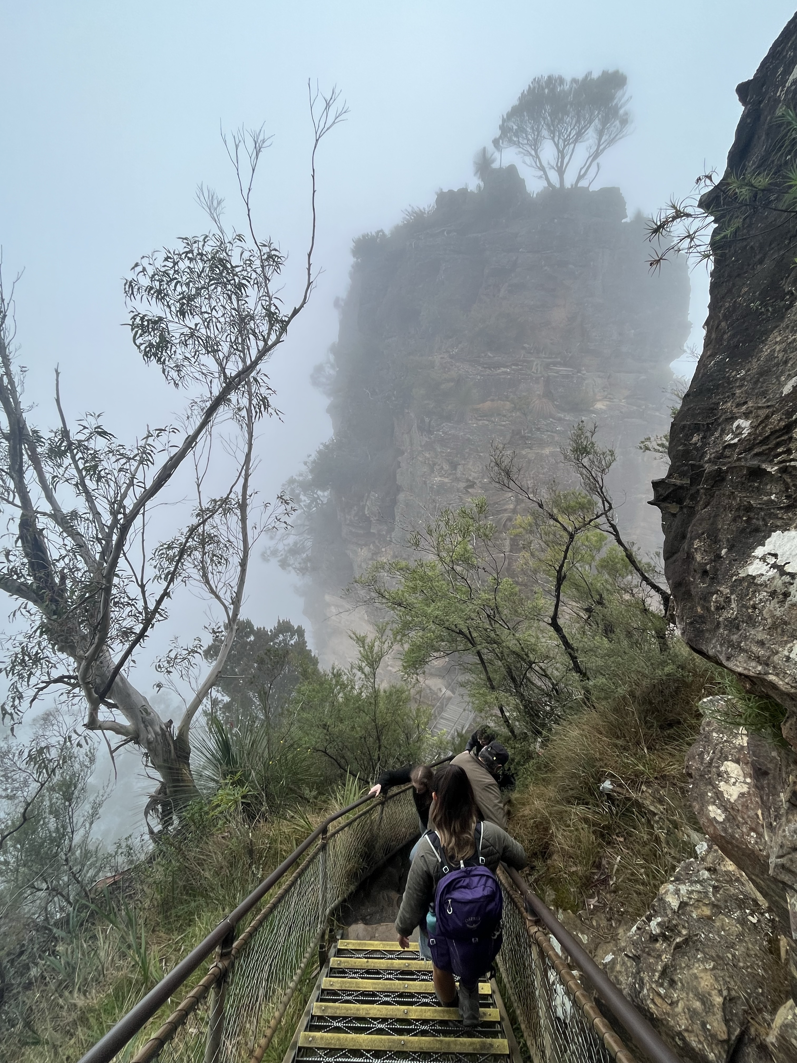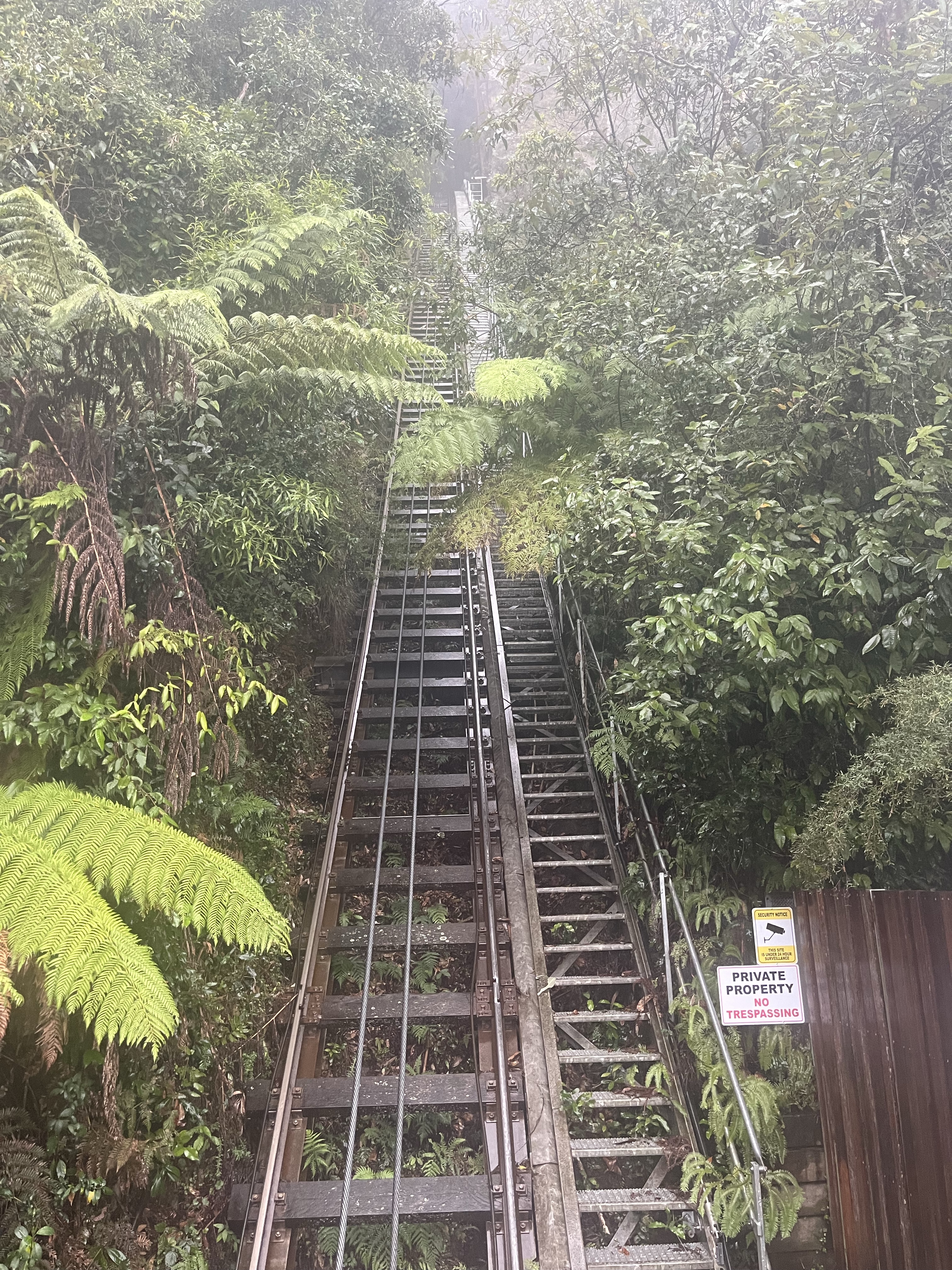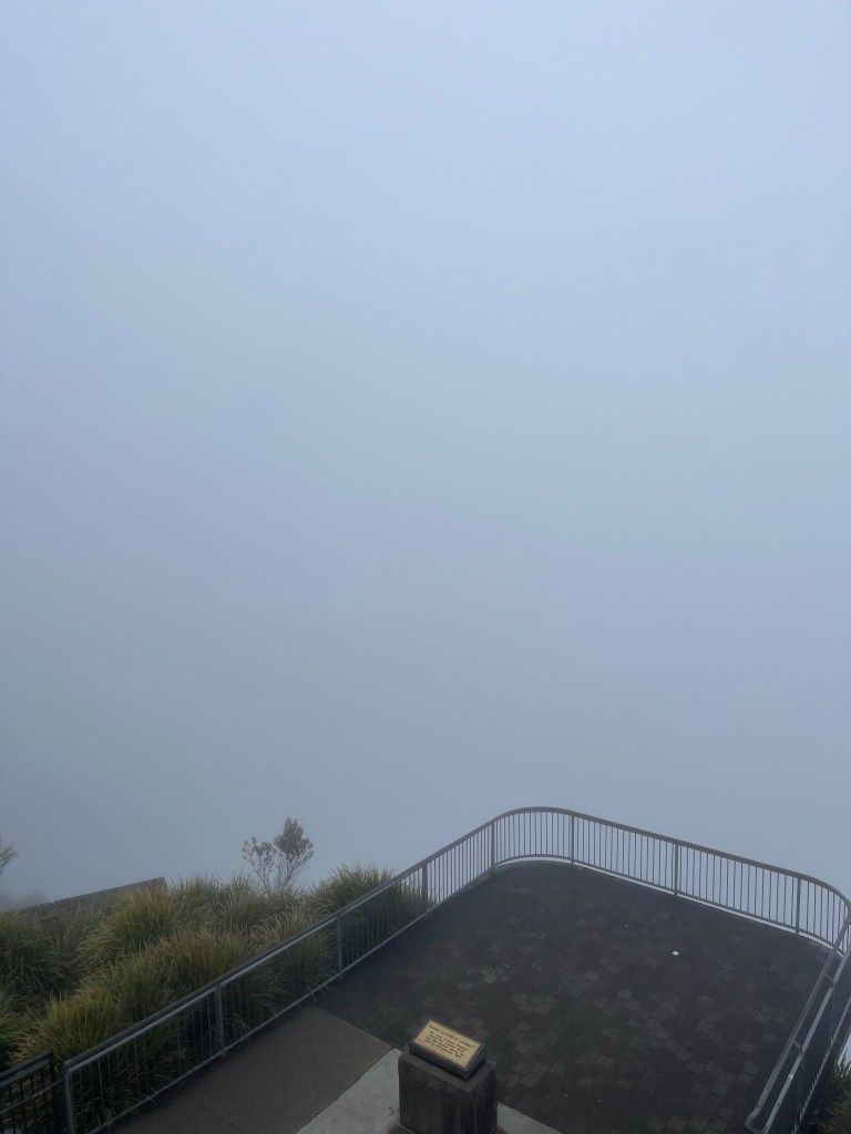 Our 12-hour trip to Brisbane had been a great success but it was business as usual the very next day getting up in good time and catching the train from Sydney to Katoomba two hours away up in the Blue Mountains. I wish we hadn’t bothered and had stayed in bed. Despite having to be back in the city for a social engagement at 7pm I was determined we could smash out two hikes amounting to around 10 kilometres that involved descending the Giant Stairway twice. We got off the train and walked at pace through the town which looked a shadow of the experience I can remember when I visited in 2008. The weather didn’t help but the town looked tired, rundown and exhausted, and felt more like a street in the China Town of a major city than a country tourist town in Australia. We arrived at the famed viewing point for the Three Sisters, but the rock formation and the epic views of a forested valley were nowhere to be seen thanks to fog so thick it was virtually impossible to see the safety barriers. Disappointed but undeterred we began hiking and made our first descent down the almost 1,000 steps of the Giant Stairway, a steep set of steps carved into the mountainside assisted by sections of metal platforms clinging to the side of the cliff that would usually offer vertigo inducing views before stepping foot onto the valley floor. At the bottom we turned left, through damp and moody forest before climbing a similar number of steps out of the valley, completing a loop, headed back down the Giant Stairway, turned right, got drenched, and then ripped off. The path leading out of the valley on this side was closed and so we either had to turn back or take the world’s steepest train which disappointingly said one-way tickets weren’t available. No bother, the weather was horrendous, and we hopped on the train expecting to pay a round-trip ticket at the top. Nope, we had to spend over $100 on tickets that included all the ‘rides’ the train operator had in the vicinity including several cable cars. We didn’t want cable cars as we had neither the time nor the inclination to be pushed around by hordes of excitable Asian tourists, plus there was nothing to see but thick fog. What bollocks. Despite a spectacular attempt at ruining our day we still managed to enjoy a damp picnic, walk 10 kilometres, and make it back to Sydney in time for a warm shower and attempt to look respectable for an evening with our new friends. This was a local Sydney couple we had met on the wine tour in Perth a few weeks before and they went out of their way to make sure we could get together in Sydney for a few drinks. No wasn’t an answer, thankfully. We were collected and taken to a morish rotating cocktail bar offering insane views of the city and scrumptious gin and tonics. For a second day in a row we were treated to exceptional hospitality that any Australian will unleash on anyone deemed slightly worthy.