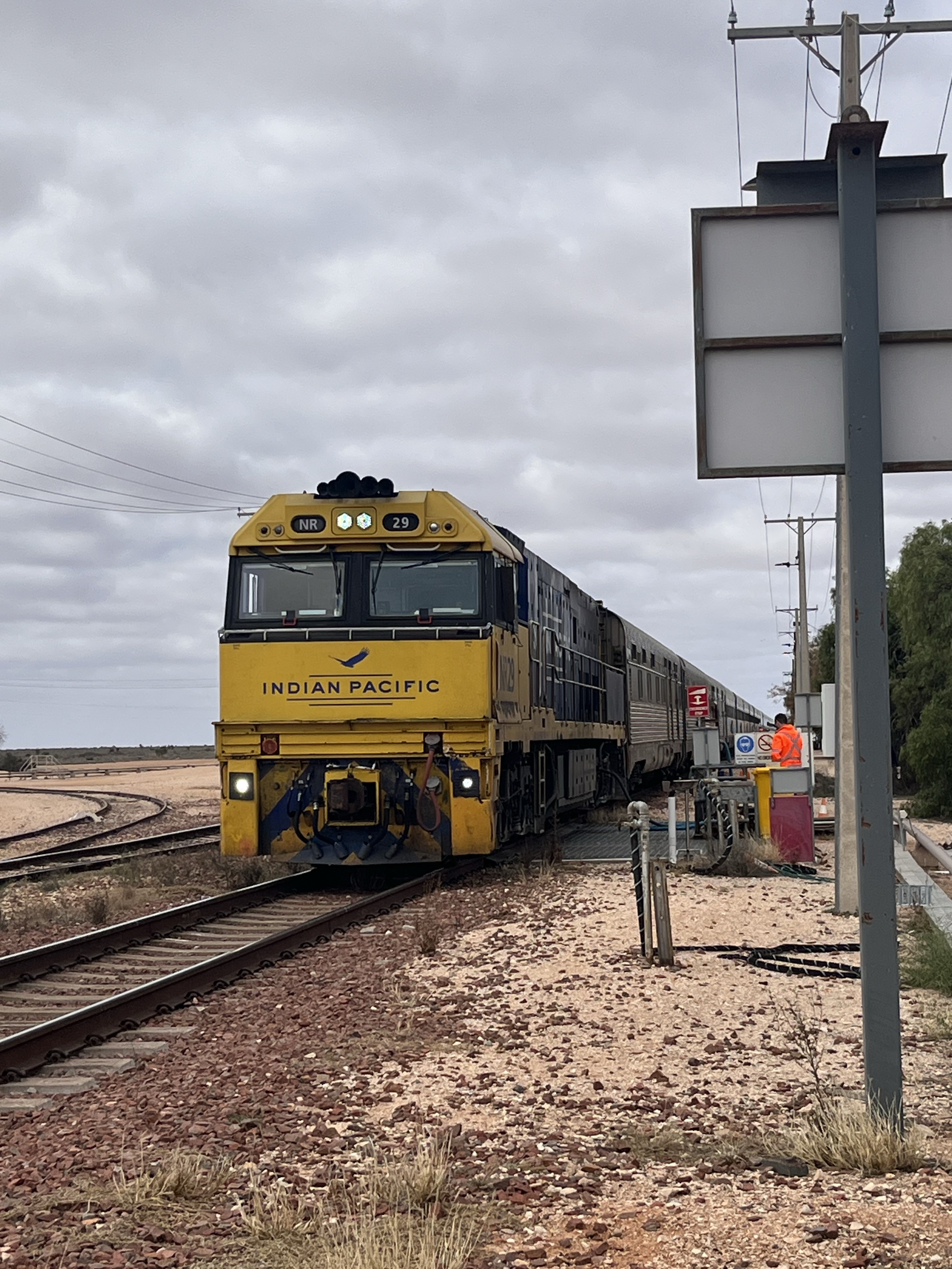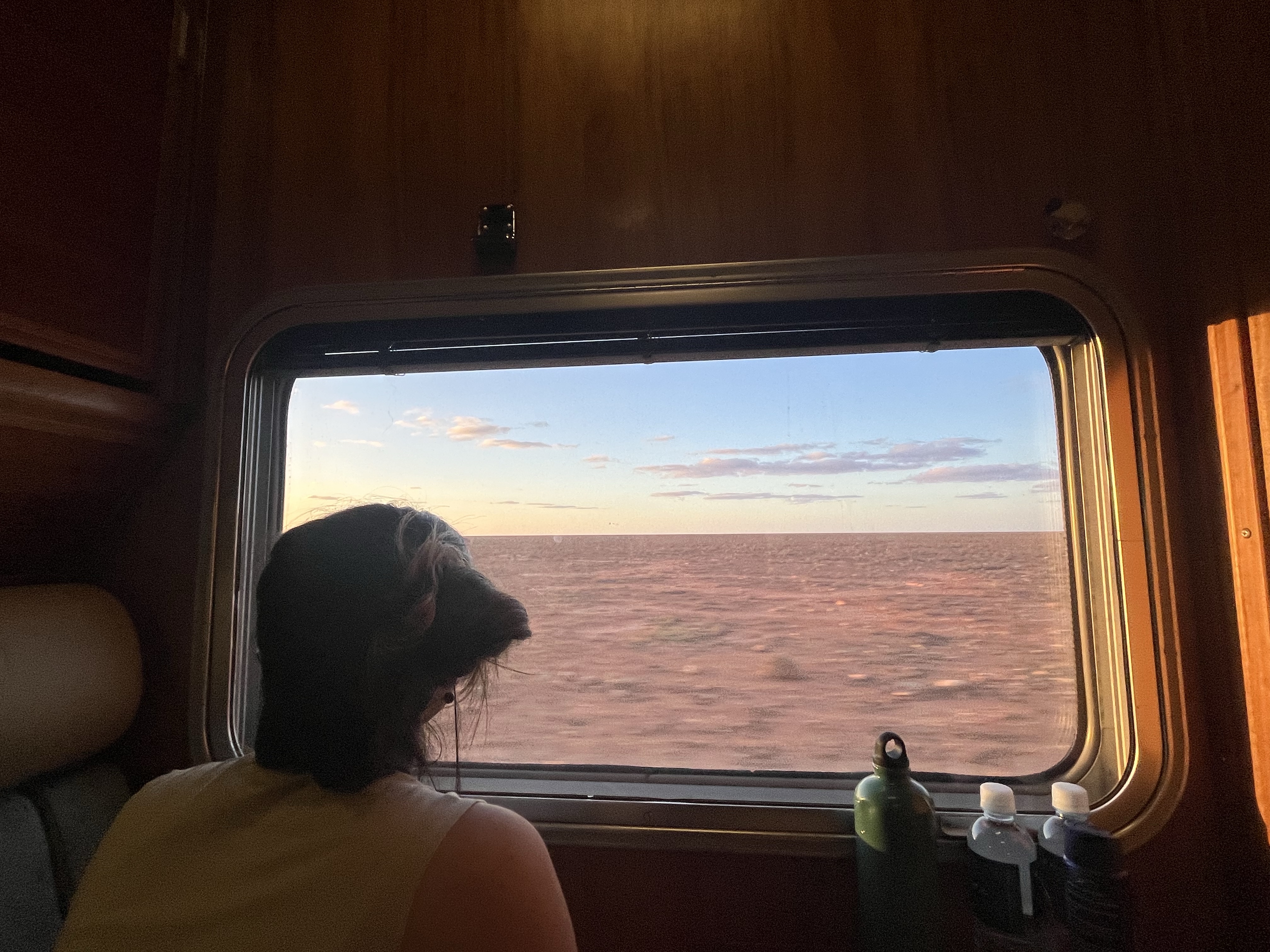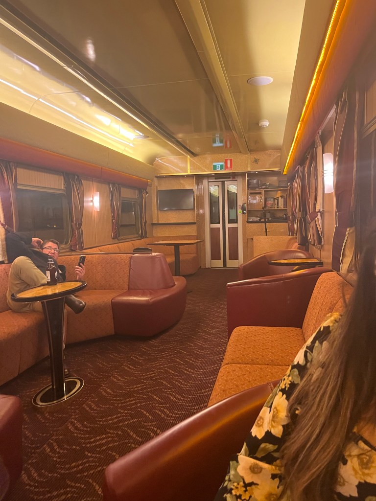 Three days after visiting the Blue Mountains we passed by again but this time under much finer conditions that enabled us to actually see them. For the first time in weeks we had nowhere to be and we could sit in comfort away from people, watching the setting sun as the train gradually picked up a bit of speed. The inevitable then arrived, dinner. We headed to the lounge car and learnt that the done thing was to grab a wine and sit and wait patiently for a nice chap to come and ask if we were ready for dinner who would then leads us to the dining car where we would be served a delicious three course meal. Surely we wouldn’t get to sit at our own table? No, we wouldn’t, and thus emerged the first issue of luxury train travel for me, socialising with strangers two to three times a day. Almost every meal presented a new couple, most of which were wonderful people but repeating the same conversation time and again just becomes bloody annoying. Lesson one, do train travel in groups of four so you can share a table together. Needless to say, we survived the first meal and as with apparently most of the diners, my doubts about never getting to sit down in a crowded lounge car soon disappeared. We duly took advantage of the space and the free-flowing wine and gin while attempting to watch the Lionesses beat Australia in the World Cup. I don’t know if this is a feature of luxury train travel but I never felt like I knew what was going on and where I needed to be and when. While attempting to eat and drink the value of my ticket on the very first night I was in no state to be told over the intercom at 9pm that our off-train excursion would begin at 6am the following morning. Not in a million years would I be getting up at this time to be guided around an empty outback town by a drag queen. This was supposed to be the easy leg of our journey. I continued with my wine and gin.