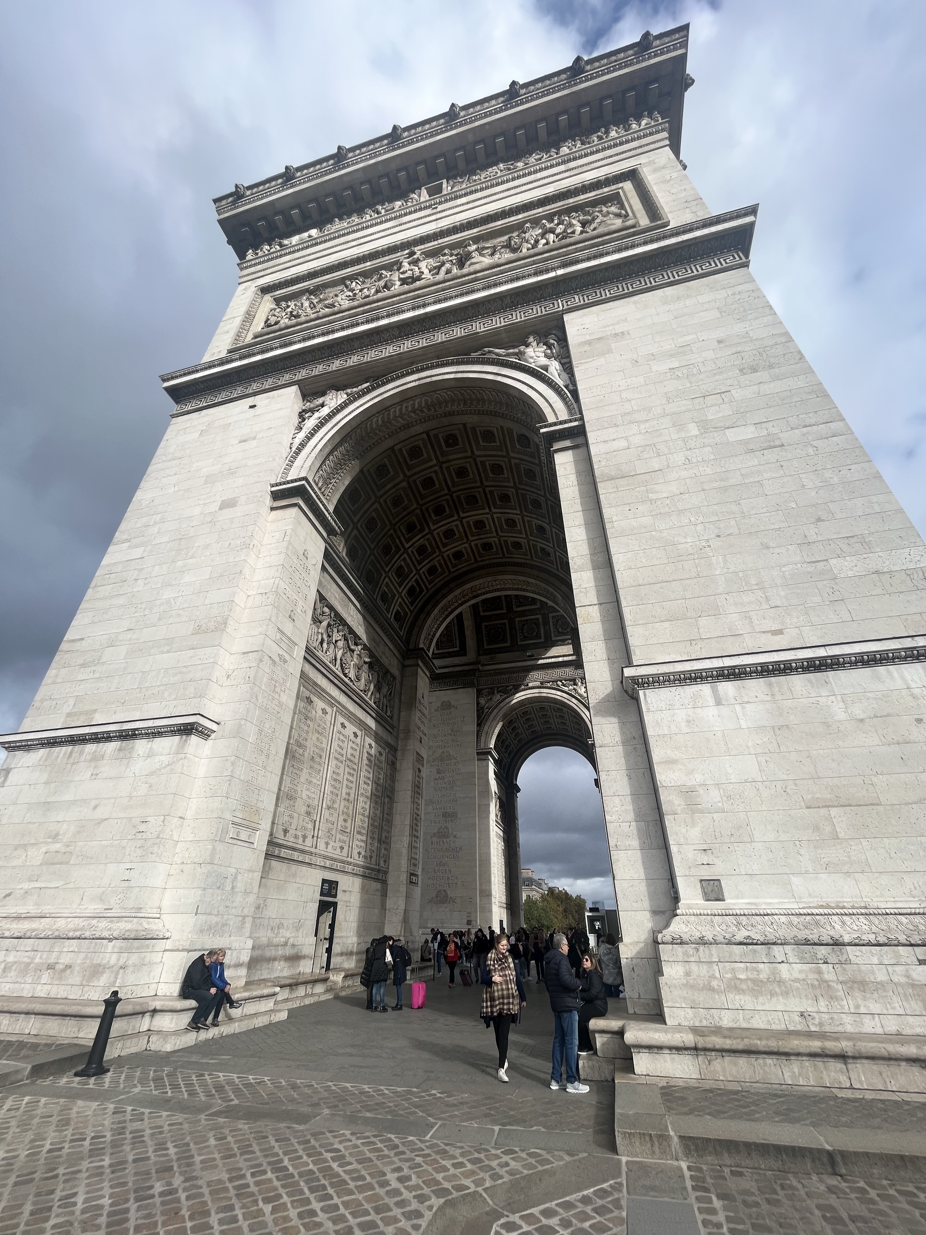The famous view of the Eiffel Tower, where all the news reporters like to stand whenever there is something going on in Paris alluded us last year through nothing more than our own stupidity. This year we emerged from a subway station, followed the crowds for a minute, and were immediately greeted by one of the most famous views on earth. However, we were hungry and so we turned on our heels, dismissed all the expensive looking cafes boasting views of little more than construction works, and settled on a little bakery on the corner of a backstreet that served up a scrumptious baguette and a cup of coffee. With breakfast done, we went back to get some photos of what is essentially a pointless metal tower, before once again turning away and heading down the road to the Arc de Triomphe. In another display of pointless construction there was at least an incredible amount of entertainment provided by the traffic that encircles the Arc de Triomphe. There appears to be no rules, no lanes, no etiquette, and no sense to it all. The only consistency is that traffic at least all goes around the roundabout the same way. You enter this merry-go-round at your own risk, injecting yourself into the tiniest of spaces when one becomes available. I don’t think you have a choice where you get off as momentum will just fling you off down one of the main streets as randomly determined by some strange force of nature. As pedestrians, Phil and I took to the underpass and sat under the Arc de Triomphe watching the chaos unfold all around us until we were told to leave due to a security alert. The whole area was evacuated within minutes through the guidance of a few people in yellow jackets and a solitary copper although disappointingly nothing else followed. I was expecting an armed response team or the bomb squad, but nope, it appears they had just had enough of tourists for the day.