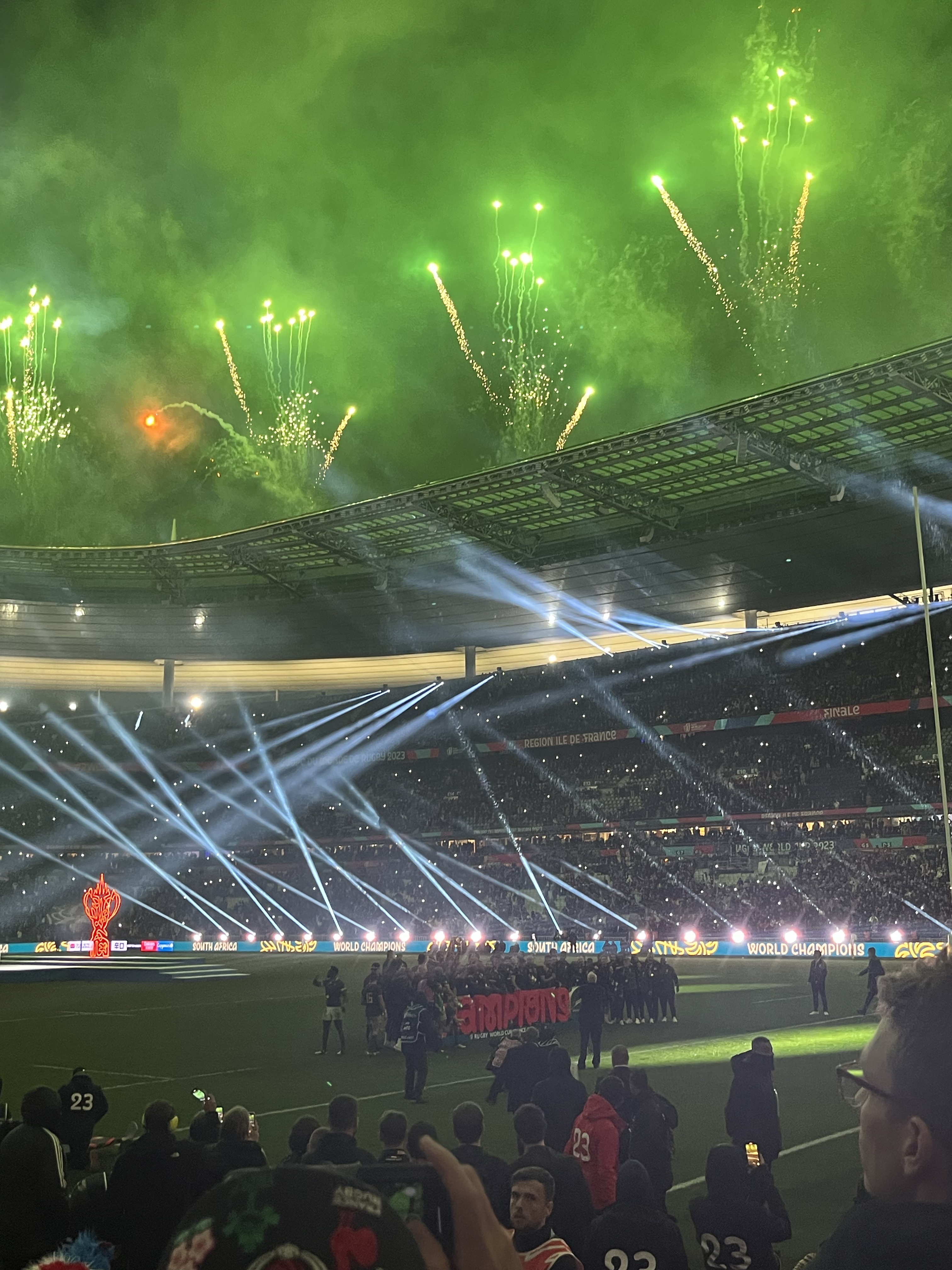 The following day kicked off with lunch. We changed our approach favouring a later start but remaining out for the entire day. After a baguette-heavy first day we found a wonderful little French restaurant. It couldn’t have been more French if it tried, dark wooden furniture, red walls, an aging but polished bar, excellent food, a bottle of water as standard, and sat in the middle of a protest and the largest police presence I’ve ever seen. No idea what it was about but I was too busy contemplating the French seating arrangement outside cafes where chairs are arranged side by side next to tables and not facing each other. It’s an astonishing concept yet one that makes a lot of sense. From lunch we walked down to the Louvre where I learnt that it is much, much bigger than the little glass pyramid I’ve seen in pictures. We obviously didn’t go inside because we weren’t on a school trip or trying to seduce a lover of art, but there was no need to go inside because the whole place and surrounding area is simply colossal. An unexpectantly long walk along the river delivered us to the foot of the Eiffel Tower where we embarked on a boat tour along the river taking in the sights of pretty much everything we had seen already but obviously made much better by the fact we were on a boat. Despite the large number of homeless people found all over France, I dare say Paris could be a tad better than London, which breaks my heart even contemplating the idea, and actually one month on since my visit, yeah scratch that, London still has the edge. I dare say though, Paris is a little grander than London with a few more pointless objects lying around as already touched on. Of course, the grandeur of the two cities is why we love to visit even though all of it was funded through empire; we should therefore expect both to be erased from the map in the near future. In keeping with our day of healthy eating we popped into an Italian restaurant for dinner and a few beers and then made our way back to the Stade de France and the Rugby World Cup final. All was not how it should have been with New Zealand and South Africa taking to the field yet again. As a neutral I couldn’t help but think a large amount of atmosphere was missing since the Irish and French teams had been unceremoniously dismissed. Sat five rows from the pitch, incredibly we stayed sober in order to fully enjoy the moment despite having to watch Mika mime his set and South Africa win the match. We finished a great night with another shawarma thanks to our new Lebanese friend whose little shop was always empty and where the food looked like it had been on display for several weeks too long.
