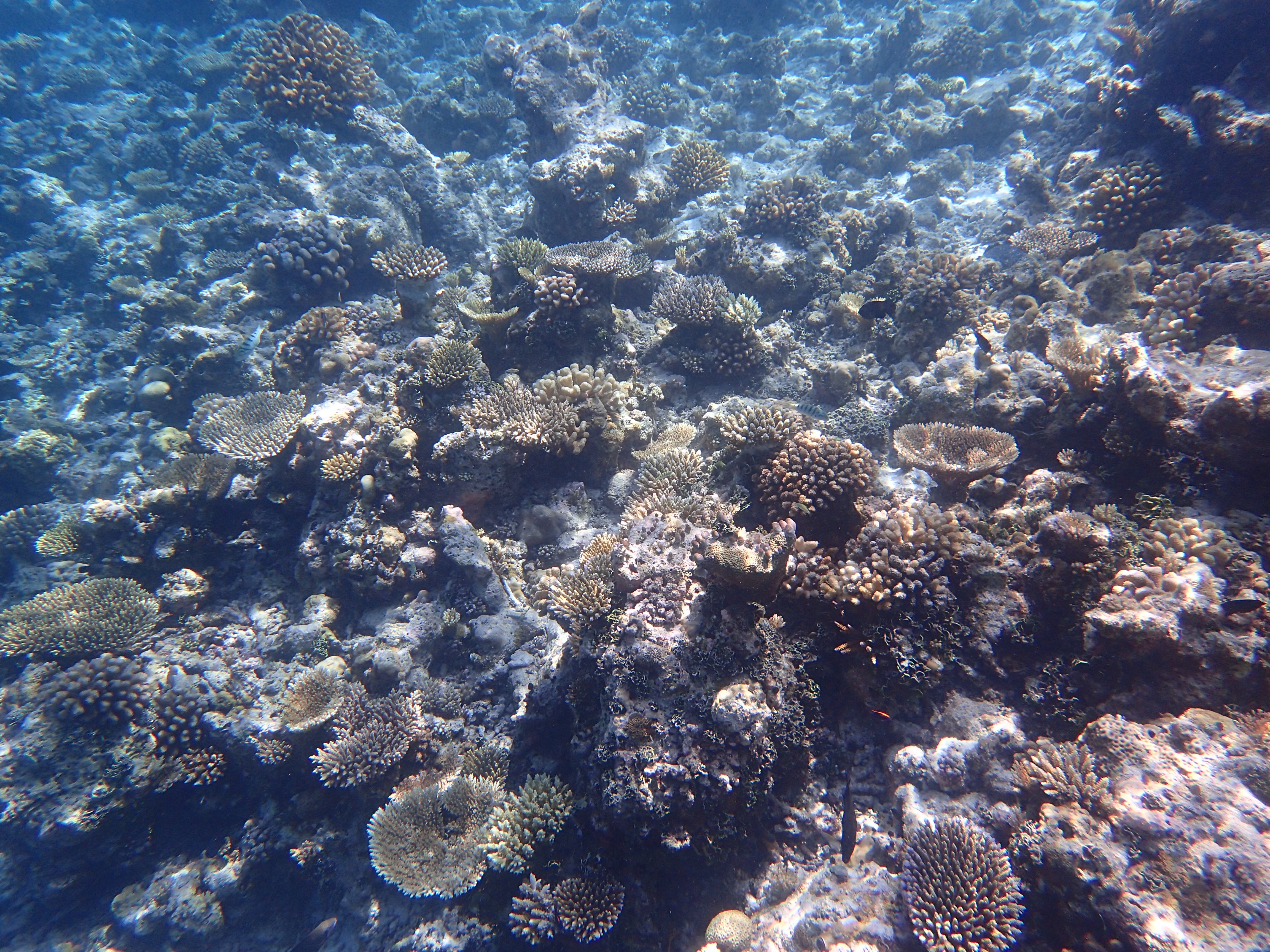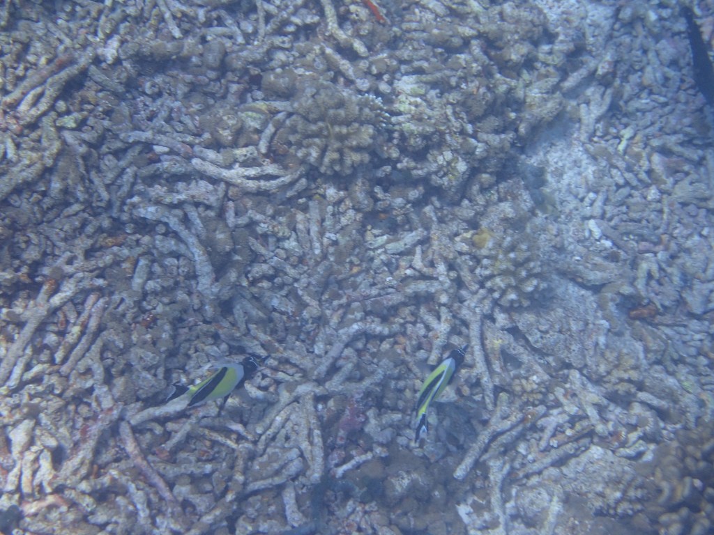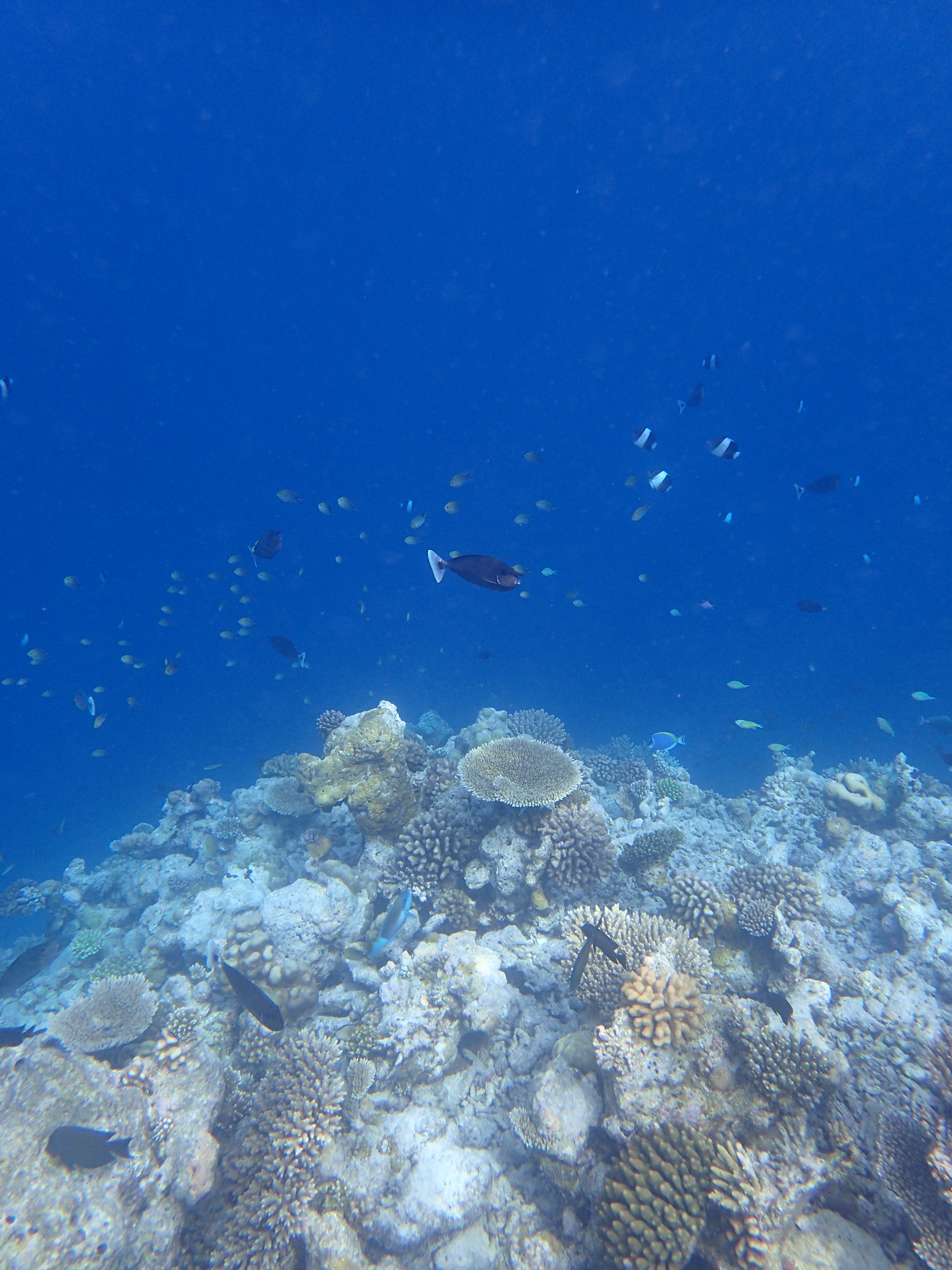 After an incredible night sleep, our first full day was spent getting straight into snorkelling. Out on the boat we could wear what we wanted yet ironically ended up covered with a rash-top to stop third degree burns from the sun while out on the water. Since hearing a story from the tour leader about having to rescue two clients that nearly drowned after declaring they couldn’t swim but found the water too irresistible not to give it a go, it’s now understandable why he took us for a little training snorkel on our first day. Our group declared their differing buoyancy ability and snorkelling experience and Rut being Rut followed suit by worrying that she couldn’t float all of a sudden. As I sat in the shallows confident that I hadn’t forgotten how to swim or snorkel since three days ago, it took little time for Rut to cruise on over and declare that actually she had the confidence of a fish in water. Regardless of ability, the water really is absolutely irresistible, and it was unlikely that anyone in our group was going to declare themselves unseaworthy. But yet again, despite the incredible beauty of the Maldives, there are hidden wounds. Below the surface of the sea is a scarred and dying world, one that has been destroyed before mass development or tourism. It’s a world drained of colour, the majority of coral bleached lying in a wasteland of skeletons like a scene from Finding Nemo crossed with Terminator. There are outposts of life, and colour is provided by numerous fish insistent on remaining. In fact, it was easy to see some turtles and a few small sharks; to a layman like myself it would be easy to assume everything was normal, but I severely doubt that, doubts that were bolstered by our tour leader confirming the reefs were in decline due to warming seas. We saw more of the same the following day on a nearby sandbar. The trip had already been delayed due to torrential rain but we finally made it out favouring more time in the sea snorkelling than on a cloud infested beach. What does make snorkelling in the Maldives unique and quite incredible is that if you veer too far to the edge of the reef it suddenly disappears into the abyss. As far as I know, the Maldives are the tips of an underwater mountain range, a fact that becomes drastically apparent when snorkelling in depths of two metres that becomes hundreds of metres in no time at all.