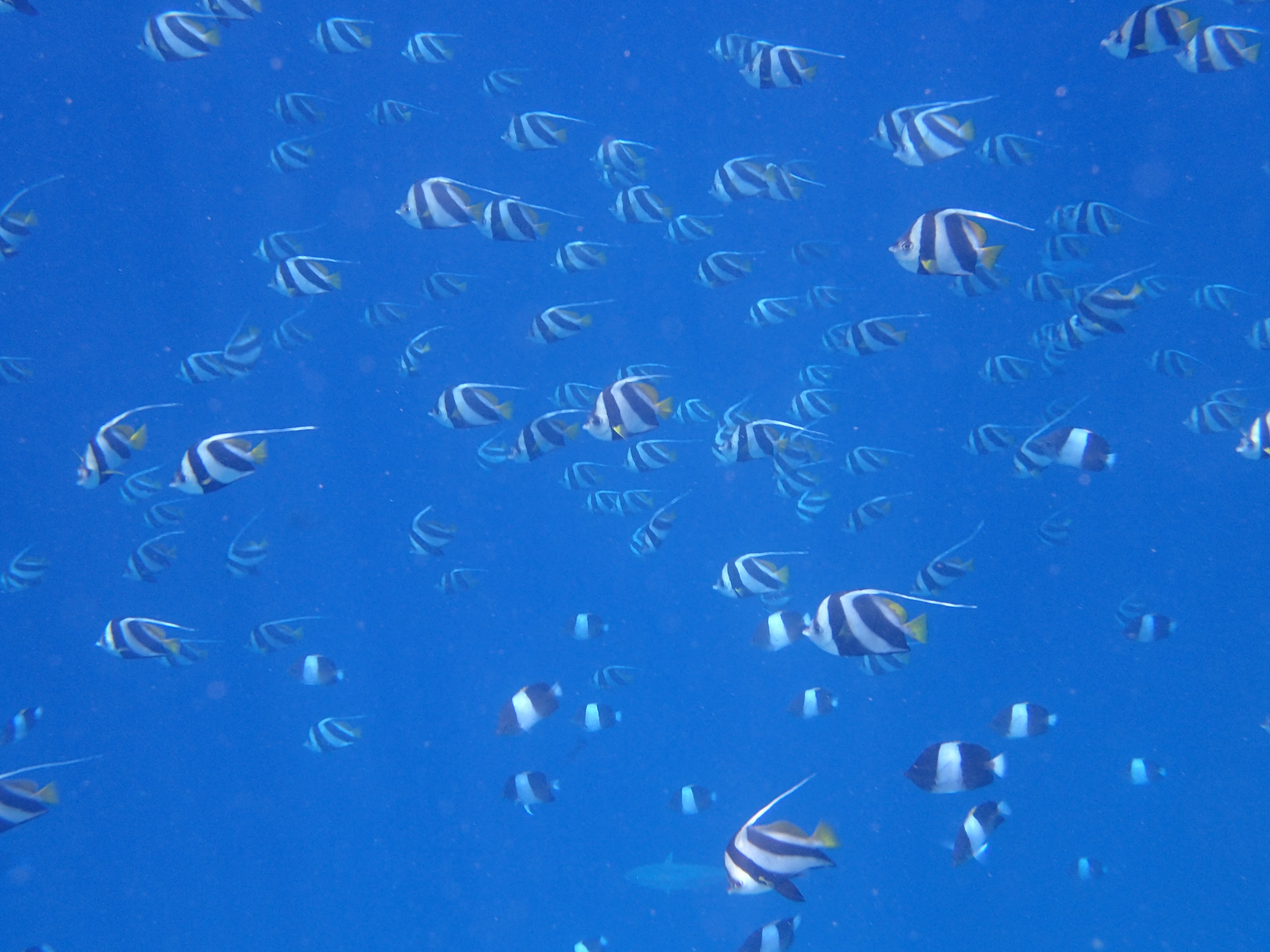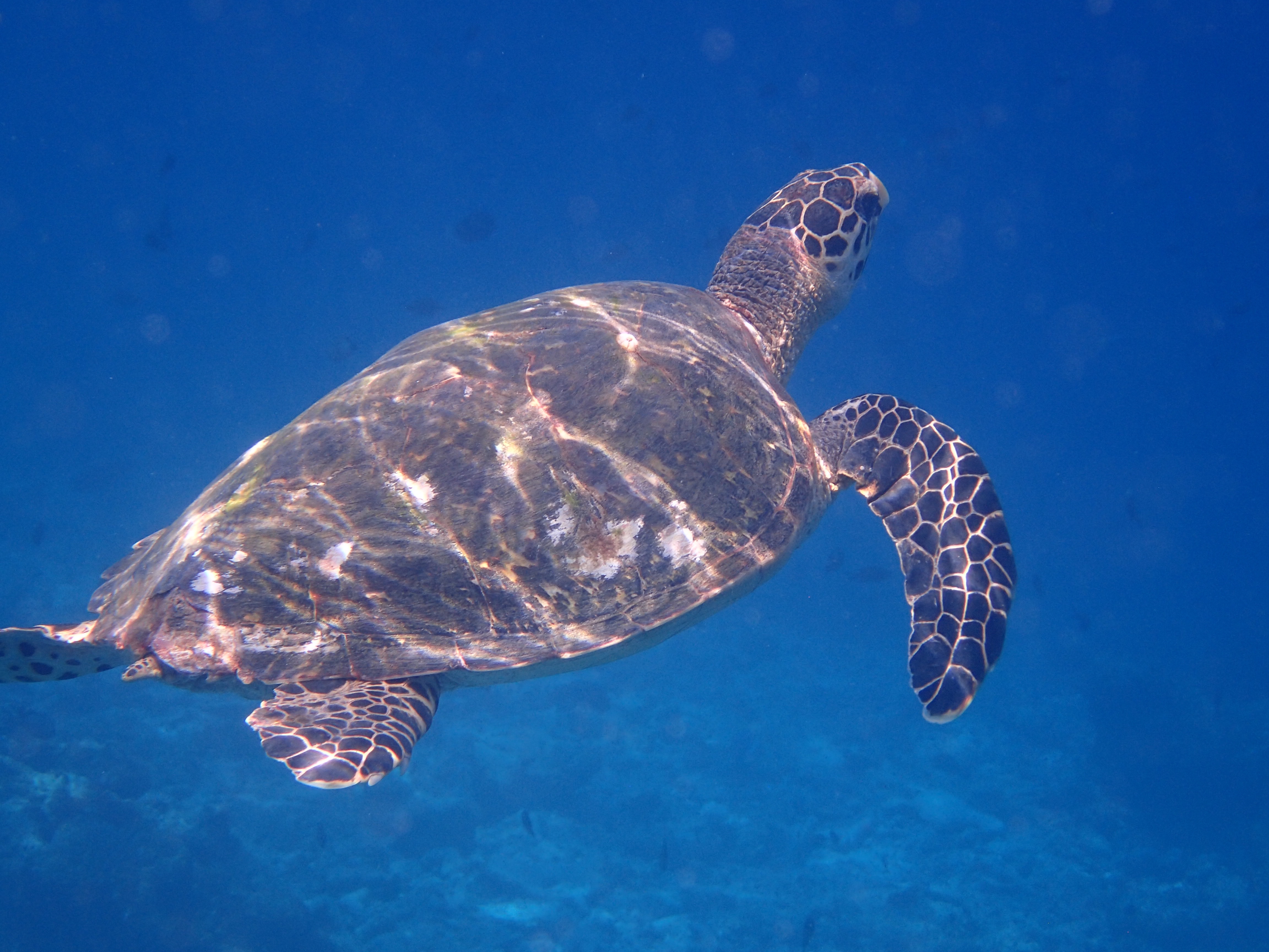 There was the opportunity to go whale shark hunting the following day, but no one appeared keen and opted for manta ray exploration instead. This was a wise decision, almost literally bumping into them not long after leaving the harbour. We parked up the boat and hopped in to take a swim alongside the huge yet elegant rays. Their speed is impressive, effortlessly cruising against the current as though they know the annoying humans behind them will soon run out of puff. From time to time its mouth would open wide to take in anything unfortunate enough to be in its way, including an endless procession of tiny plastic particles easily revealed by wee reflections of light. Mesmerised, but with my goggles rapidly filling with water, I made for the surface to find myself surrounded by five more tourist boats and their accompanying excitable cargo all launching themselves off the boat in a rush to get to the several manta rays in the area. Luckily one ray acted as a decoy allowing me and a few others to enjoy another ray largely unmolested before it eventually lit the afterburners and disappeared into the distance. Happy enough, we turned for the boat and were immediately swamped by a burst of colour as a flock of fish of the tropical variety took over the show which even got me momentarily excited. Nearing the boat, head still submerged with snorkel on, a bloody huge grey shark darted along the sea floor directly below us. As far as pointy, menacing looking sharks go, that was the largest I had seen without being in a cage. I boarded the boat rather chuffed by everything I had seen and experienced. My love-hate relationship with snorkelling has nulled any desire to try scuba diving despite how good everyone (but one other to date) tells me it is. Rut however, despite swimming like a kitten dropped in the middle of an Olympic-sized swimming pool, was determined to do a beginner’s course in controlled sinking. So, from the whale sharks we took off to a reef where Rut, fresh from her morning training, tanked up and hit the water with her dive instructor while the rest of us explored the tips of the reefs snorkelling in wonder at how they just drop off abruptly into oblivion; very much a love moment in my snorkelling career. Returning to the boat, Rut was all smiles and boasting she had gone down to 15 metres. I’m no expert but I didn’t think that was allowed until after quite a few more dives than one, and I refused to believe her until she asked her dive instructor to support her claim who abruptly shot her a look screaming ‘you’re gonna get me fired’. It would seem Rut is more likely to get her PADI license before a far more useful driving license.