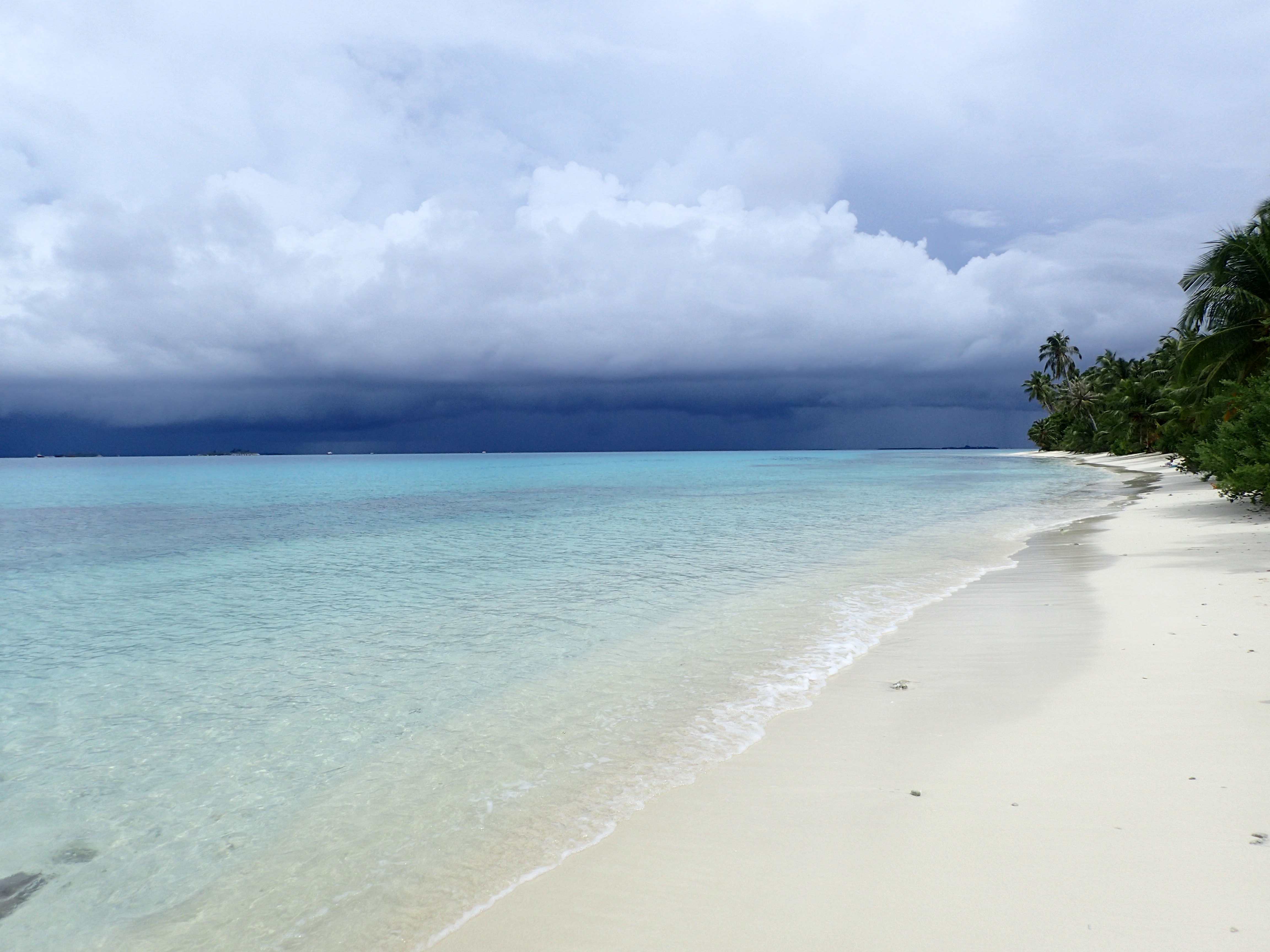 After three nights on Dhangethi we hopped over to Dhigurah island that appeared more orientated towards tourists including a little more lapse on the no bikini role for whatever reason that may have been. The weather remained changeable with black skies omnipresent throughout the week, always threatening rain and regularly acting upon such threats. We took to the sea on kayaks, a well-advertised activity that Rut and I excel at, and after most of the group were ready to pull up on a beach after 30 minutes, we continued on and made a morning of it, paying for the mutiny with an impressive dose of sunburn from the grey overhead skies. An afternoon island walk proved emotional for the flooded sand tracks through mosquito infested tropical forest. It was almost impossible to sit on the many palm fringed beaches because of the sheer number of mosquitos intent on bleeding dry anyone daring to show the slightest bit of skin. Maybe this is why the locals didn’t need to worry about promiscuous tourists? One way or another, dissidents would pay for their sins.