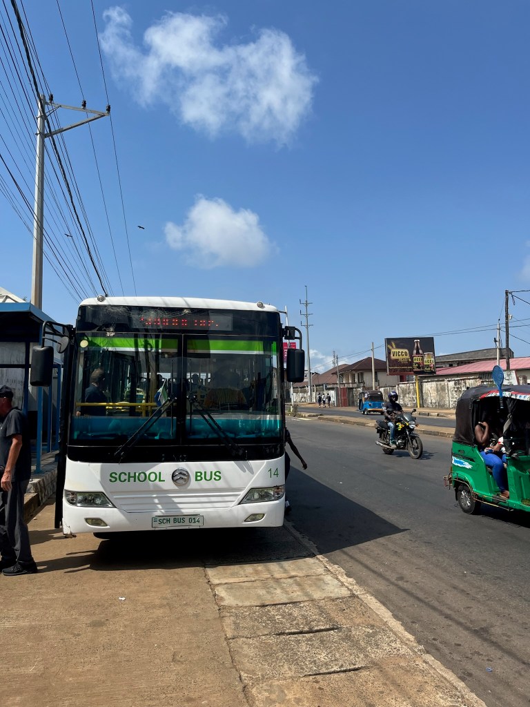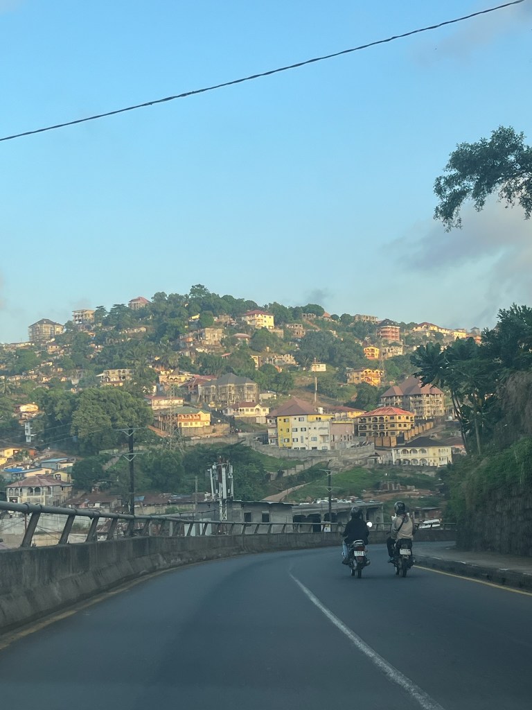 Refreshed after a full night sleep, our second day in the capital started with the whole group jumping into a hired school bus that drove us to the Liberian embassy to apply for visas. Half the group were still coming to terms with the previous five weeks, missing others that had left, suspicious of us newbies, and most likely a little resentful that we had turned up and disrupted the whole group dynamic. It will pass, it always does once the new social order settles, and as people began to come out of their shells there were promising signs of good times ahead. Later in the day most of us piled into taxis and headed to the chimpanzee sanctuary, one of the main attractions in Freetown, and only of interest to me after reading a story about when a group of chimps escaped the sanctuary, beat a taxi driver to death, and ran off into the surrounding forest never to be seen again. As soon as I got in the car I knew trouble lay ahead. The hotel security guard was struggling to wave down enough taxis and so rang his mate who promptly arrived in a very nice car indeed. We were told the price would be 150 leones, about five pounds. Now, leones are a little difficult to work at the moment because the central bank reset the currency, shaving off several zeros. This now means that there are 50 leone notes in circulation, and 50,000 leone notes in circulation, both the same value. Not that it mattered at this point in time because when we arrived at the chimp sanctuary, the driver wanted $150, which was impressive, even compared to the mardy taxi driver a few days before. We paid 200 leones and left. The chimps were alright. They were angry and in the habit of lobbing rocks at anyone who dared look at them, but who can blame them? Chimps don’t belong in cages, but then without the sanctuary it’s likely chimps will disappear far faster. The bigger story was getting home. Somehow about 10 people greedily crammed into the back of Landcruiser that obligingly agreed to take people back to the hotel, leaving three of us wondering what the hell to do. Apparently, a taxi was waiting at the bottom of the hill to take some people back but that was more an assumption than a fact. A 15-minute walk delivered us to the main road and as Sierra Leone so often does, gifted us with a wonderful person who would enable the story to finish on a high. The old gentleman sat in his rusting yellow taxi had arrived back at 5pm exactly as asked, by people who then found alternative transport. His only concern was that his original passengers weren’t the people asking for the ride now, and it took a few minutes to convince him that the others had safely returned to the hotel and it was in fact us desperate for a ride, and what a ride it turned out to be. You know what’s coming, it’s 5pm after all. Yeap, that setting African sun, coming and going through the softening haze as we weaved through the hills back into the city, windows down, cooling wind in our faces, the smell of wood smoke and traffic fumes, the hustle and bustle on every street, God it’s good. Arriving to the hotel the driver asked for 150 leones, we paid up 200 leones that made him happy enough to pass on his details. By the time we leave the city we should have got this taxi pricing thing pinned down.