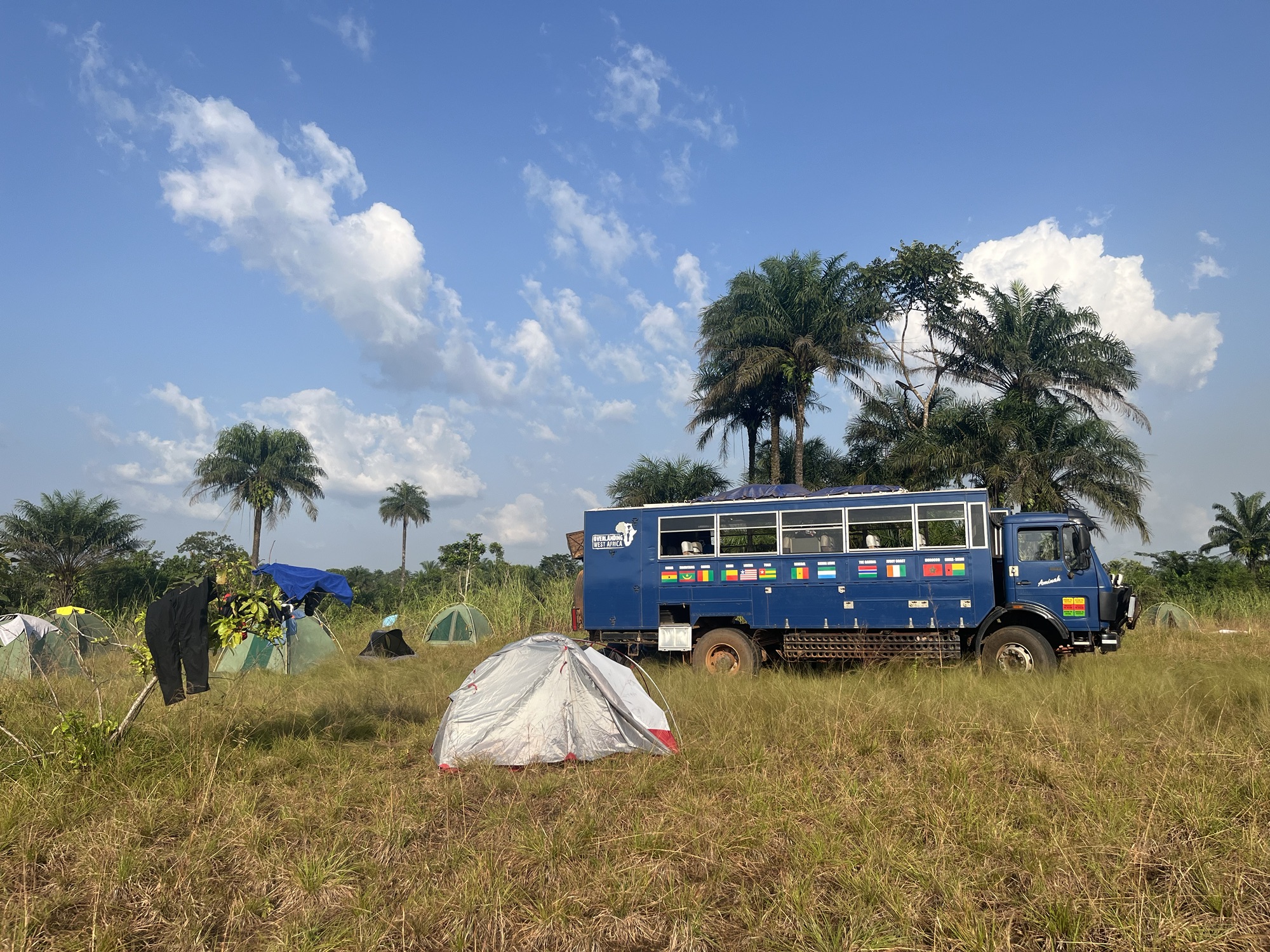 Liberia is a tricky customer. Crossing from Sierra Leone, the atmosphere almost instantly changes, a little as if I was having a jolly nice dinner with my Argentine relatives and then blurting out that Jude Bellingham is in fact already a far better footballer than Lionel Messi could ever hope to be (a reference to islands, even in a fictional sense is not worth it). The people of Sierra Leone are famously cheerful, warm, and welcoming. I don’t need people waving at us as we drive past on our big blue truck but it’s nonetheless nice to feel welcome. Liberia was the opposite, heading into Monrovia – the capital – the atmosphere felt menacing and aggressive, compounded by the fact that everywhere looked like a complete dump, literally. However, before arriving to the capital, the border crossing had been relatively effortless and our first night in the country saw us driving off the main road, down a dirt track, and parking up at one of the most beautiful and convenient bush camps anyone could hope to stay at. I have a love-hate relationship with bush camps. I want to love them and in general I tend to come out the other side relatively unscathed, yet I am always uncomfortable in the knowledge that I am likely to need the bathroom. It’s a mental thing, one I’m working on and I’m sure will be discussed in more detail at a later date. What made this particular bush camp so great was that we had arrived in plenty of time, around 4pm, and it felt like we were the only ones in the region, completely hidden in an apparently never-ending network of bush land and trees. I felt like crap, possibly because the heat had been on full, and I hadn’t peed all day. Having little to do I popped a paracetamol, dug into the electrolytes, and smashed four litres of water while helping the cook group prepare dinner amongst the fireflies. Typically, I finally peed in the middle of the night, not that it was a bad night to be awake under the stars. Awake again at 6am, it was a pure joy to watch the sunrise through a placid, lingering mist holding back the heat and chaos that was about to hit us.