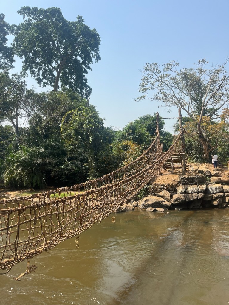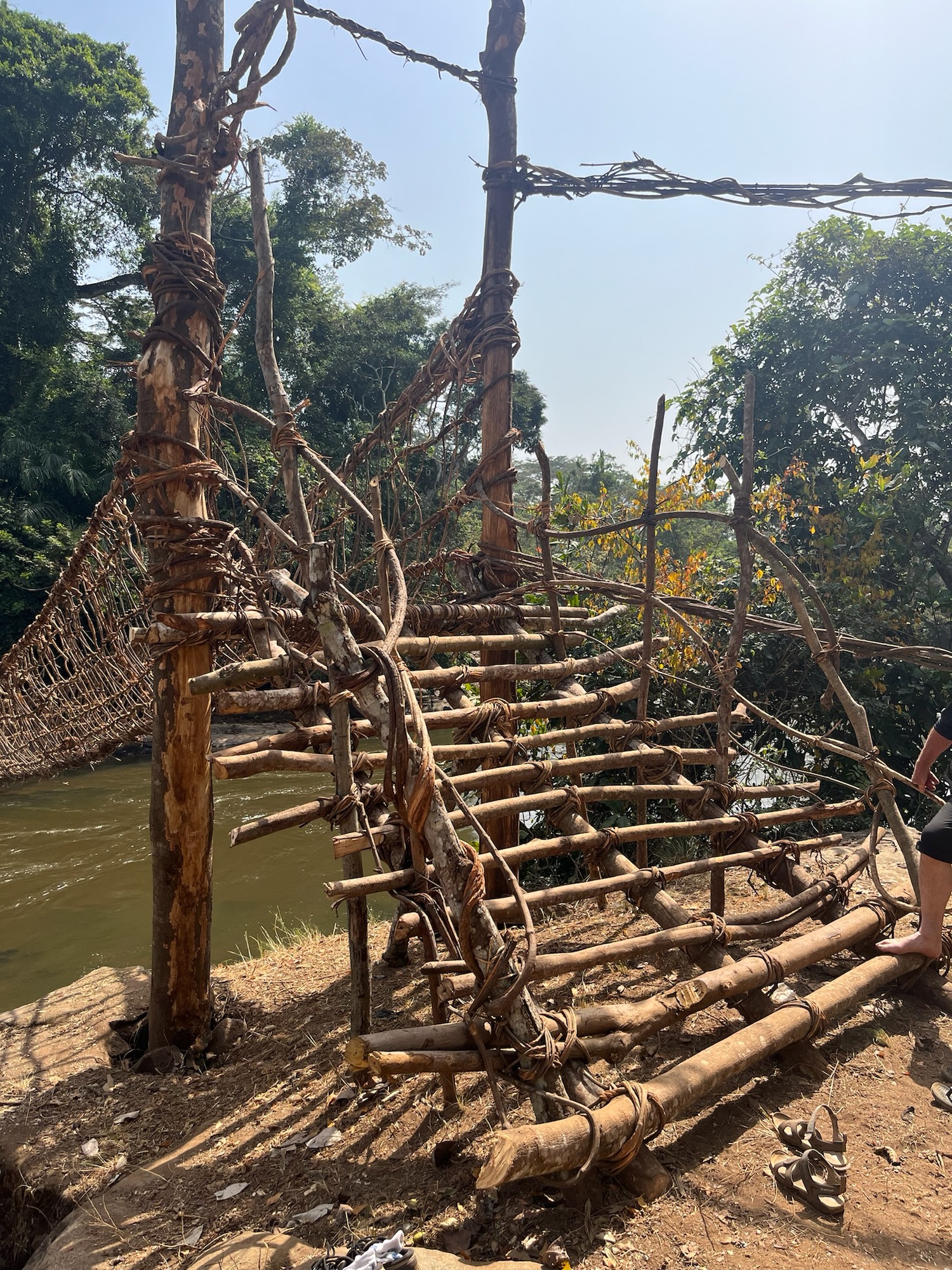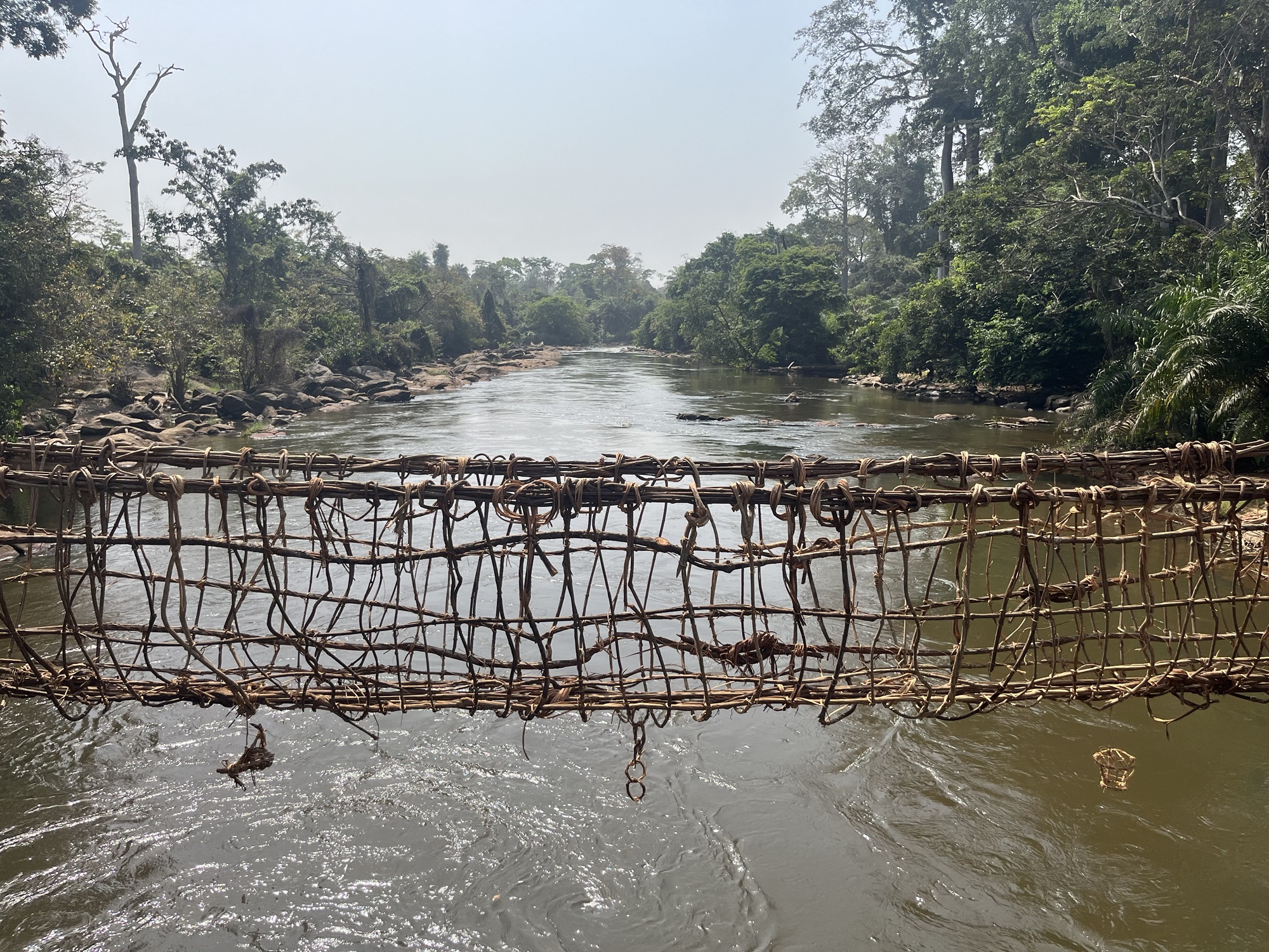 The region of Guinea we had to skip through was famous for its traditional vine bridges but thankfully there was an opportunity to see one in Cote d’Ivoire. After a few failed attempts and a little too much time guiding low-lying power cables over the truck with brooms, we finally arrived at the correct village. We received quite the reception, warmly greeted by the adults, and playfully harassed by the persistently happy children. Down at the river we found what we had come to see. I believe vine bridges can be either dead or alive. This one was three years old and dead, made from vines recovered from the forest and bound together to form a sturdy footbridge. Vine bridges are usually replaced annually but the even sturdier concrete bridge alongside this one would suggest that it’s used for little else other than the amusement of a few passing tourists. And it was amusing. Hardly the remote jungle river crossings I was hoping for but then I feel those days simply don’t exist any longer and so I should be content with what I did see.
