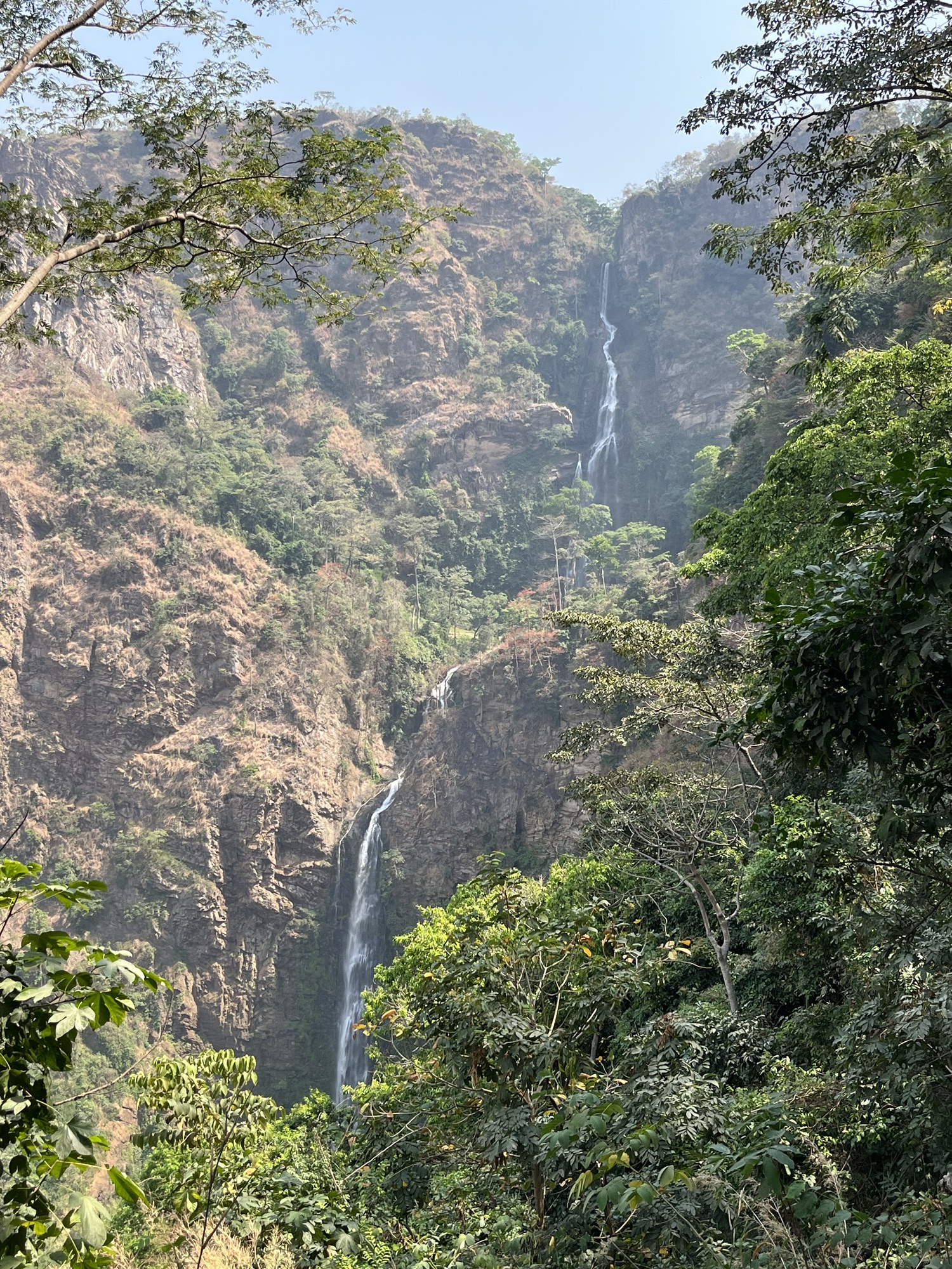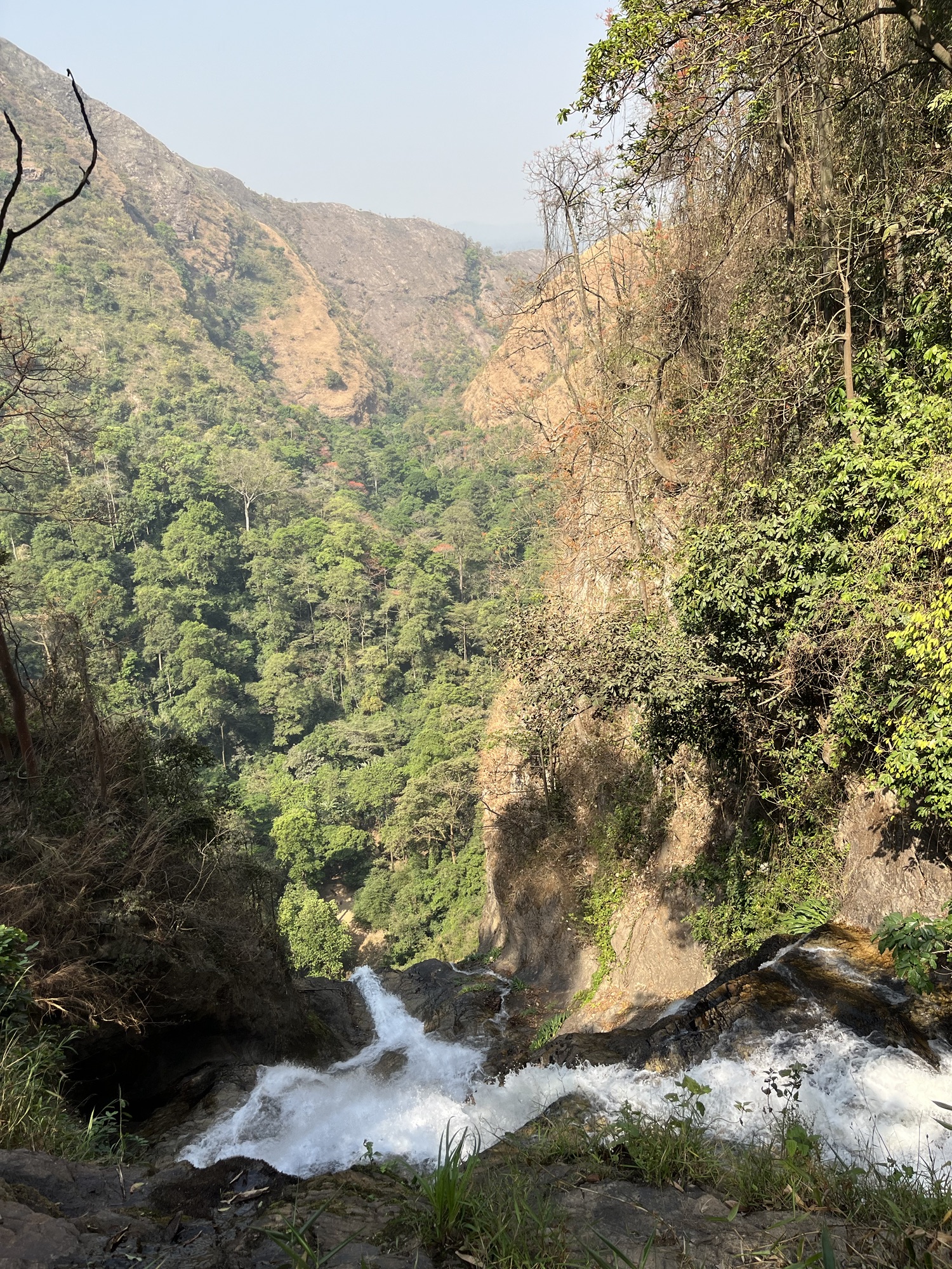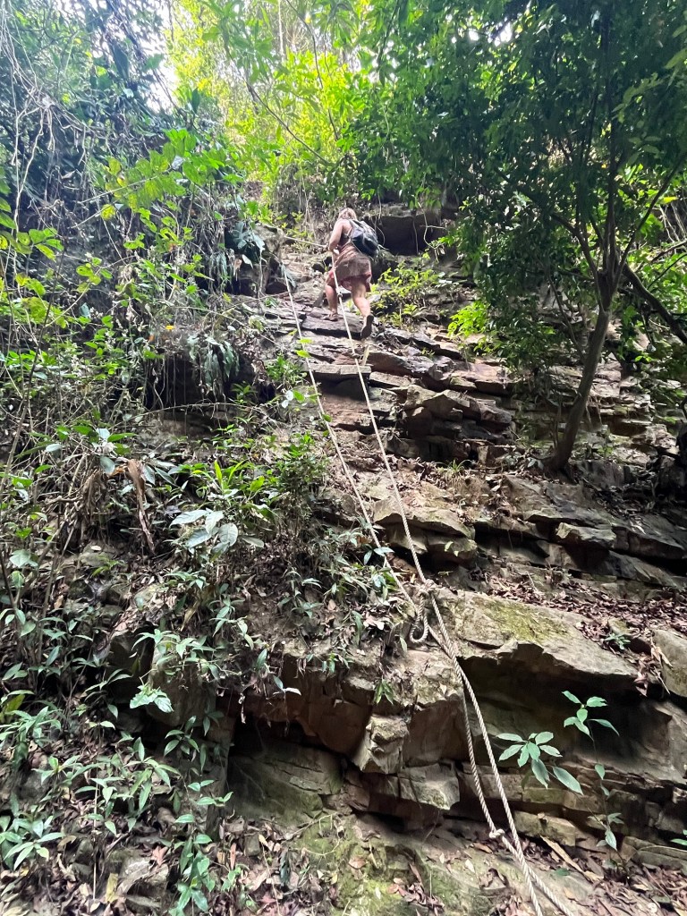 We headed up into the coolness of the mountains where a few of us hoped to get on a good 10-kilometre hike but as has been all too familiar on this tour we were unable to find any reliable guides. It’s quite frustrating as we thought it would be easier to plan such activities in an English-speaking country, there is so much potential for hiking of all lengths and abilities in the area, yet the locals just think you are mad that anyone would choose to walk for fun. We had to settle with the four-kilometre self-guided hike down to one of the waterfalls near to the camp, although that took a bit of Google Maps and sheer good fortune to get us there. It turned out to be quite the adventure as we descended amongst the trees and guessed the way at some junctions before reaching the small river that led us to the top of the waterfall. A series of fixed ropes then guided us along some steep terrain with impressive views before making a sudden turn downwards. It wasn’t quite abseiling, and I loved it, but it was probably a bit too steep and muddy for anyone not up to strength. At the bottom we were greeted with the waterfall’s plunge pool and a chilly place to cool off and swim, although the small island of floating plastic bottles took away some of the majesty of the place. Still, we were the only ones there, it was peaceful, and above all a stunning patch of nature.