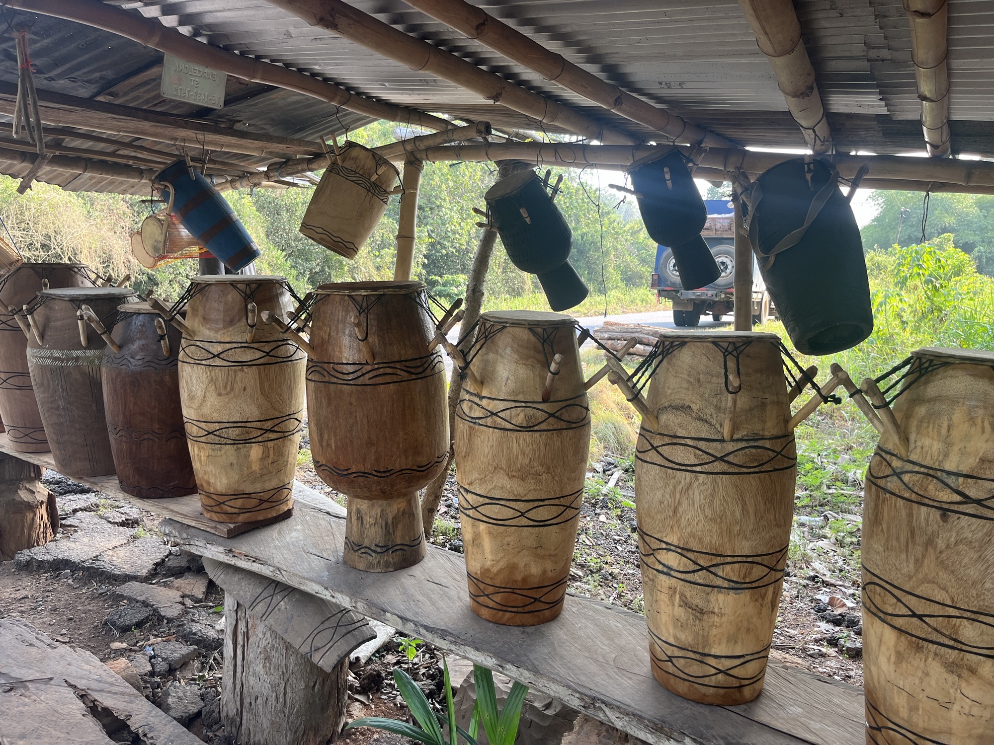 Our journey took us northwards past fixed machine gun posts that sent a warning we were in the high security area surrounding the Akosombo Dam which creates one of the top three largest man-made lakes in the world. A little further on, we camped at one of our more unique stops, Roots Yard, a twee ecolodge that encouraged the guests to unleash their Rasta, something that is never going to happen with me as I have an abundance of energy and spend too much time thinking to be able to walk at the pace required of Rastafarianism while enjoying Reggae music. You’re right, I have no idea what I’m talking about. However, I do have one interesting fact. Rastafarianism, although born in Jamaica, has its roots well and truly in Ethiopia. While staying at the ecolodge we went on a walk around the outskirts of the local village with a guide who showed us numerous local plants and the many medicinal and practical uses they had. I couldn’t care less, but the walk was very much appreciated, and it continued into the sweet spot of the day when the sun began to cool off in place of an explosion of subtle colour. We then headed off to see some of the local drum makers who had their stalls alongside the main road. As interesting as all this craft stuff can be, I hate feeling the pressure to buy something and I opted out of the drumming demonstration to sit inside the truck and instead watch a man up a nearby power pole attaching a light with nothing more than a single precarious looking belt and a pair of spiked boots holding him in place. On returning to the ecolodge I was surprised to find myself going to bed at 10pm after an unexpected number of beers, cocktails, and shots on the back of a very good vegan dinner. Involuntary veganism aside, my emotional stone wall had begun to crack.