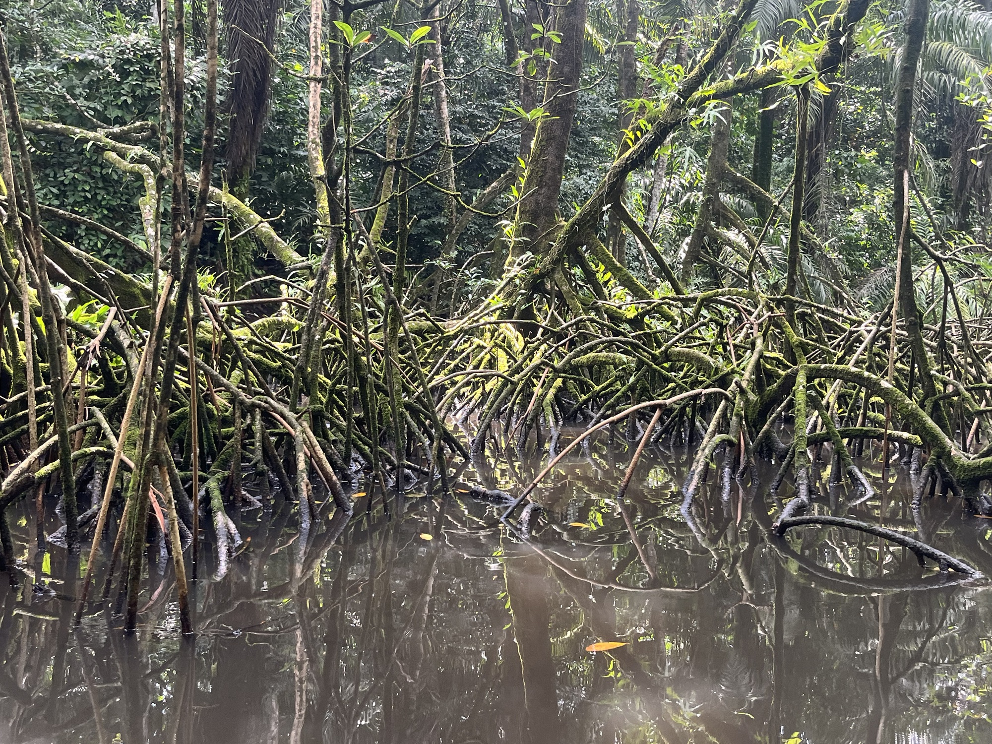 The following day, we drove into the interior of the main island, stopping for a short boat ride through a mangrove forest, most of which was spent discussing books with one of my compadres. As we climbed up into the hills the skies darkened and finally we felt a bit cooler, just in time to stop at another ex-colonial operation. Coffee. What remains of the processing facilities is now a local co-operative largely I suspect targeted at tourists. We had a nice little guided tour that featured some of the old processing machines and a wonderful little museum, but that was about the lot, other than a small cup of complimentary coffee at the end. It’s worth noting that almost everything Sao Tome and Principe imports comes from Portugal ($80 million) yet almost nothing is exported the other way ($2.3 million). The Netherlands imports almost three times more goods from Sao Tome and Principe than Portugal.