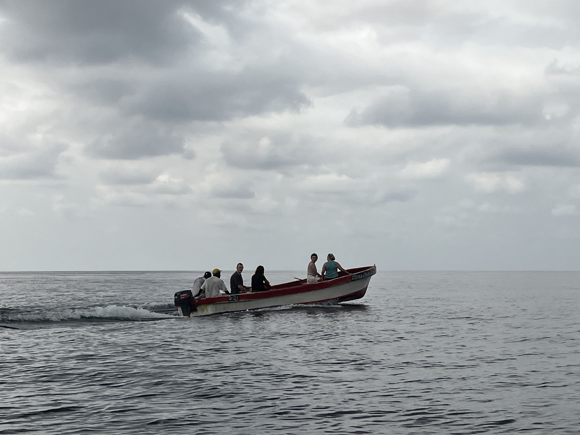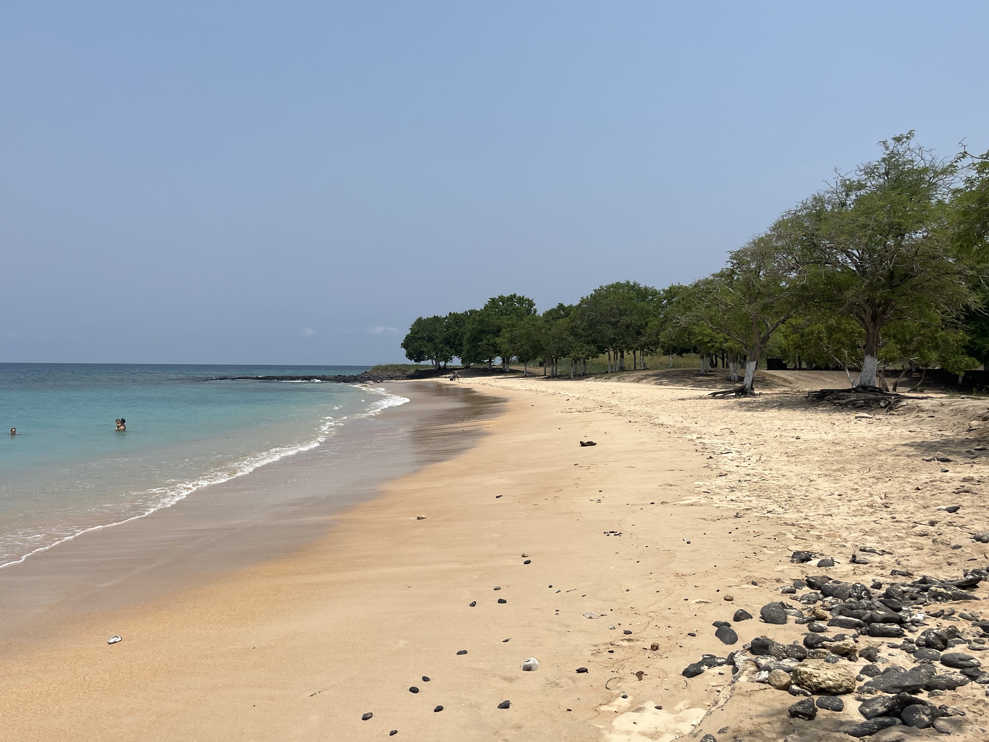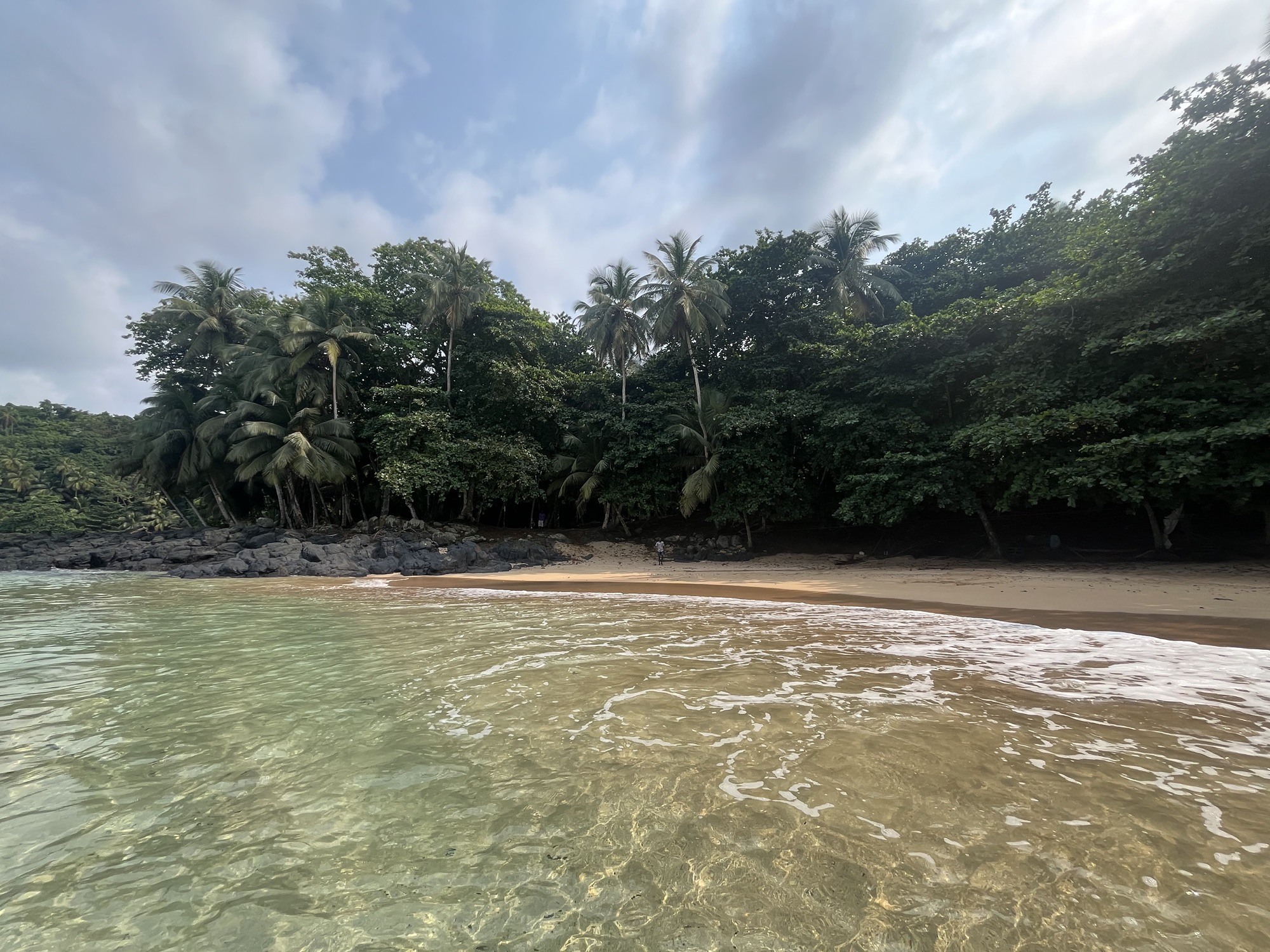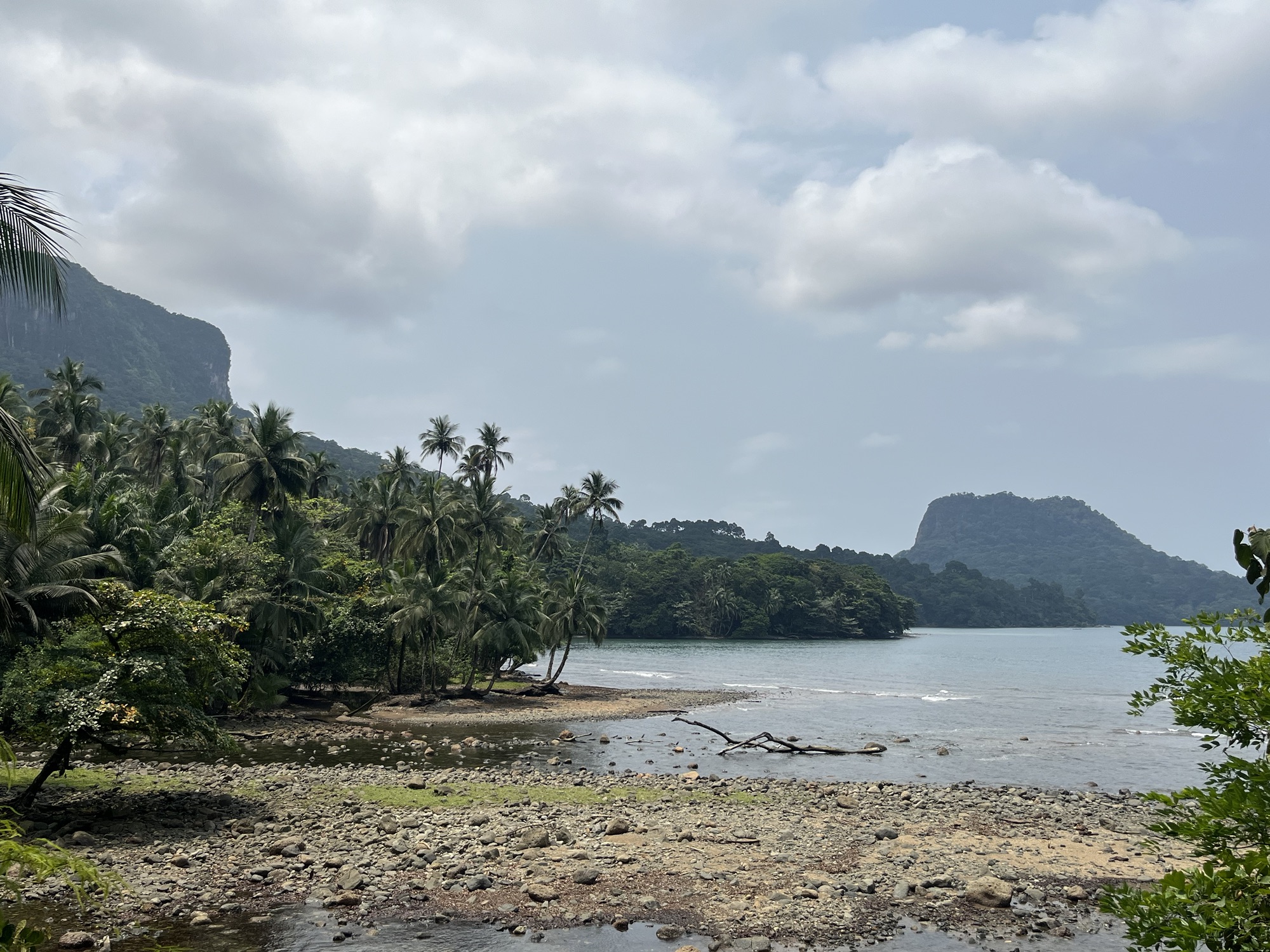 Our time in Principe had been epic from the moment of our arrival, and the island appeared determined that we think as much until the very second we left. The final day had come too fast, a day that started with insane views of Bahia das Agulhas showcasing hills of dense jungle flowing down to the sea, and erratic outcrops of rock jutting towards the thick clouds that lay overhead. We then made our way through the vista we had just observed, plunging into the depths of the forest until meeting a coastal track that we spent the next few hours following, once again stumbling upon some of the remotest and most beautiful beaches in the world. A detour up a slippery, rocky riverbed delivered us to a small waterfall with a wonderfully cool pool to swim in. You guessed it, despite the overcast conditions it was still cooking. A little further on, at the end of our seven-kilometre hike we met a couple of boats on a beach that collected us for a 45-minute ride that provided an altogether different perspective of the bay. It’s too cliché to say it was like a scene fresh out of Jurassic Park, as though escaping a T-rex loose in a prehistoric jungle, but…. That’s exactly how it felt. I don’t know if the cloud added to the atmosphere or devalued it a little relative to clear and sunny conditions. I somehow doubt any weather condition is able to detract from the sheer rugged beauty of the place and the feeling of beautiful remoteness. Naturally, we were deposited at another incredible beach where we stopped for the obligatory packed lunch, plenty of swimming time, a snooze, and a coconut. We were joined by two other people on the beach; literally a crowd in these parts. Our final act in Principe was to view a life-changing sunset but as with almost all planned sun related experiences, it didn’t play ball. Sao Tome and Principe have both been very guarded with their African sunsets but then you’re surrounded by so much natural beauty that a rip-roaring sunset isn’t really needed.