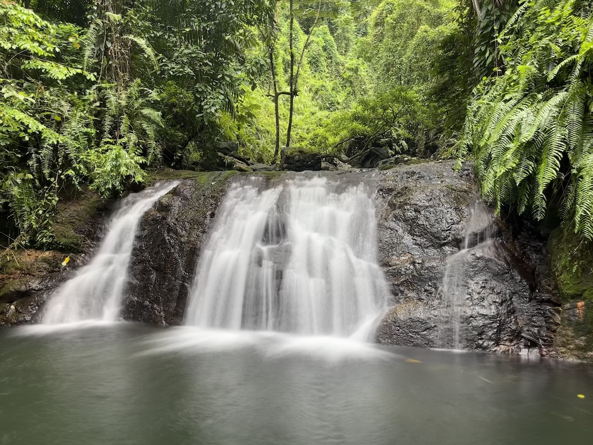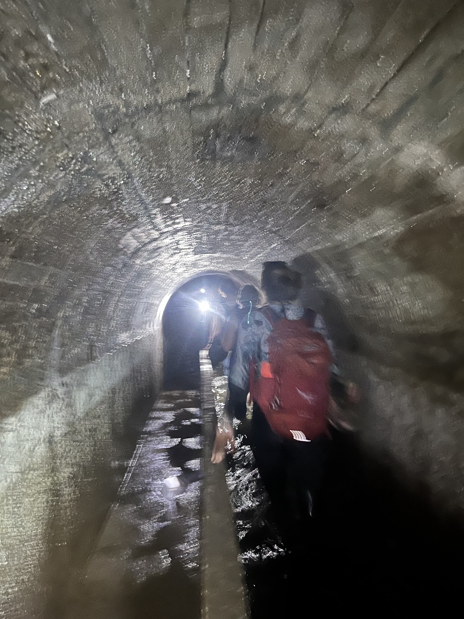 This tour has been extremely sociable whilst also maintaining a level of respectability throughout, that is, there have been no excessive drinking sessions. Most nights have wrapped up by 10pm. The all-important final dinner night saw a few bottles of wine consumed and a bedtime closer to 2am, but that was for only three of us and featured some very intensive conversation indeed. Probably for the best, as by 8.30am the next day we were back on something that resembled a road driving up a mountain track. For various reasons, half of the group skipped the final morning’s activity with attention already turned for home and a general tiredness of hiking in the heat setting in. The trip has been a busy one, but I’m glad I haven’t skipped anything, especially the final morning. Once again, we found ourselves hiking though the steamy rainforest on an eight-kilometre hike, only to add a little extra spice, we would be following an old system of aqueducts put in place by the Portuguese to irrigate farms down in the flatter parts of the island. They were still in operation, feeding a reservoir that fed the local town with water and hydroelectric. The aqueducts ran over purpose-made bridges and though tunnels hacked out of the mountain side. We went through five such tunnels, the longest almost one kilometre and too low for me to stand straight. The first few tunnels we walked through the aqueduct itself, I in bare feet due to not wanting to get my only set of shoes wet for the evening’s flight home and the current too strong for my flipflops. For the last few tunnels, the water was too deep, and so we walked alongside the aqueduct, at times wading through a thick sludge. What added to all of this was the healthy population of bats that hang out in the tunnels, and so what with my sea urchin wounded foot now squelching through guano infested sludge, I imagined me being forever known as Patient Zero for some new and exciting tropical disease. That’s assuming the rickety bridges we had to cross didn’t collapse and get me first. And in case you’re worried, don’t be, because there was the standard waterfall that should be expected on all hikes. To be fair, it was quite impressive; high, very wet, powerful, set in a cove-type space almost enclosed by the mountain.